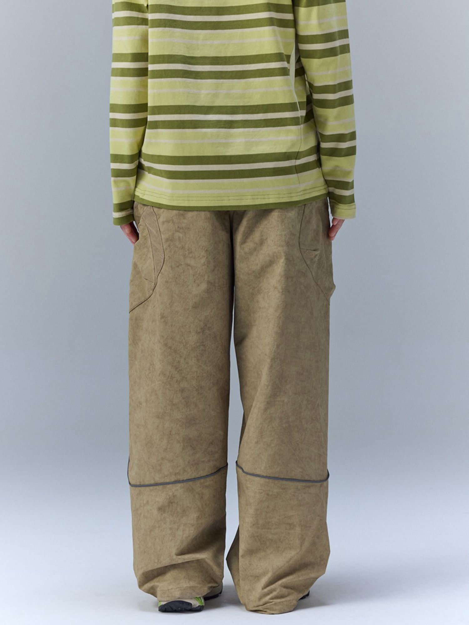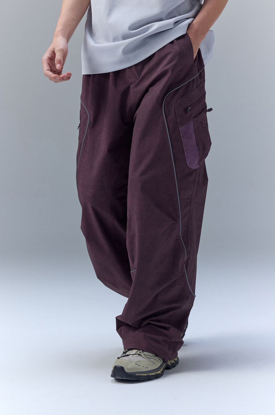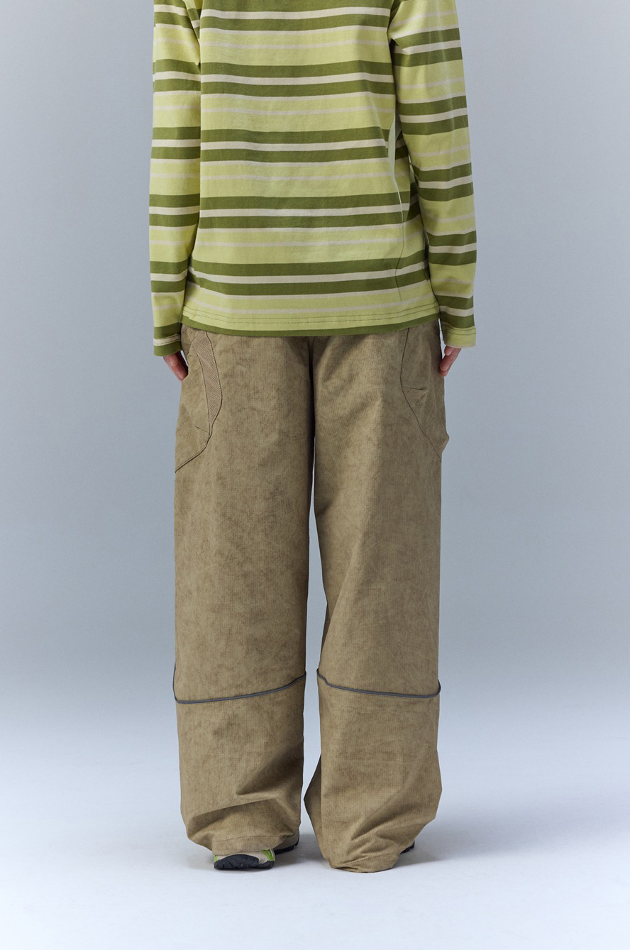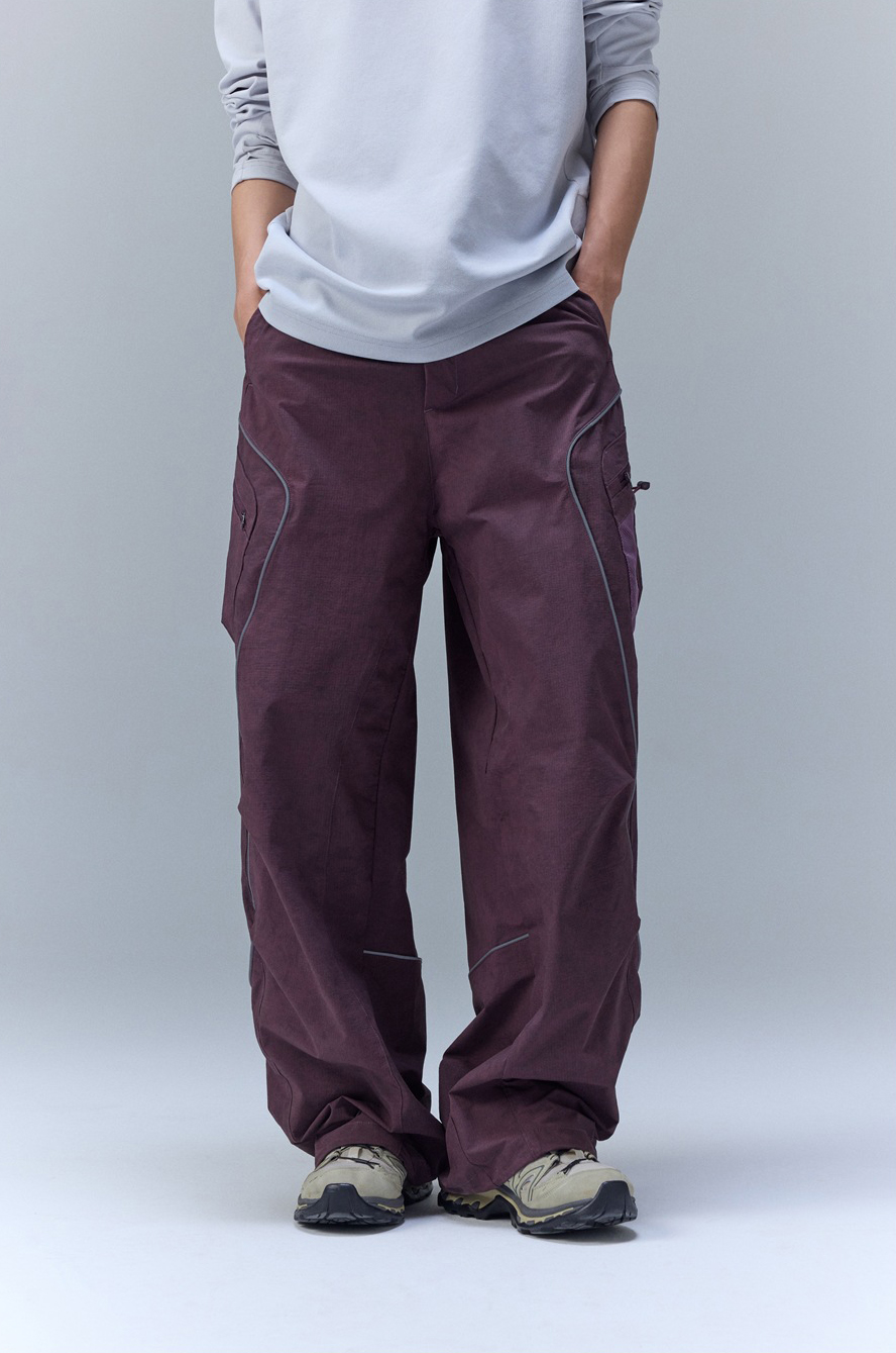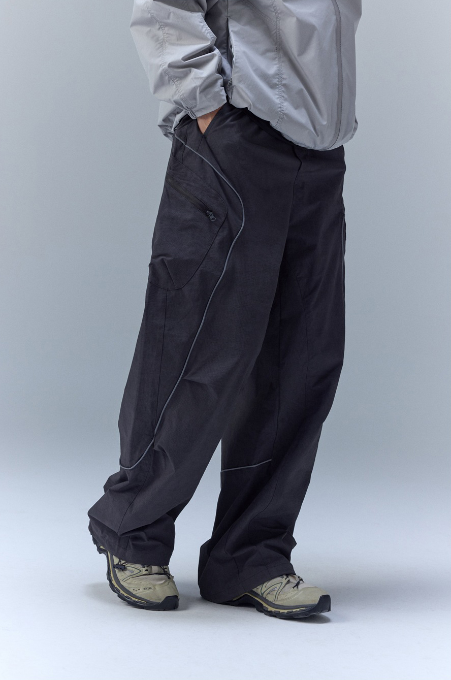 와이드 핏 실루엣과 유니크한 절개 디테일로 개성 있는 무드를 완성하는 카고 팬츠입니다.