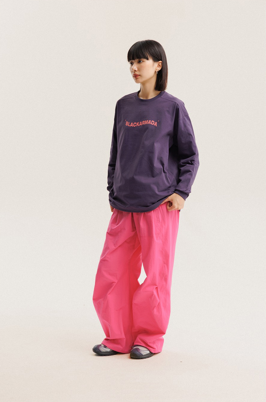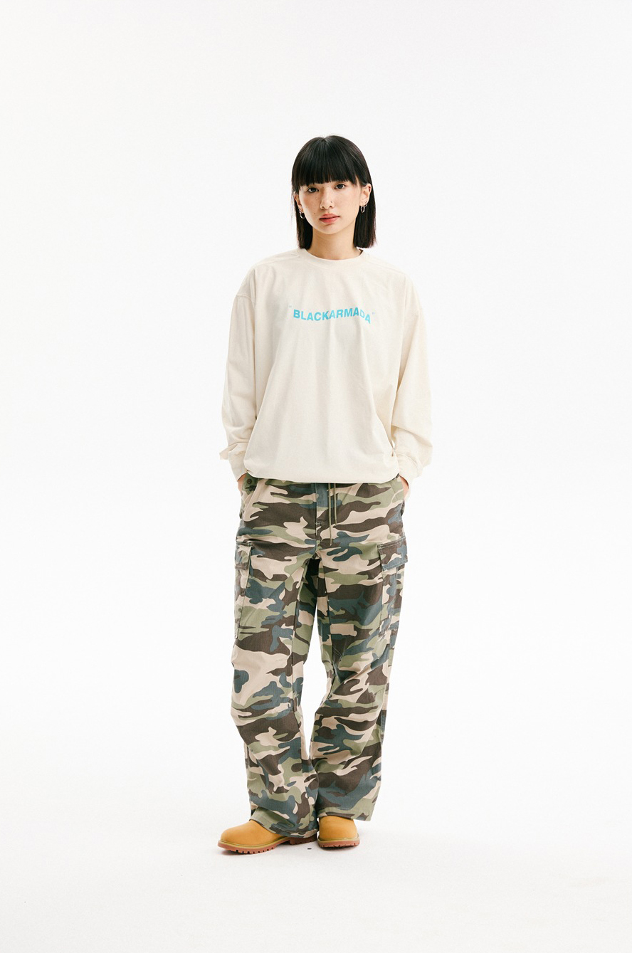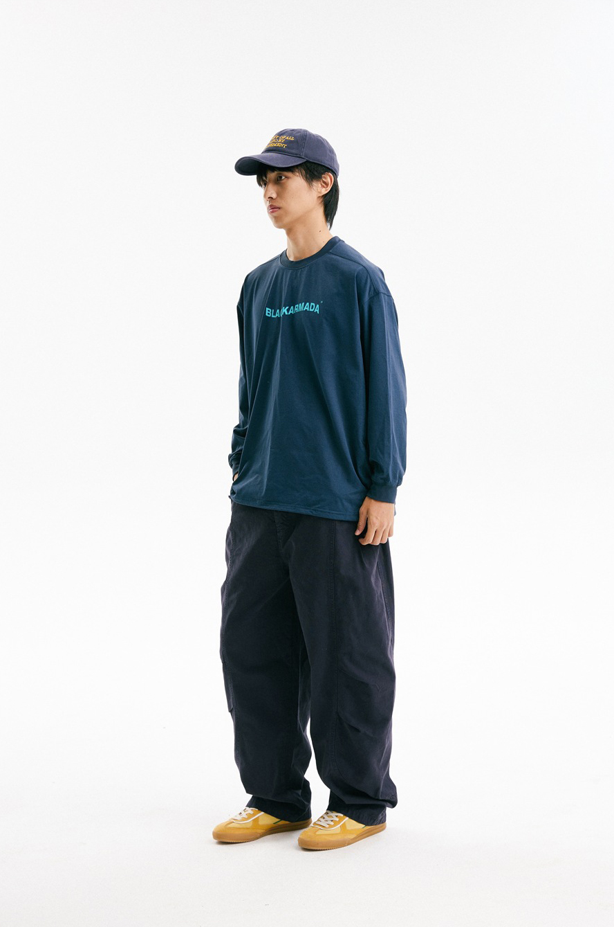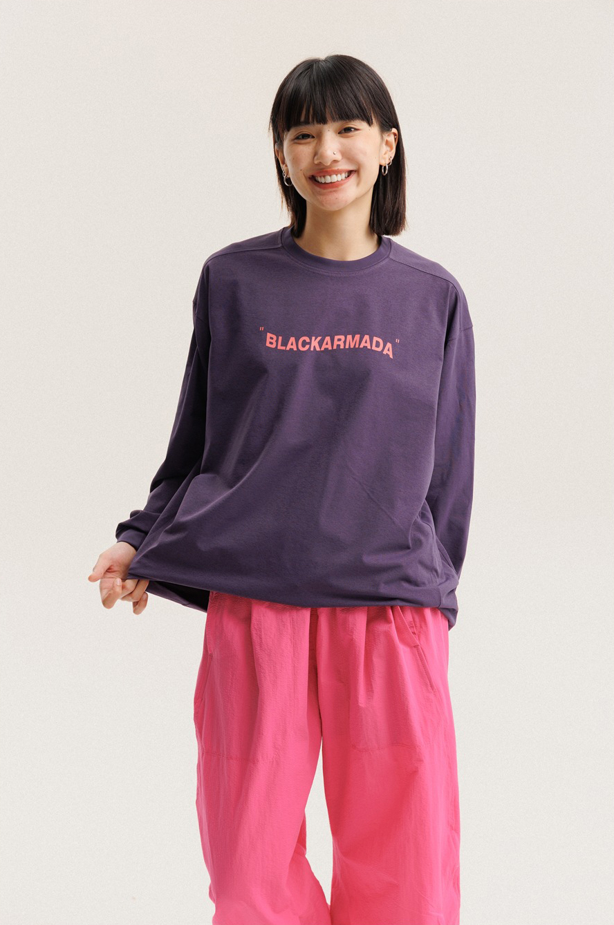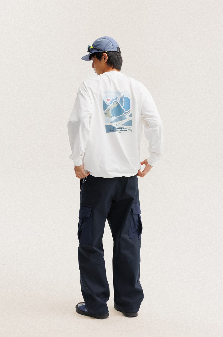 프론트 레터링과 백 프린트가 감각적인 포인트가 되는 드로스트링 롱슬리브 티셔츠입니다.