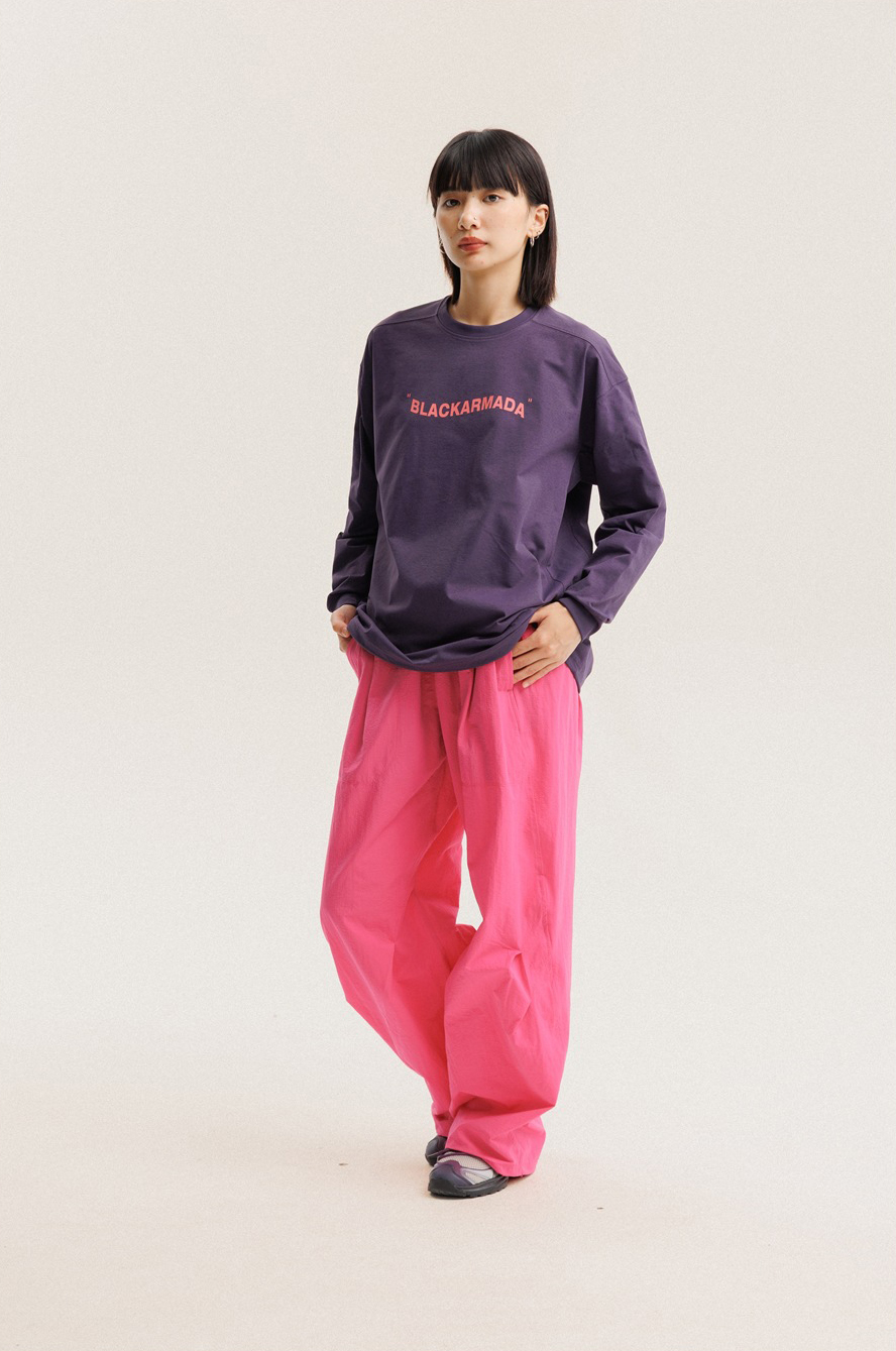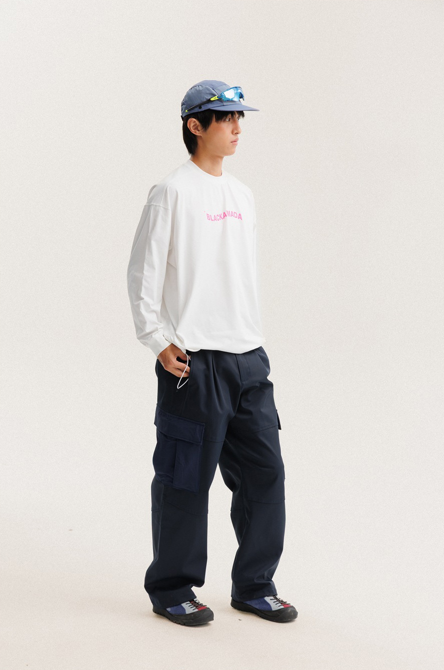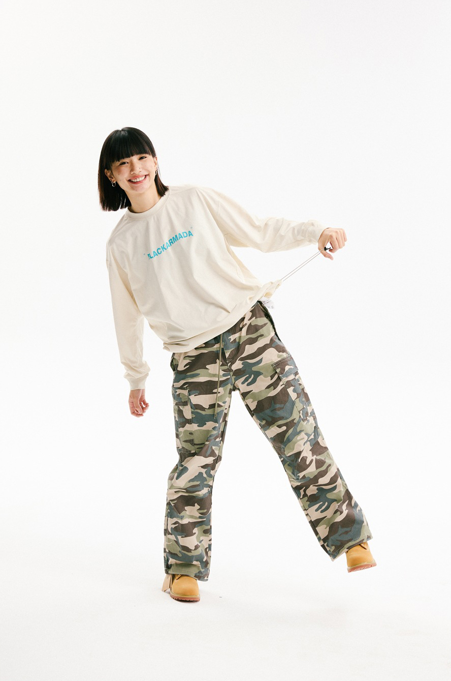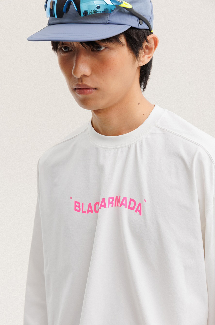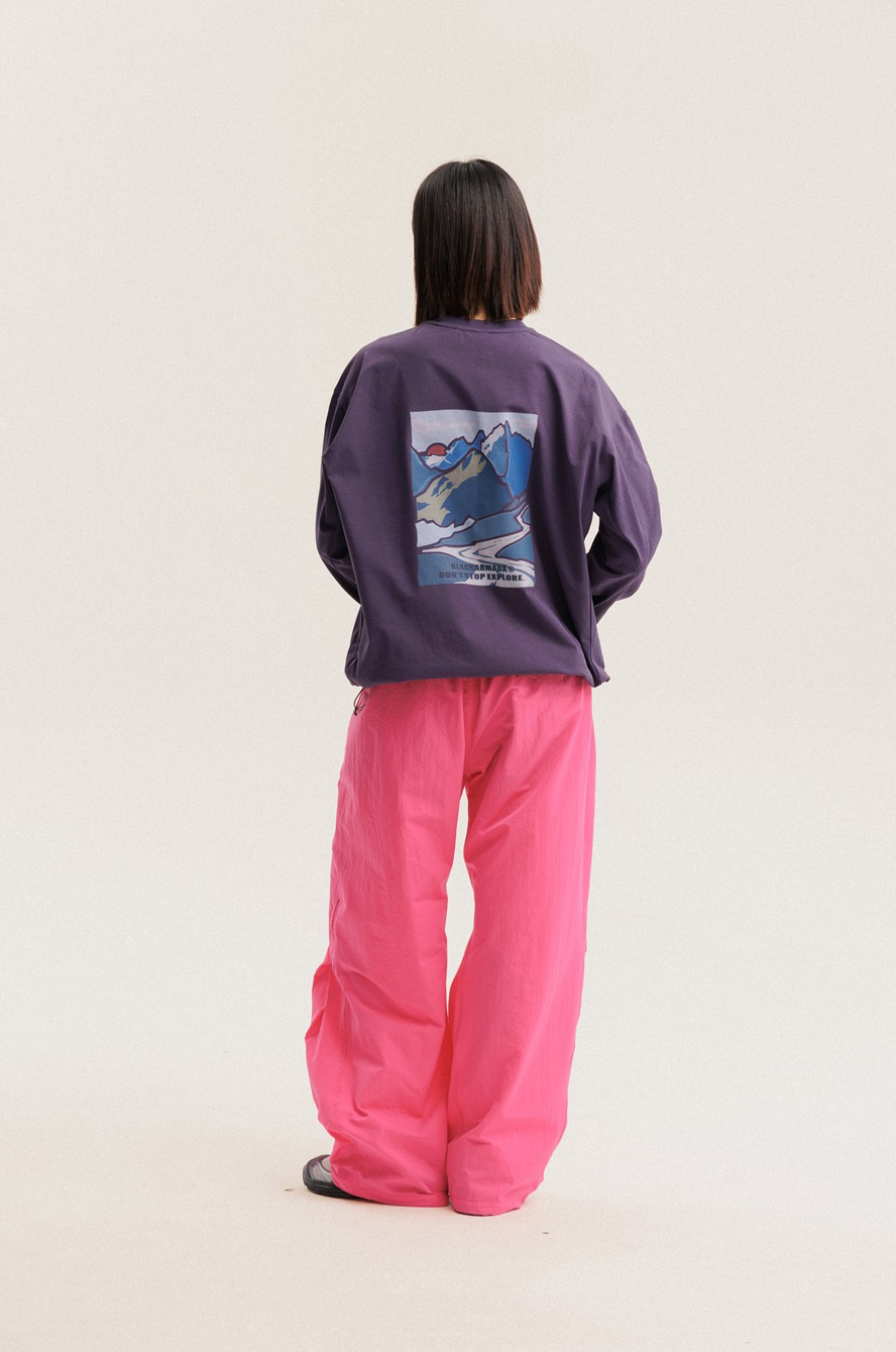 프론트 레터링과 백 프린트가 감각적인 포인트가 되는 드로스트링 롱슬리브 티셔츠입니다.