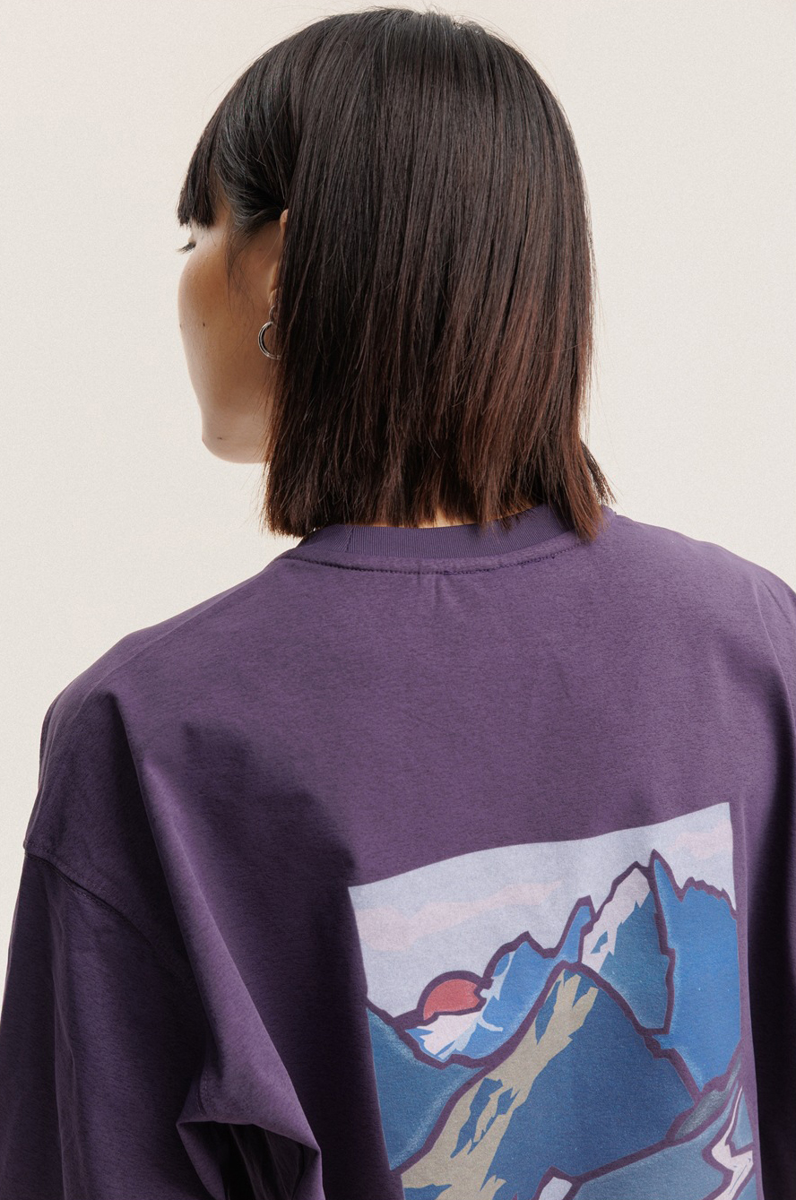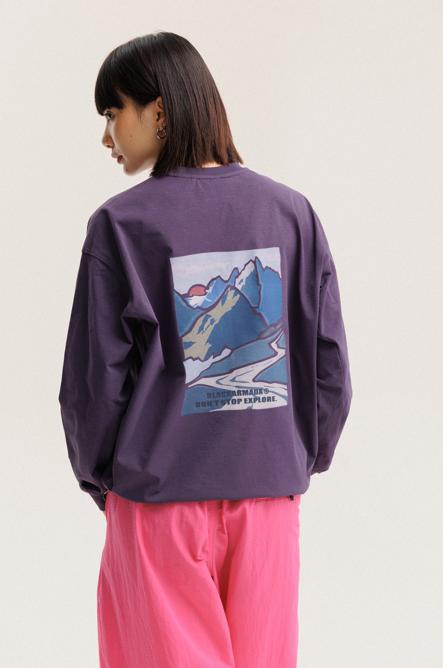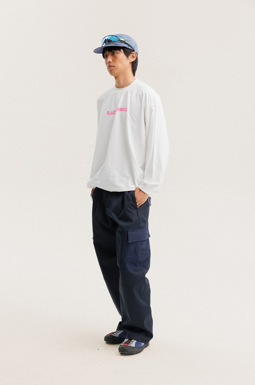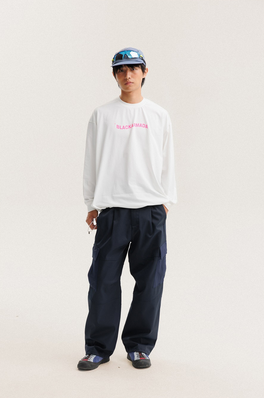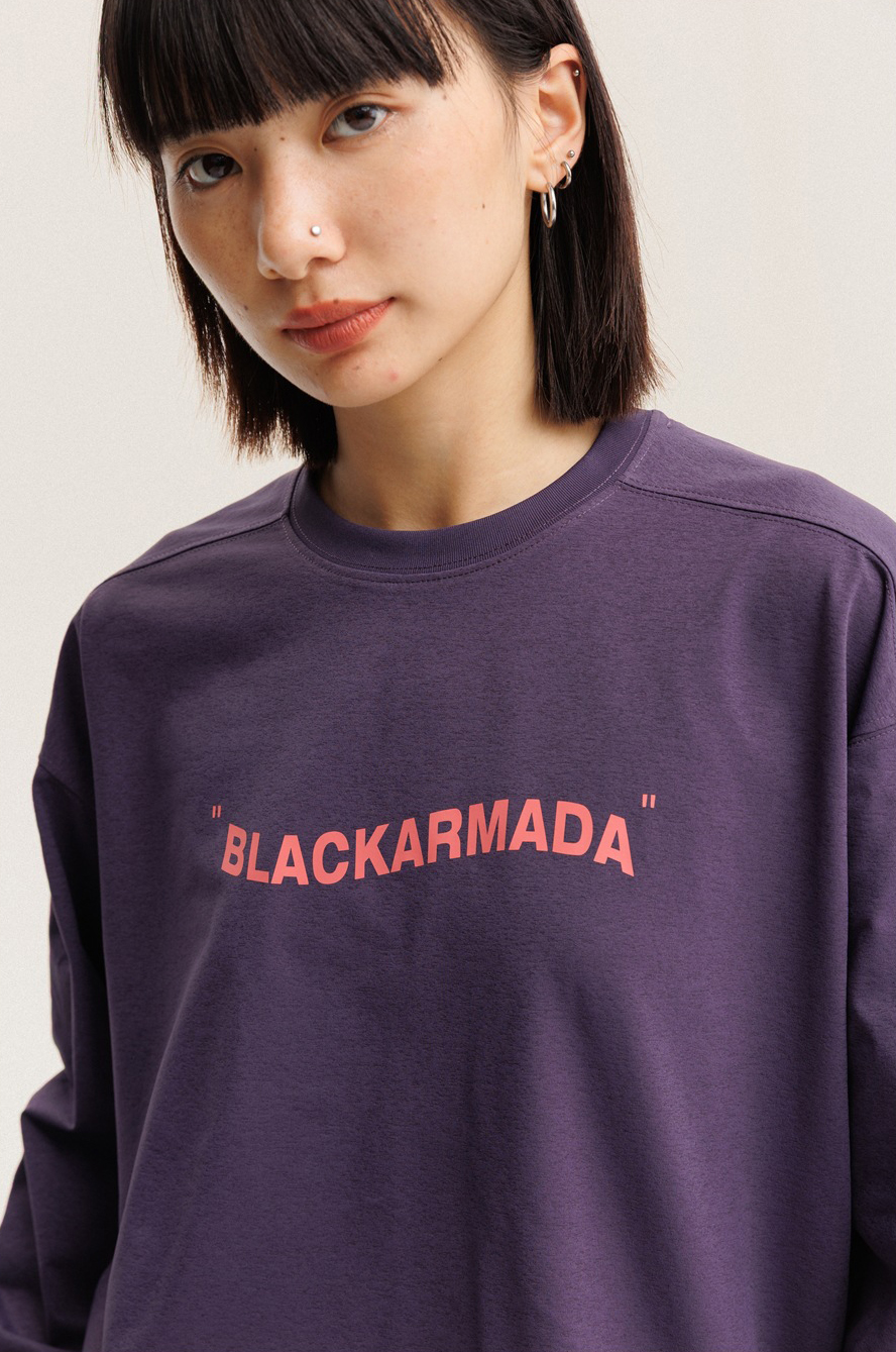 프론트 레터링과 백 프린트가 감각적인 포인트가 되는 드로스트링 롱슬리브 티셔츠입니다.