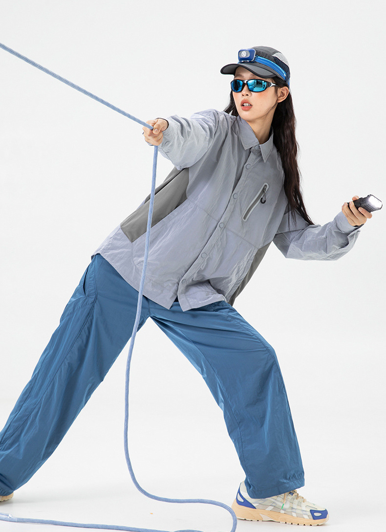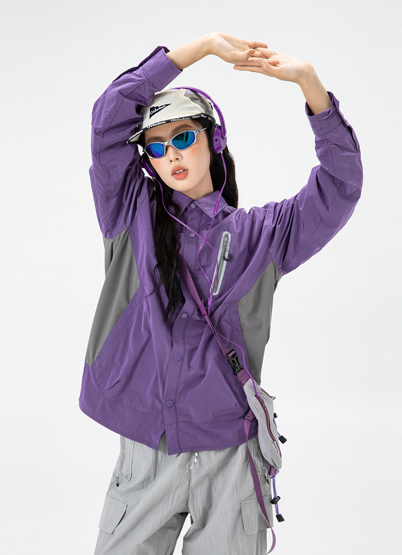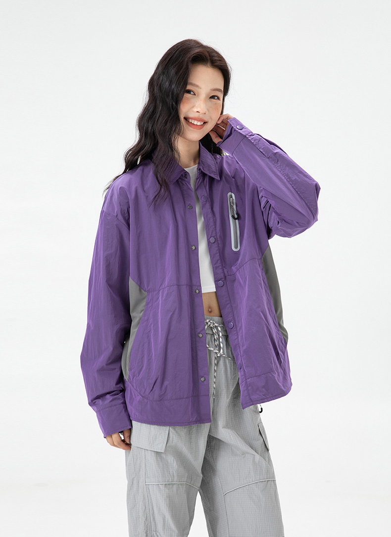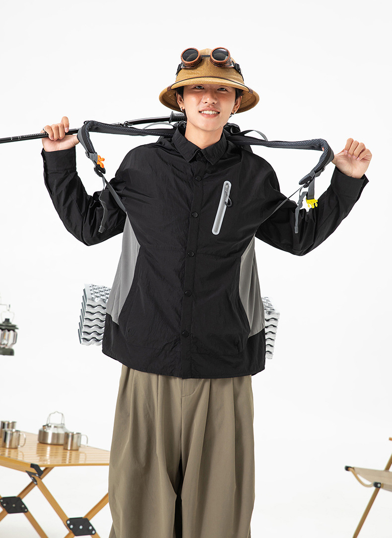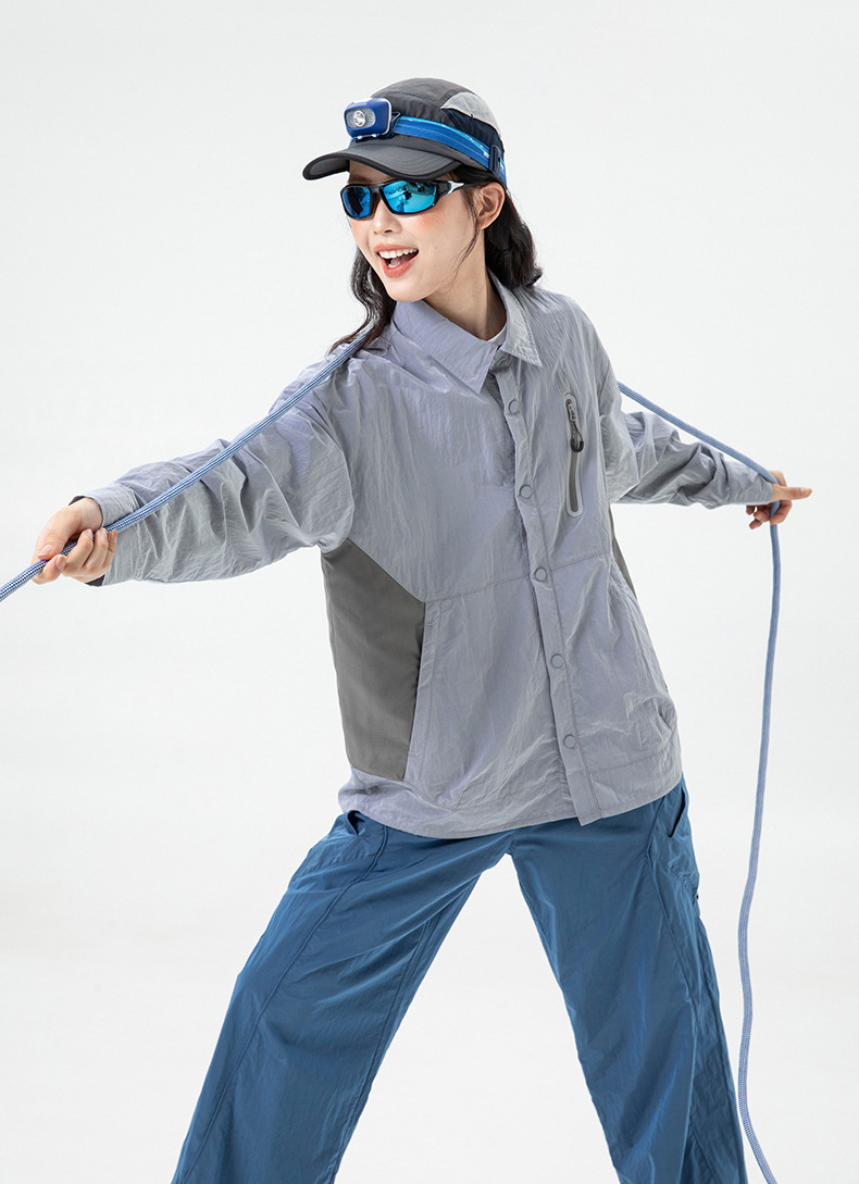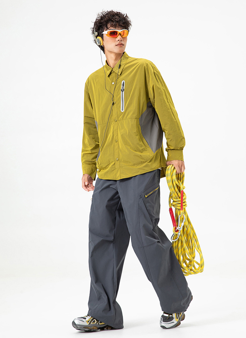 생활 방수와 내구성을 갖춘 메탈릭 나일론 셔츠 자켓입니다.