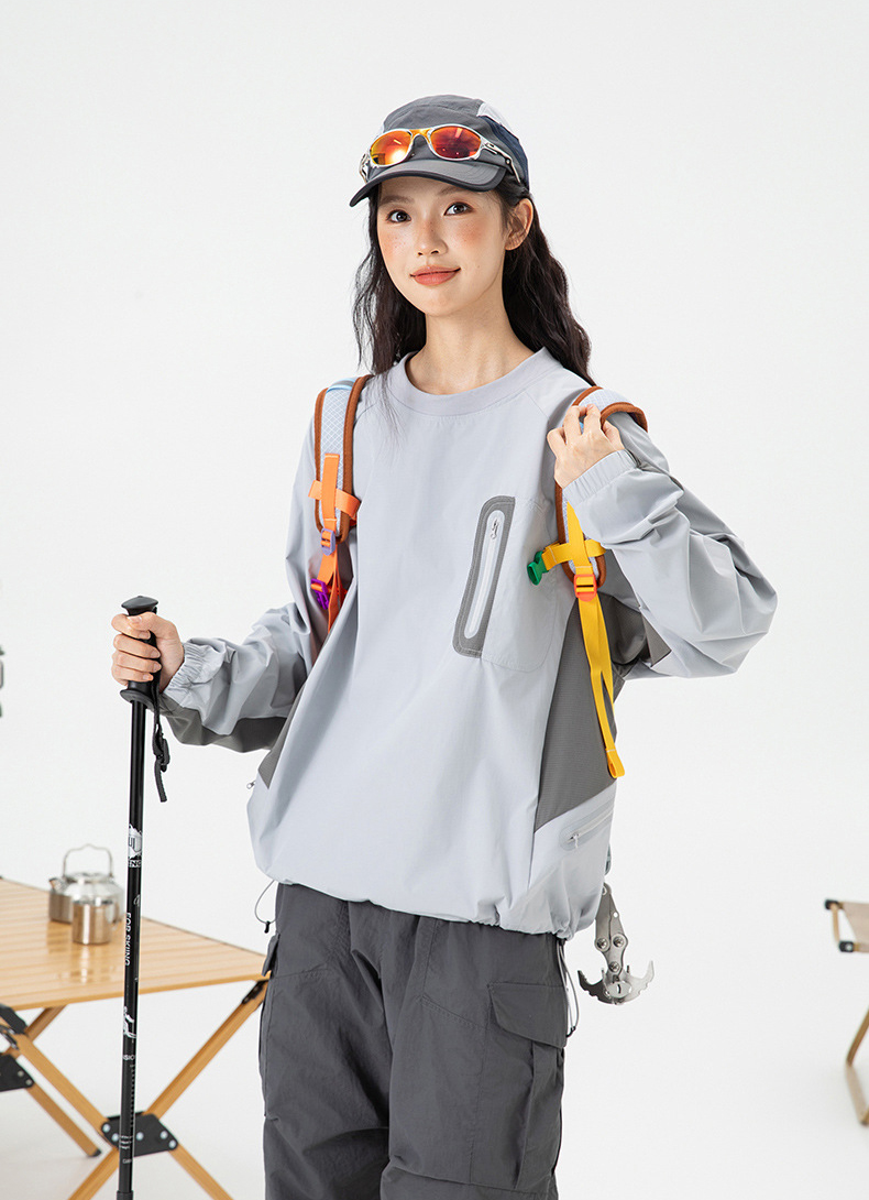 - 가슴과 양옆에 방수 지퍼 포켓 배치