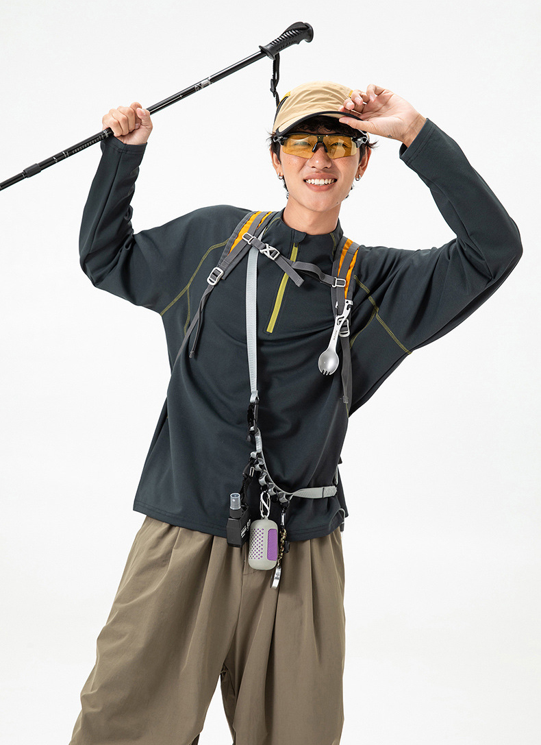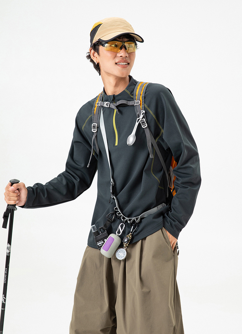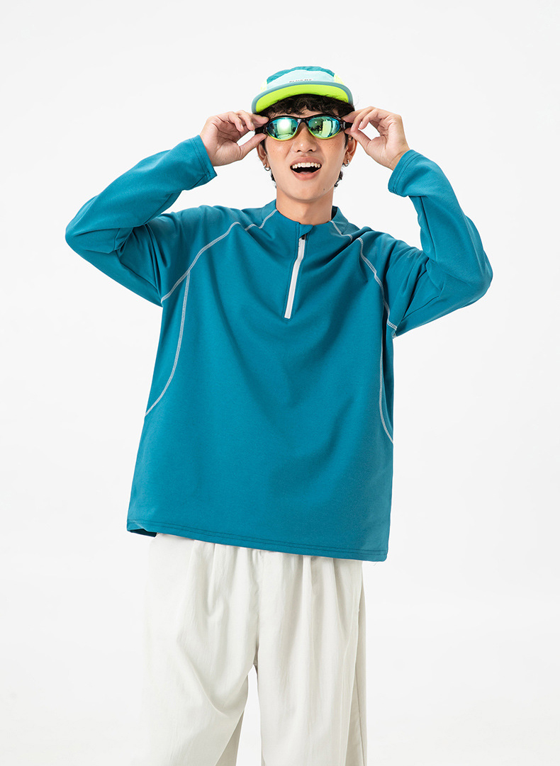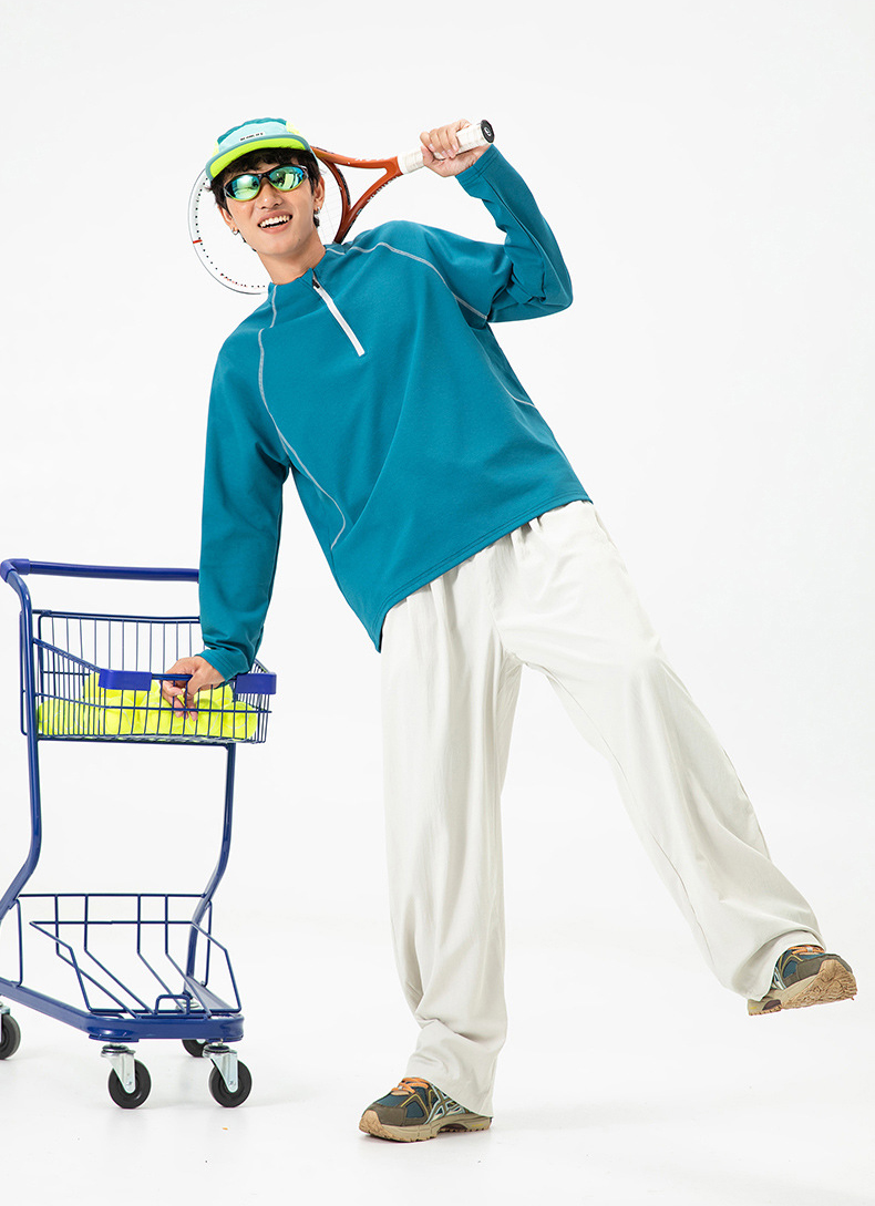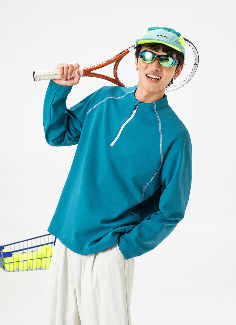 가볍고 편안한 착용감을 선사하는 스탠드업 칼라 집업 티셔츠입니다.