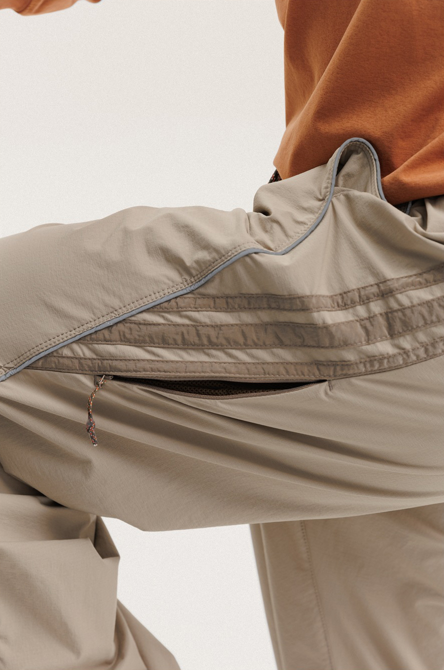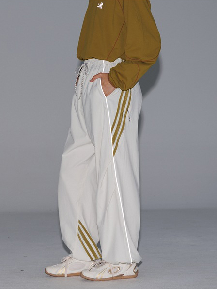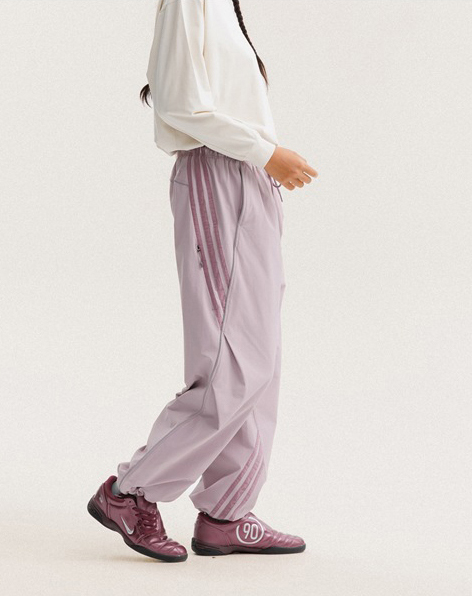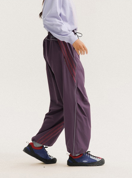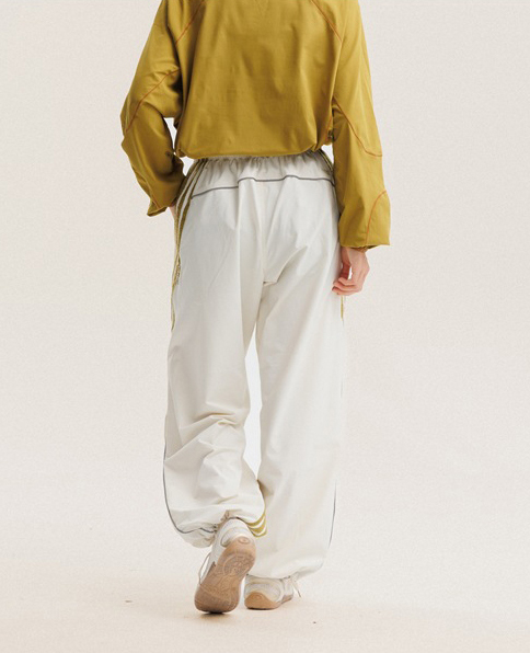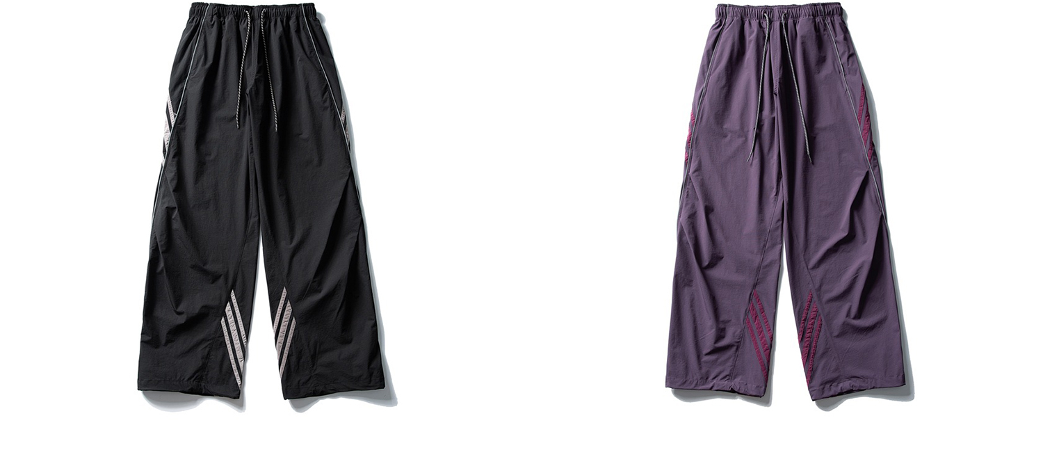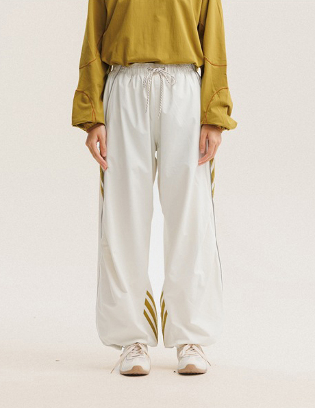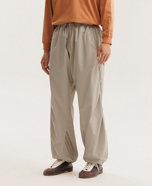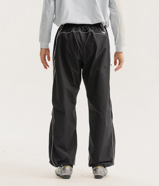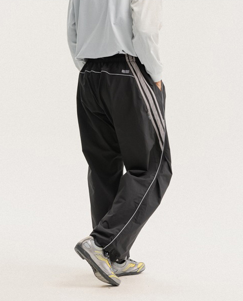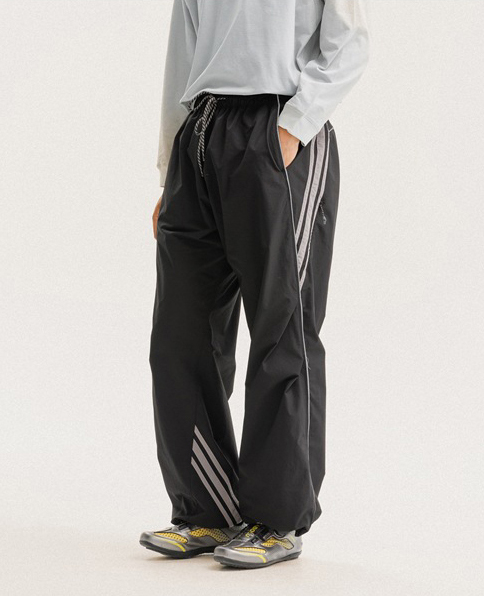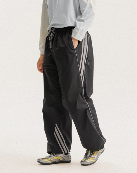 방수·방풍 기능과 배색 디테일로 스포티한 무드를 살린 와이드핏 팬츠입니다.