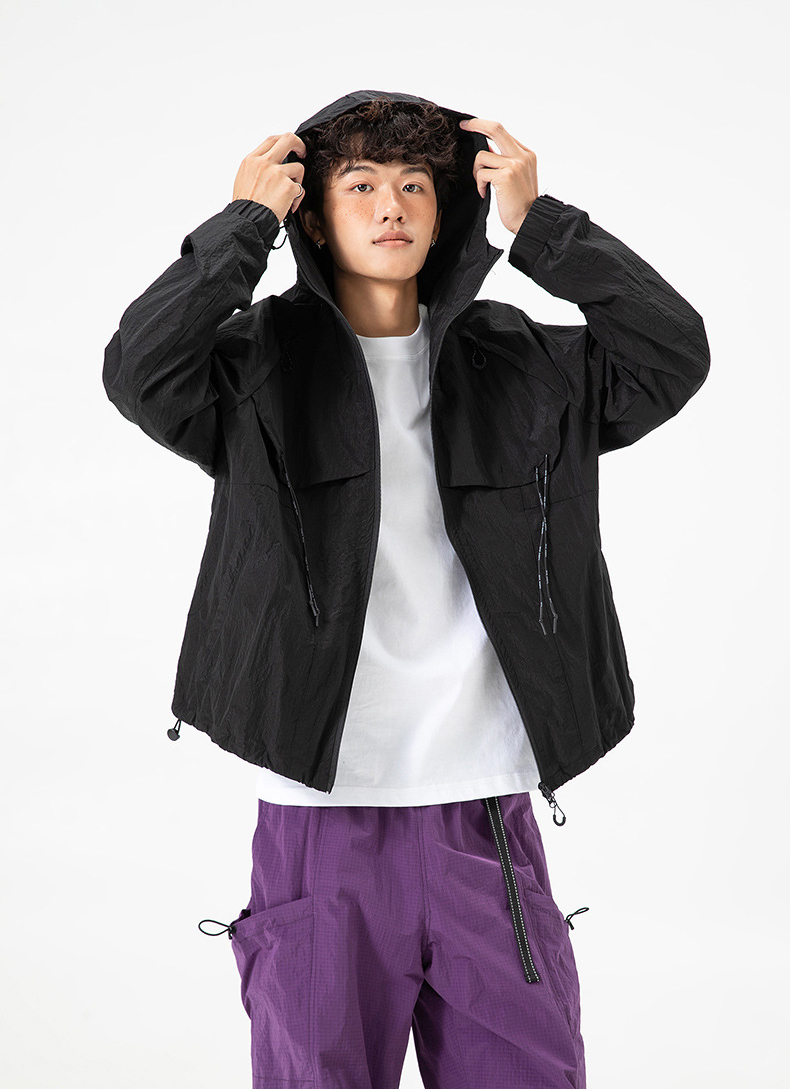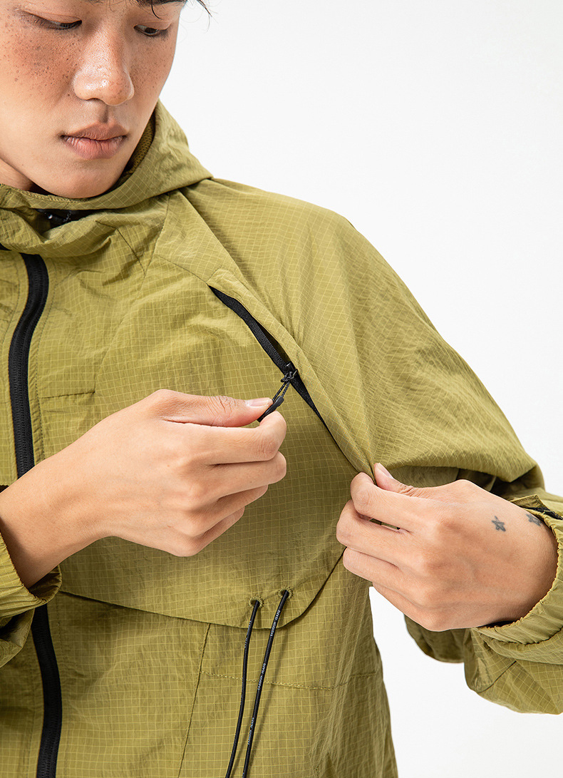 가볍고 기능적인 스타일을 완성해주는 심플한 아웃도어 무드의 윈드 브레이커입니다.