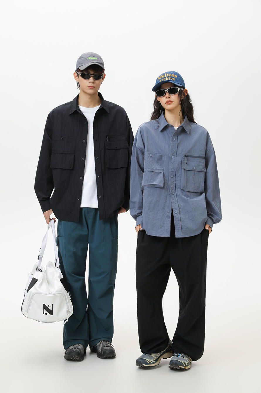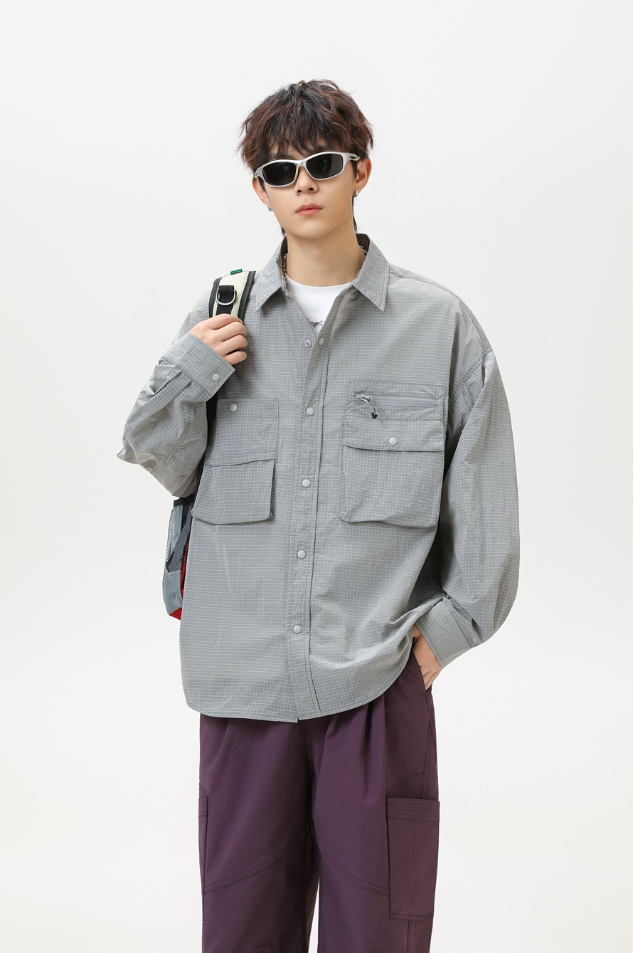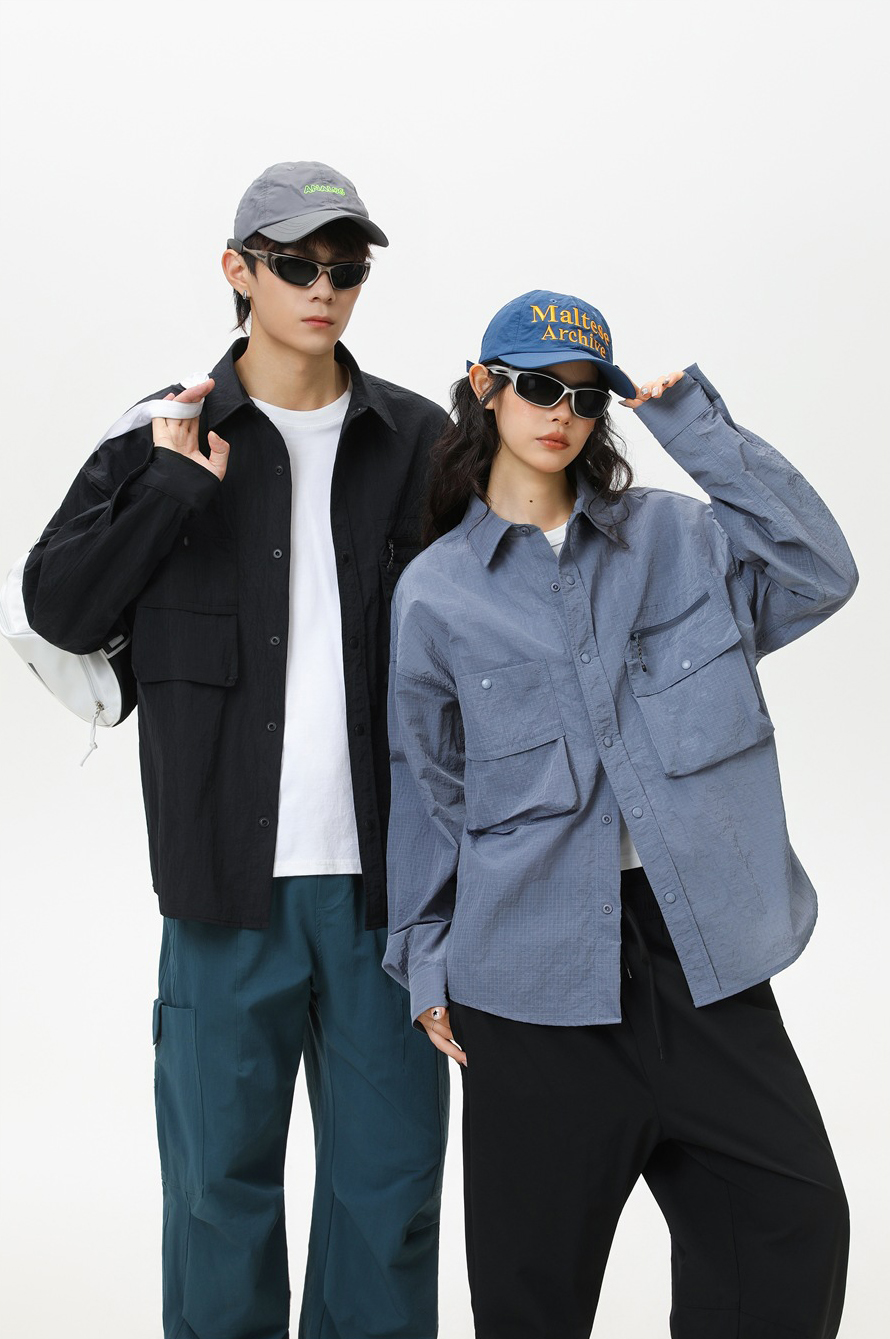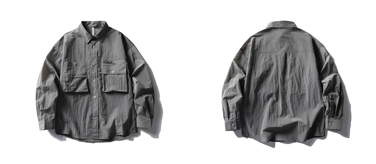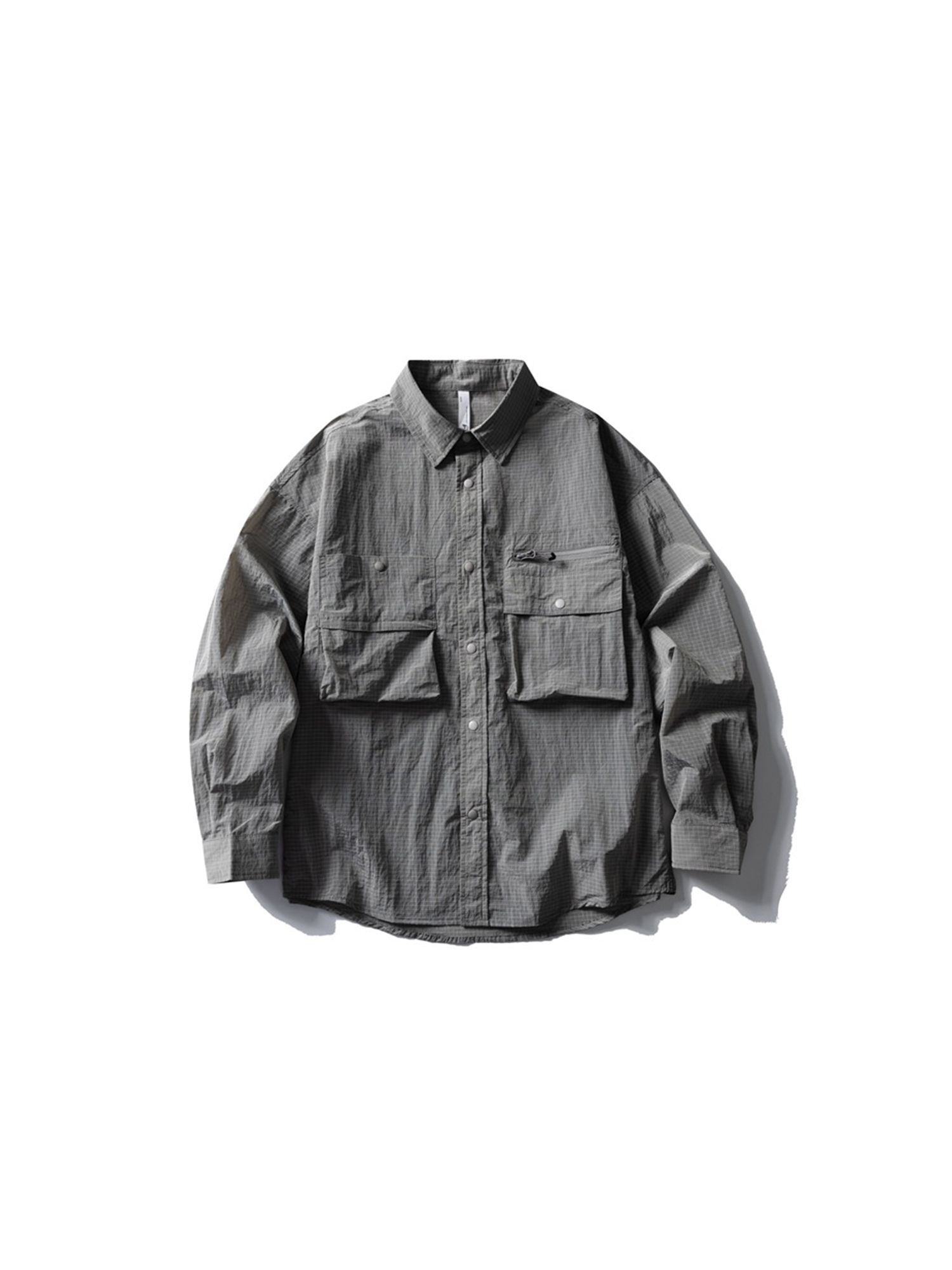 가볍고 내구성 높은 립스탑 원단으로 제작된 아웃도어 포켓 셔츠입니다.