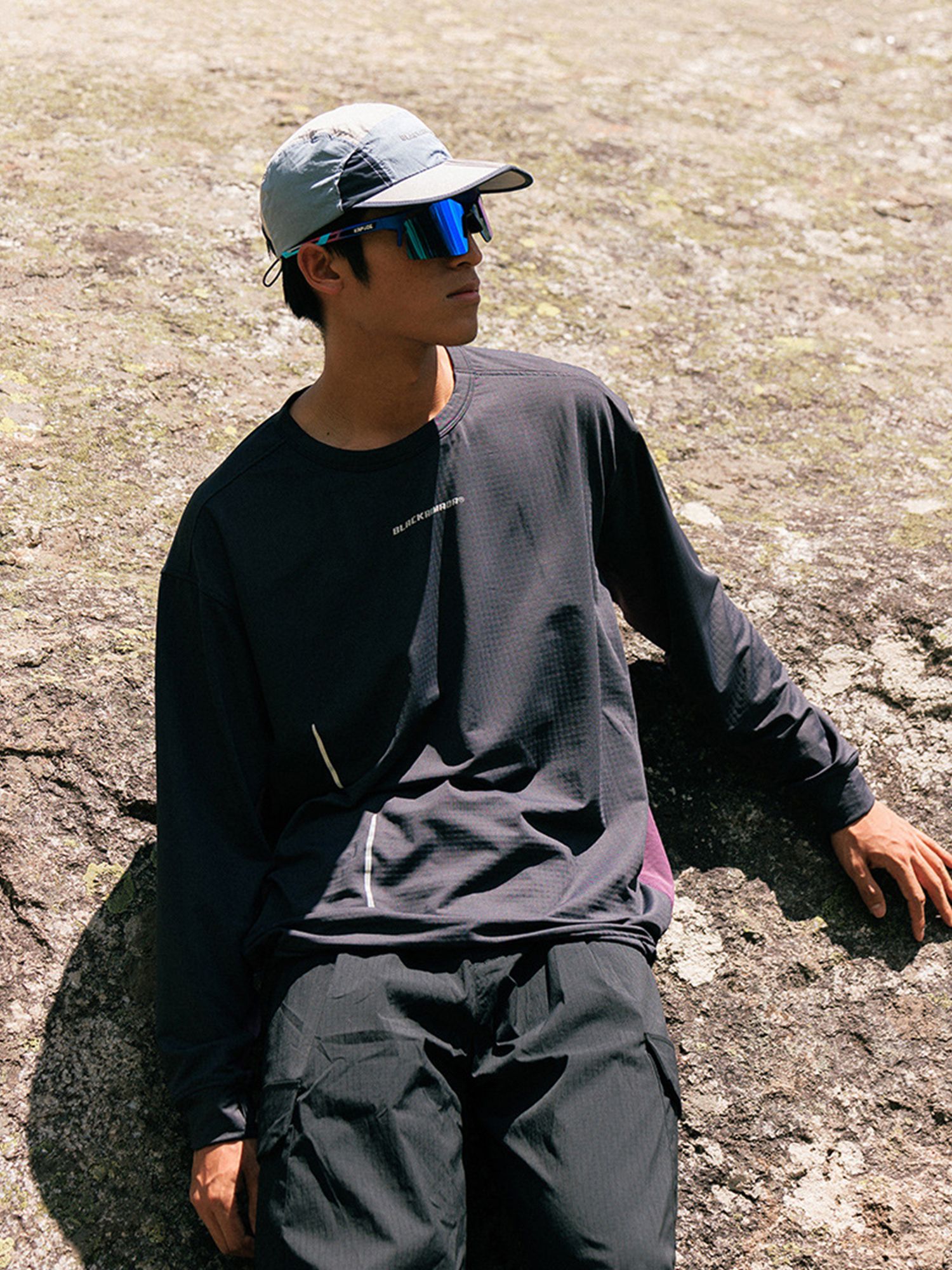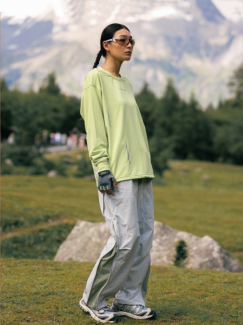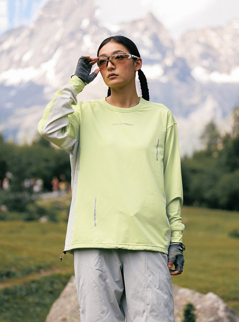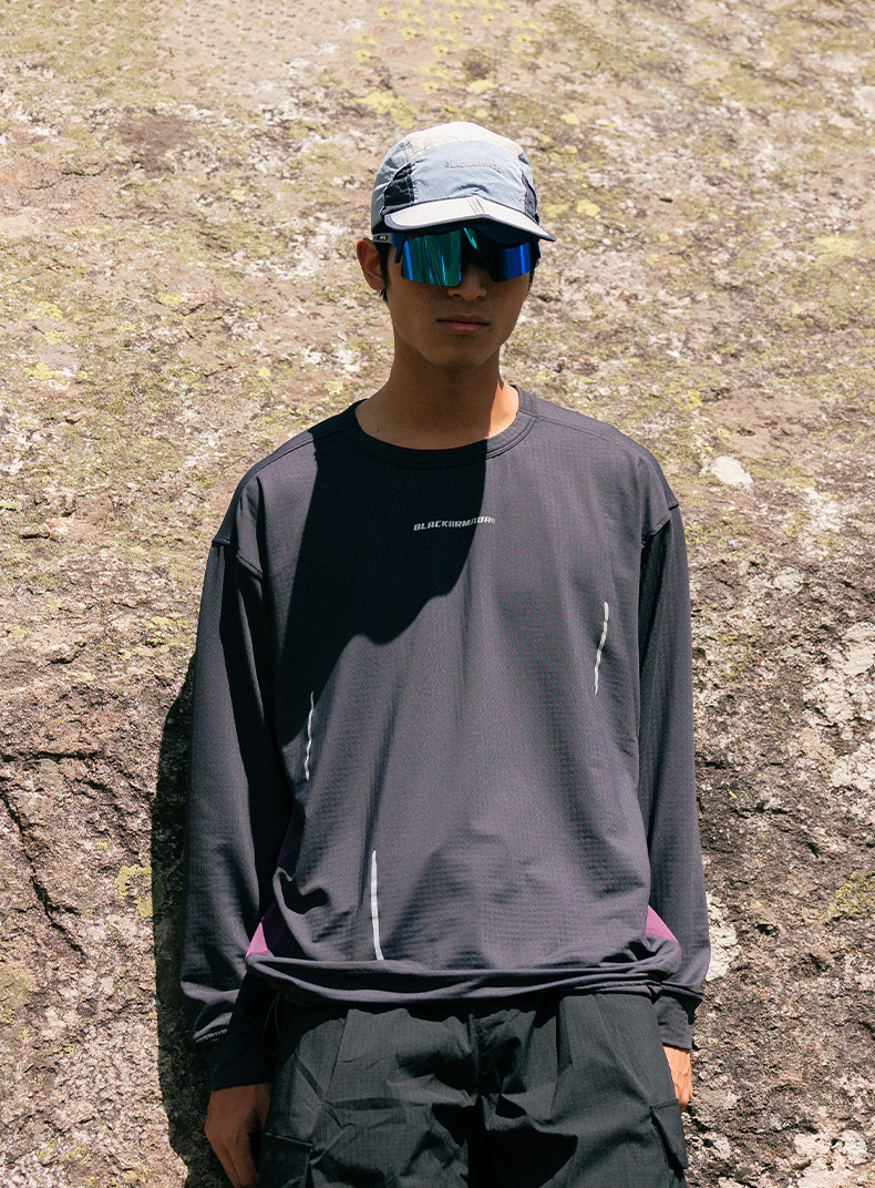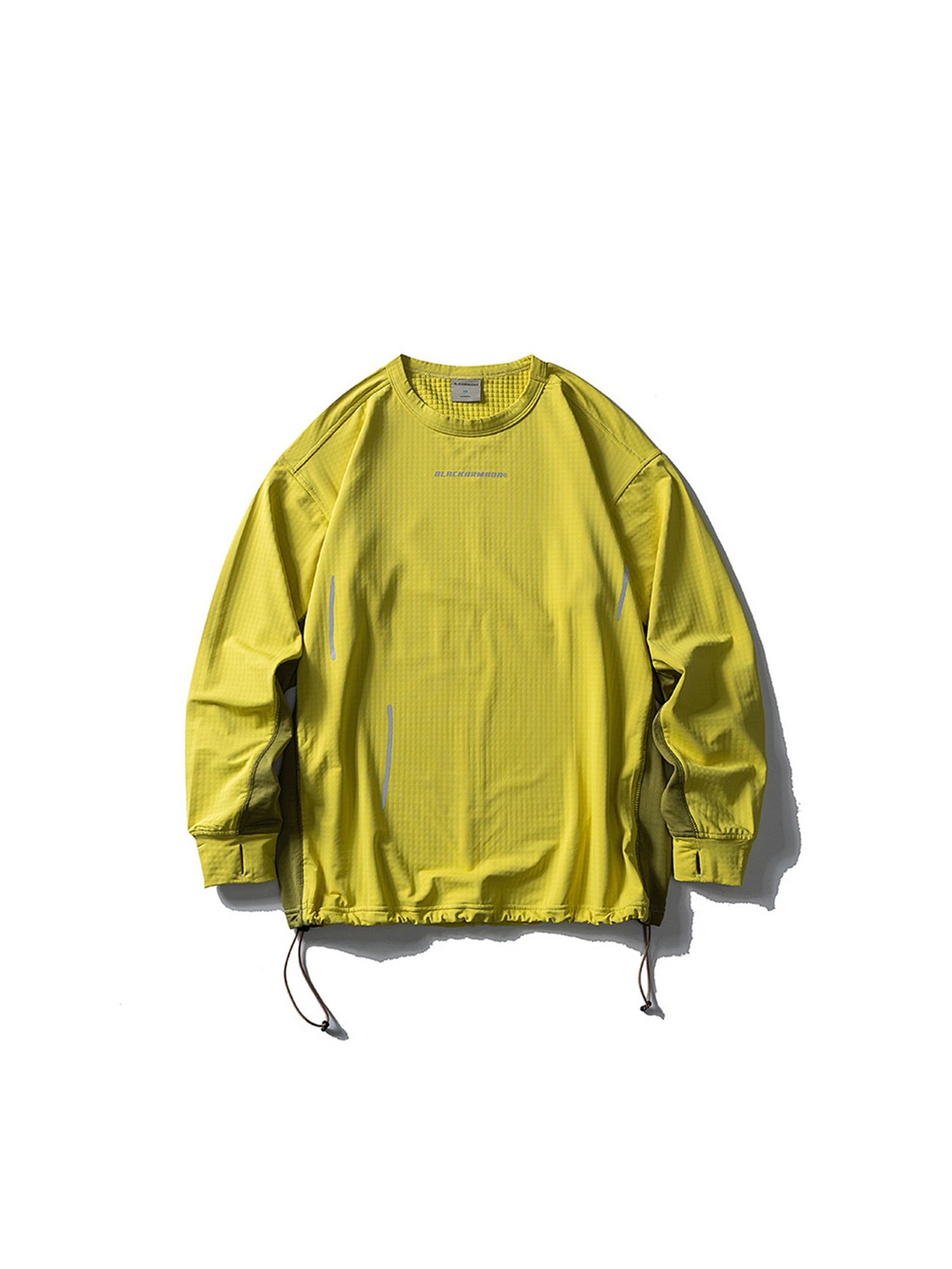 고신축 기능성 원단과 반사 디테일로 완성된 아웃도어용 속건 반사 티셔츠입니다.