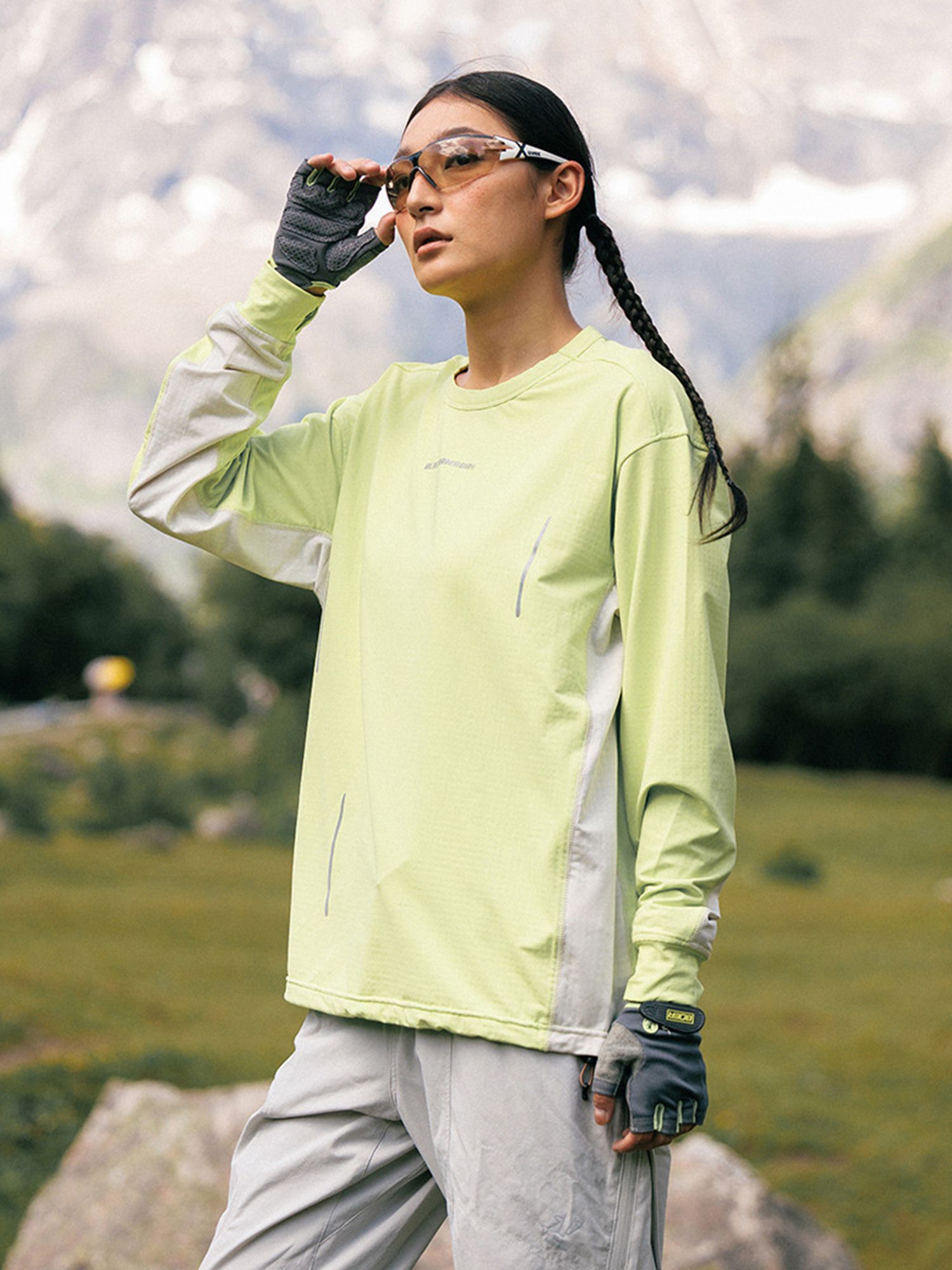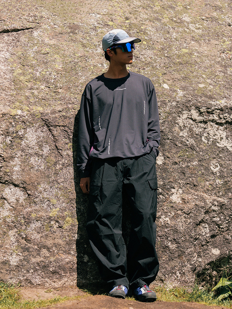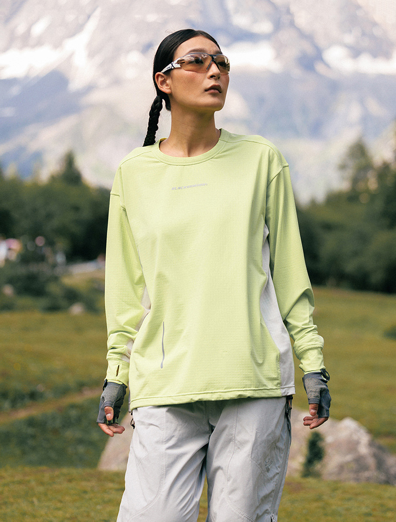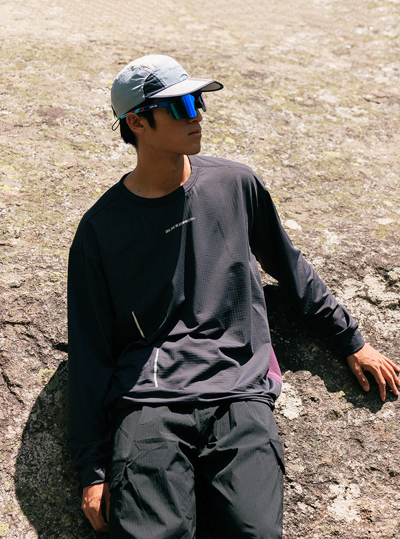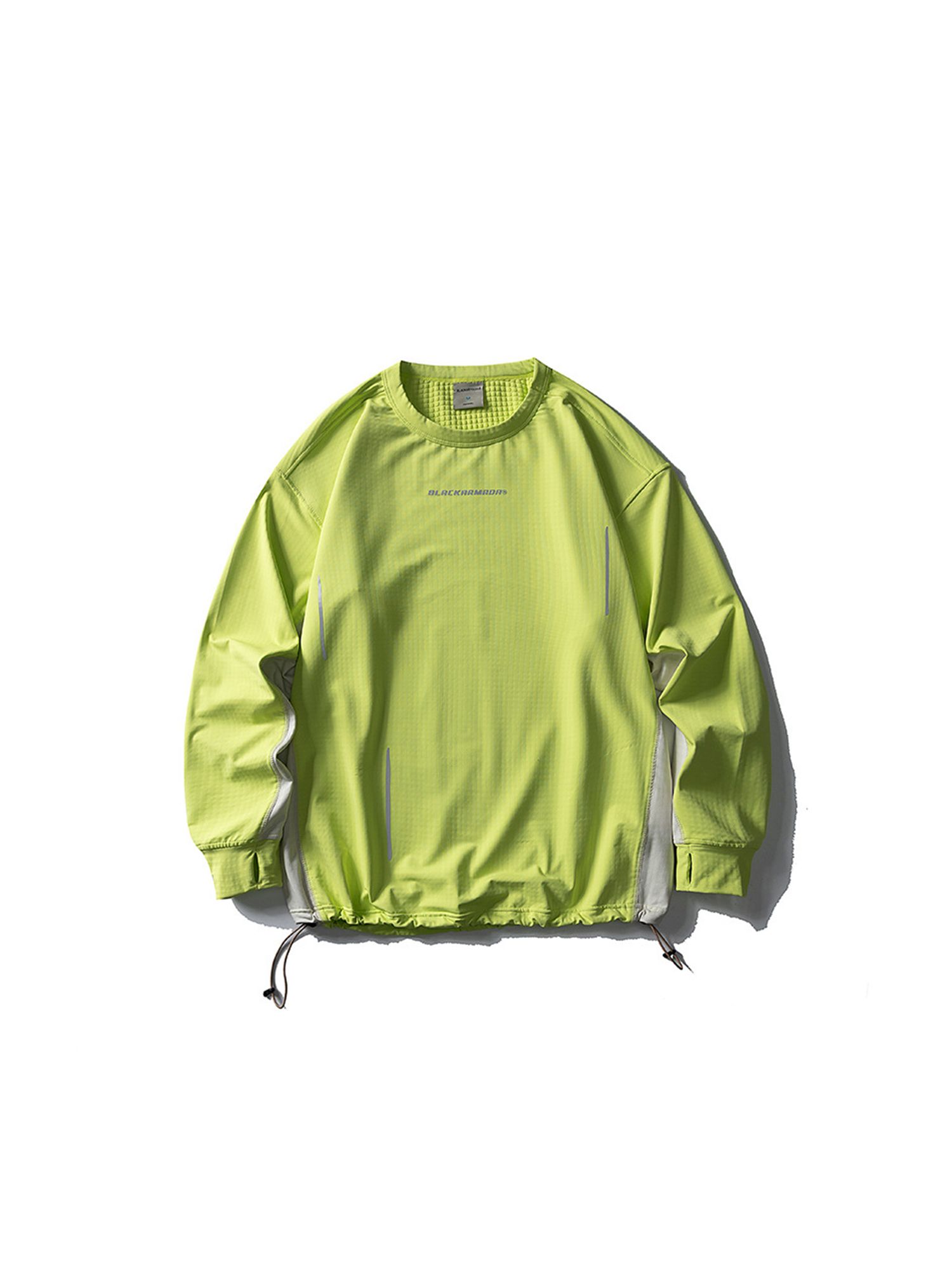 고신축 기능성 원단과 반사 디테일로 완성된 아웃도어용 속건 반사 티셔츠입니다.