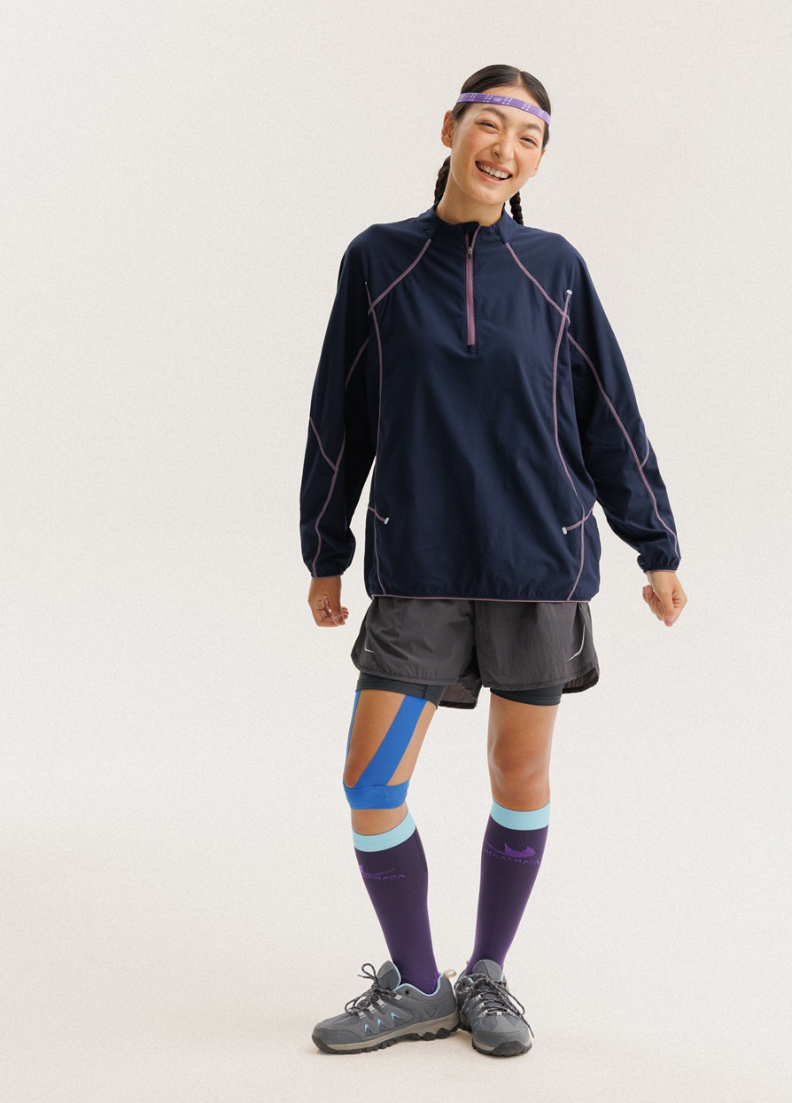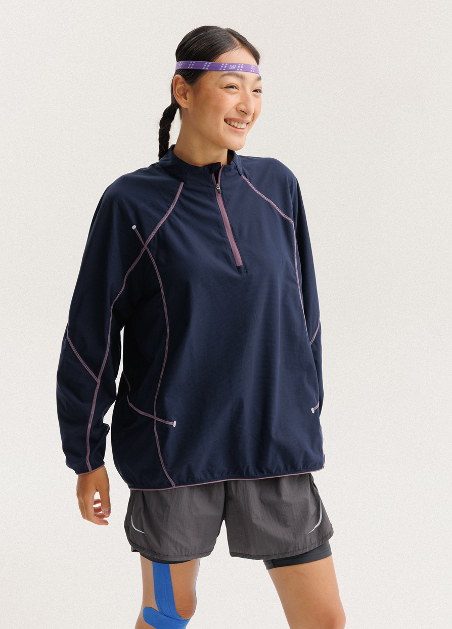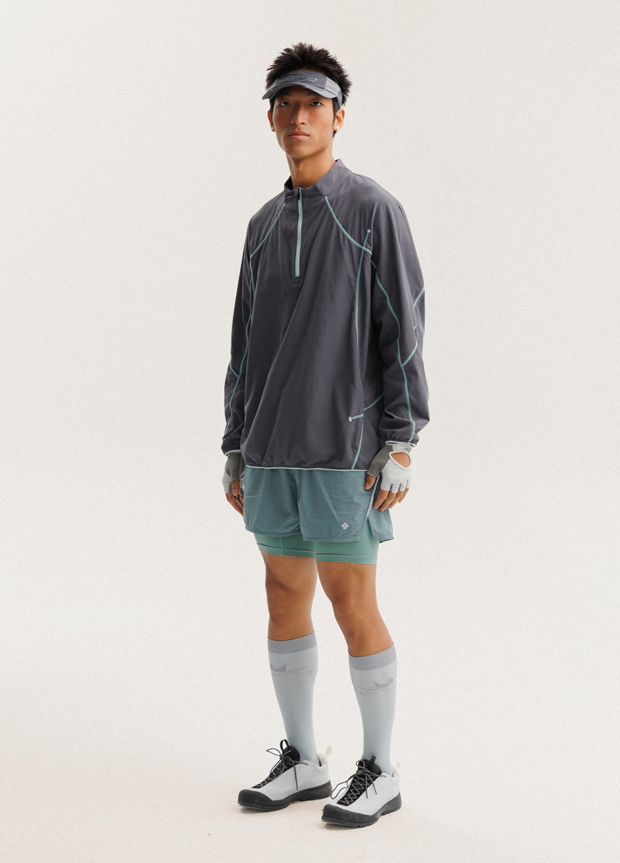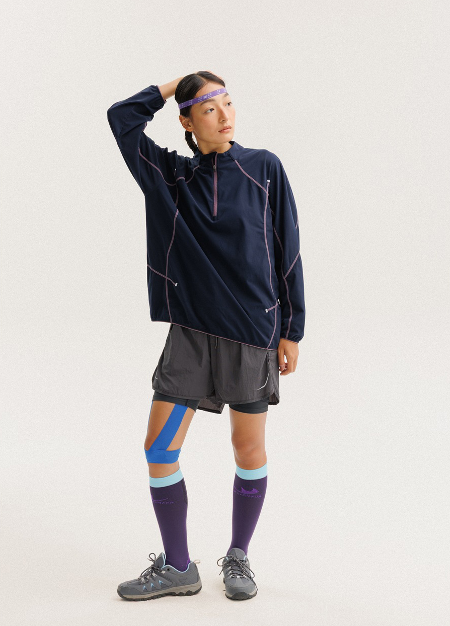 입체적인 배색 스티치 라인으로 활동적인 무드를 살린 하프집업 경량 맨투맨 셔츠입니다.