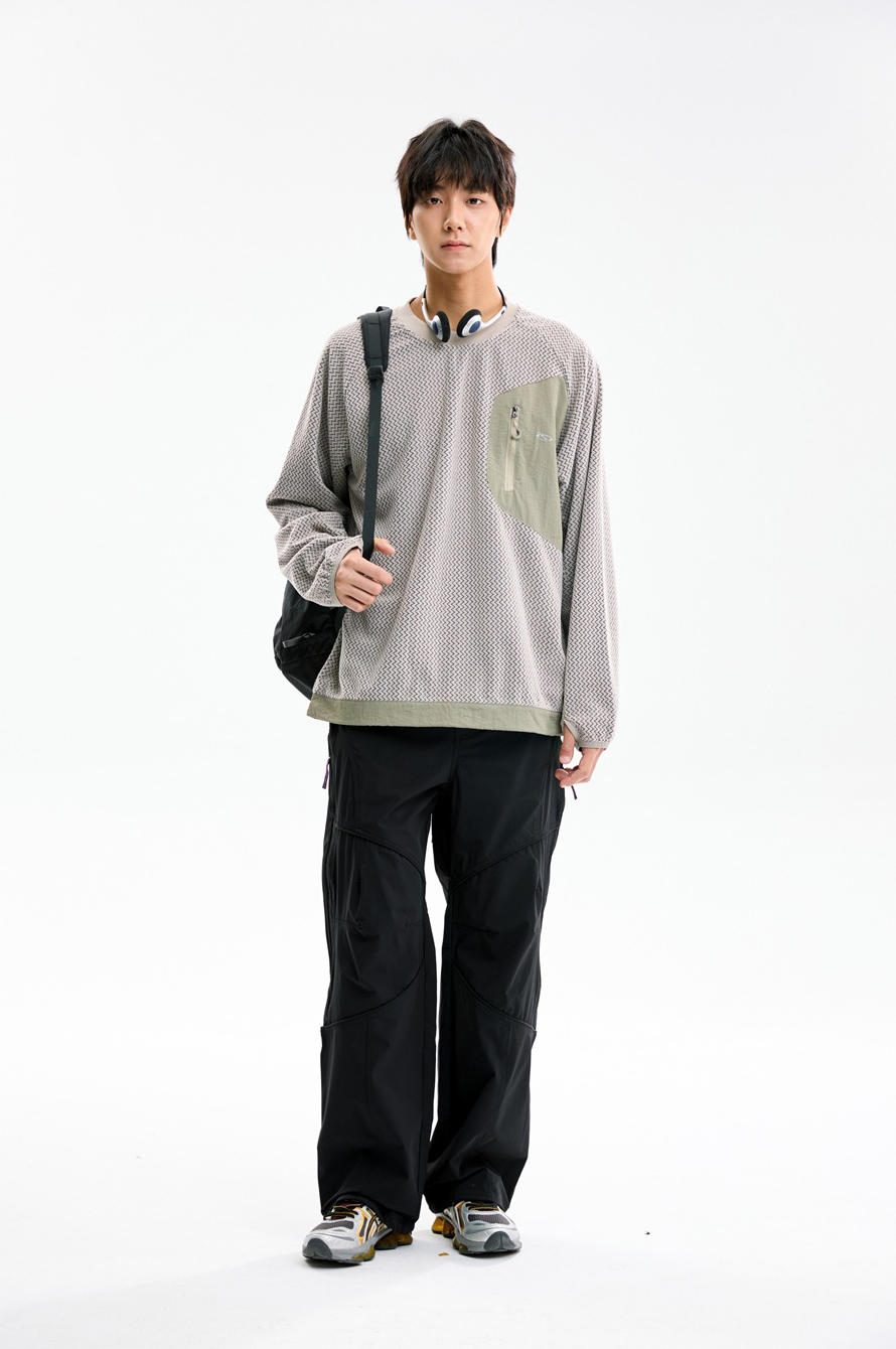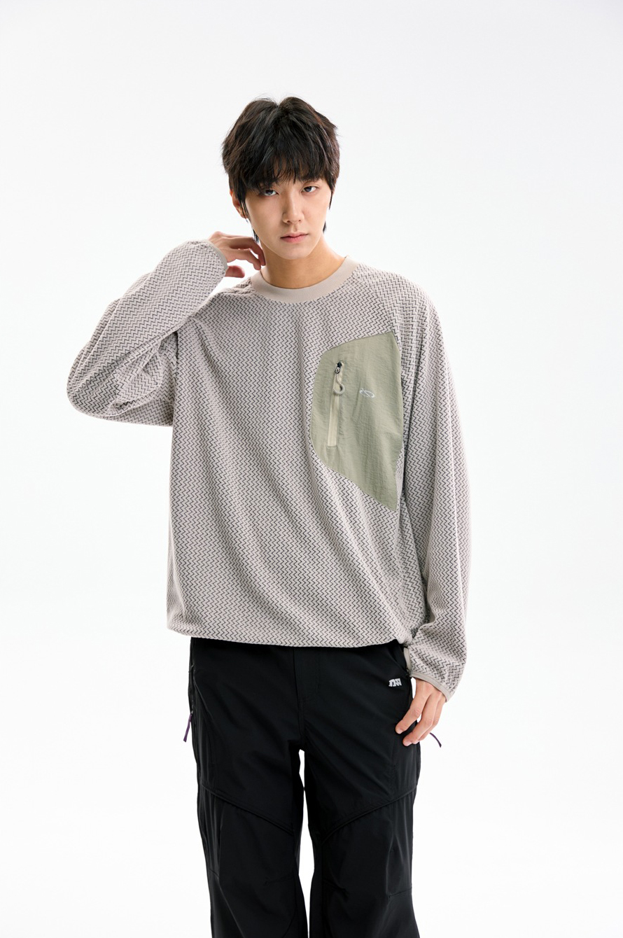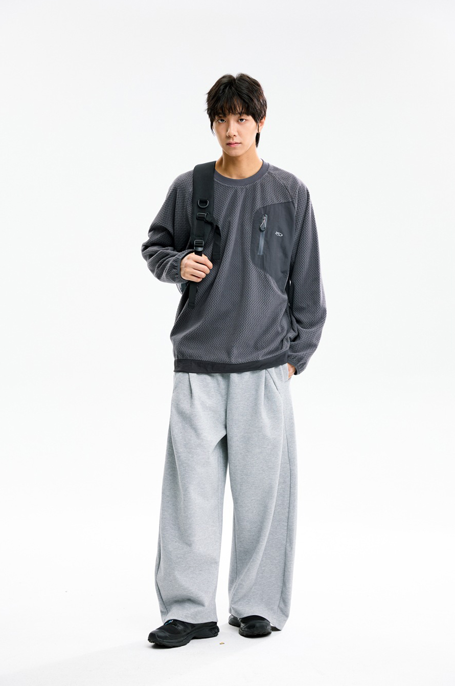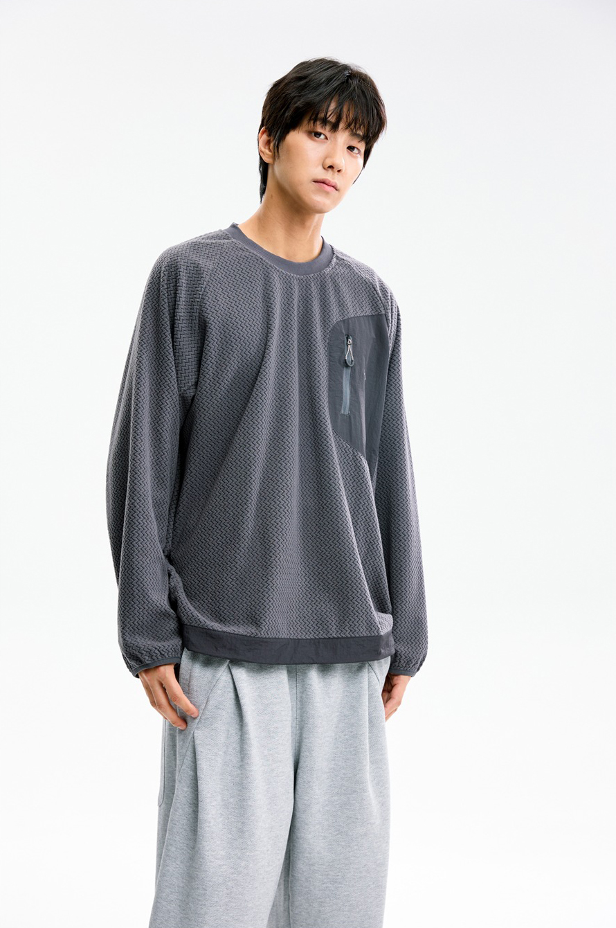 웨이브 조직감의 텍스처가 돋보이며, 편안한 착용감과 세련된 캐주얼 무드를 동시에 살린 맨투맨입니다.