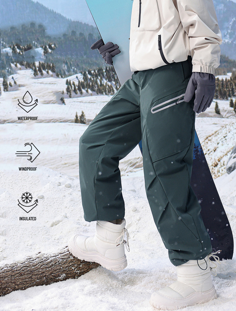 혹한기 눈밭과 강풍에도 체온을 안정적으로 유지하는 방수·방풍 5중 구조의 고기능성 스키·보드 팬츠입니다.