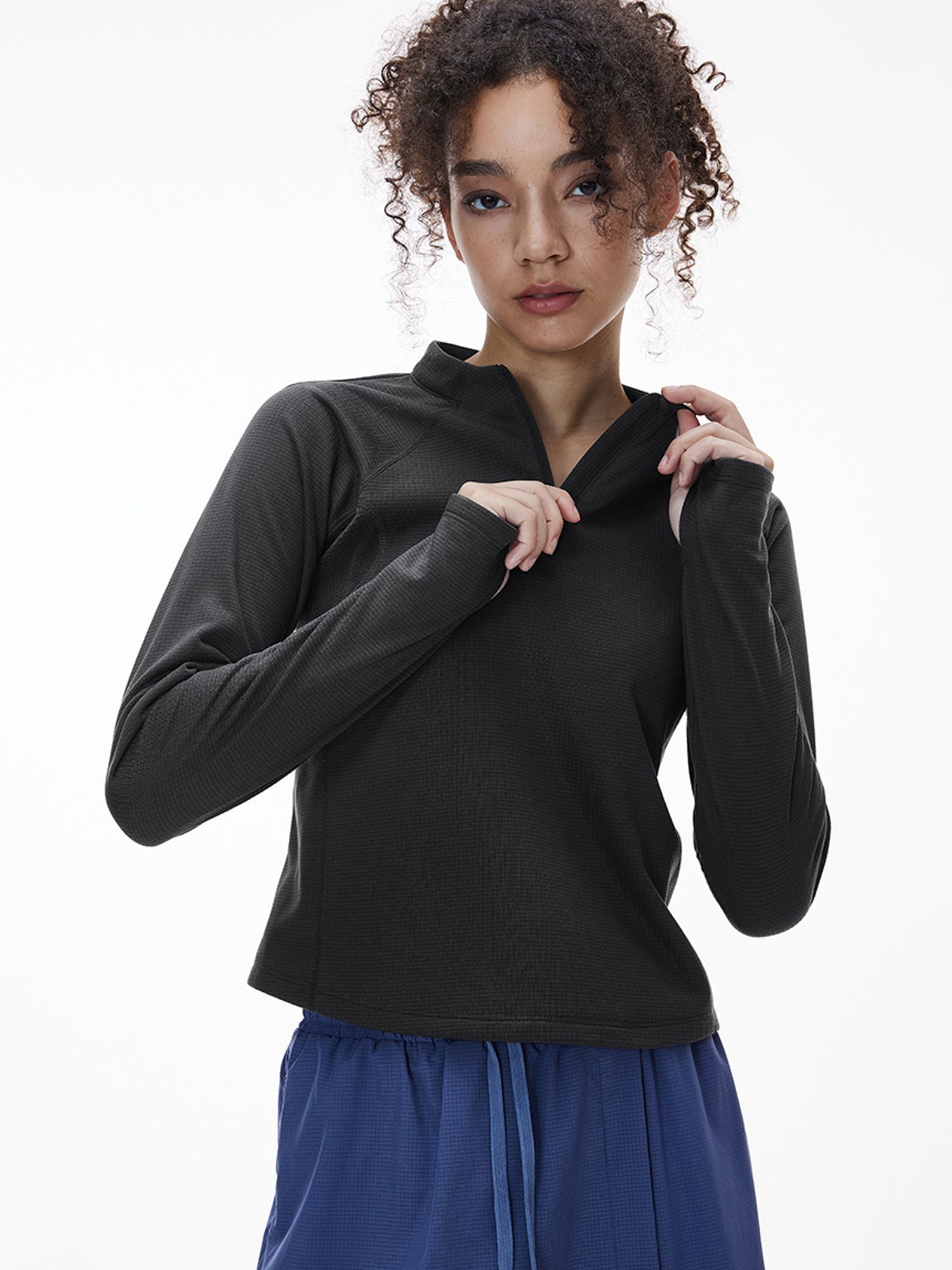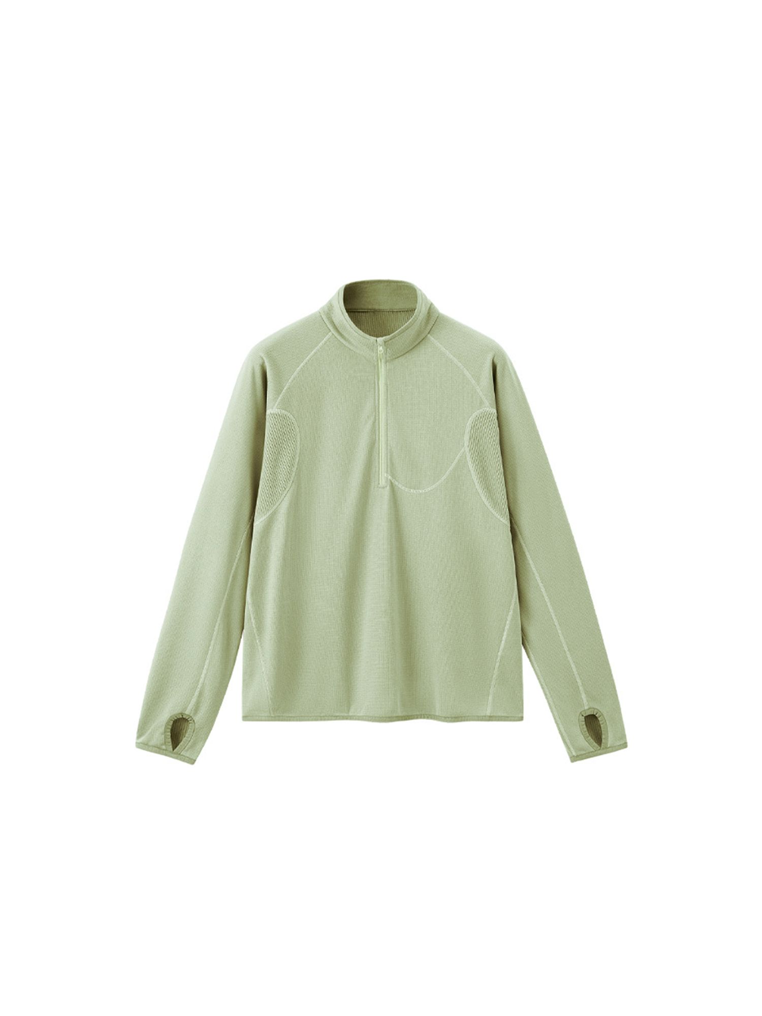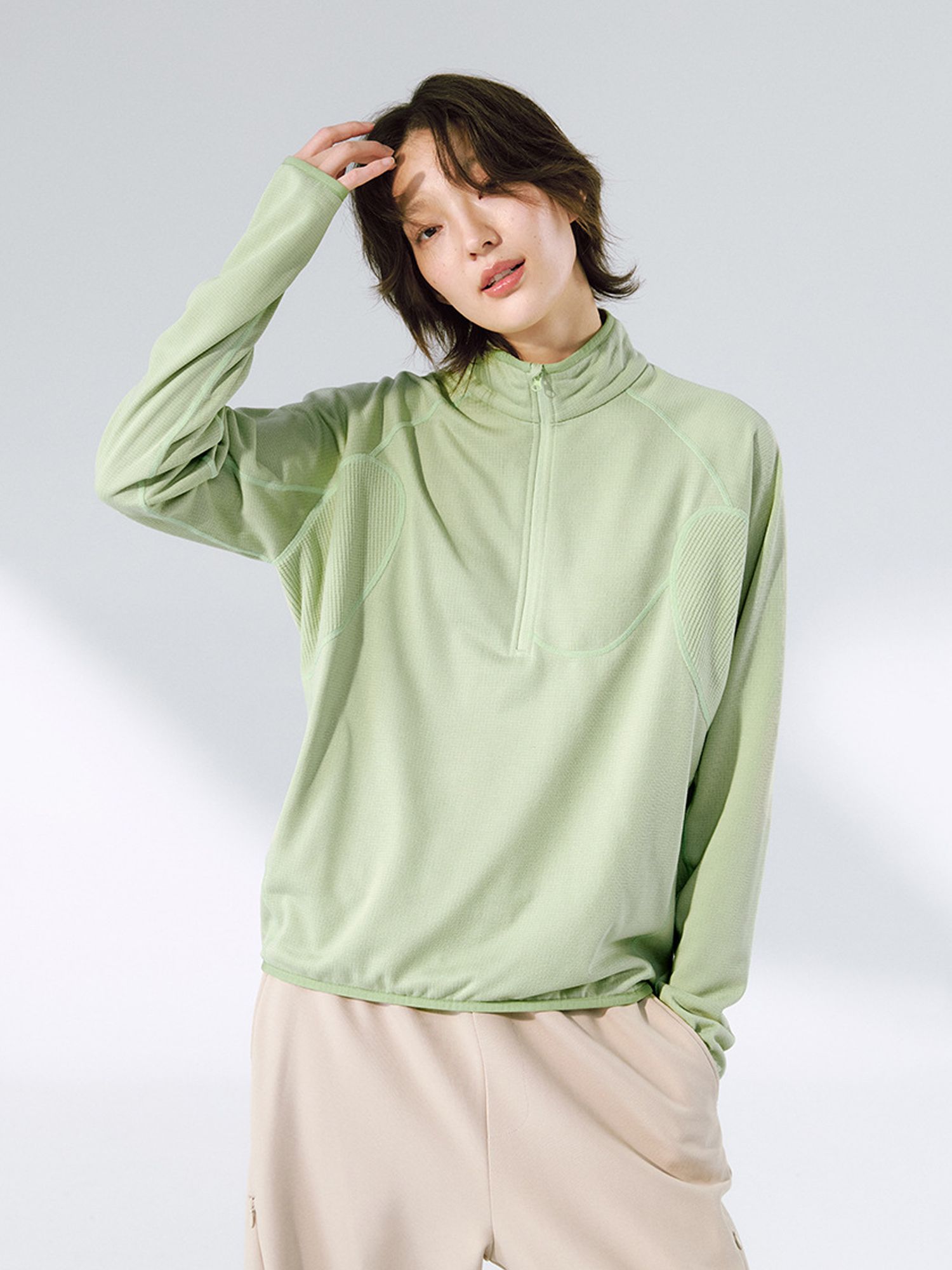 경량성과 보온성을 겸비한 와플 텍스처 하프 집업 후디로, 남녀공용과 여성용 두 가지 버전으로 출시된 제품입니다.