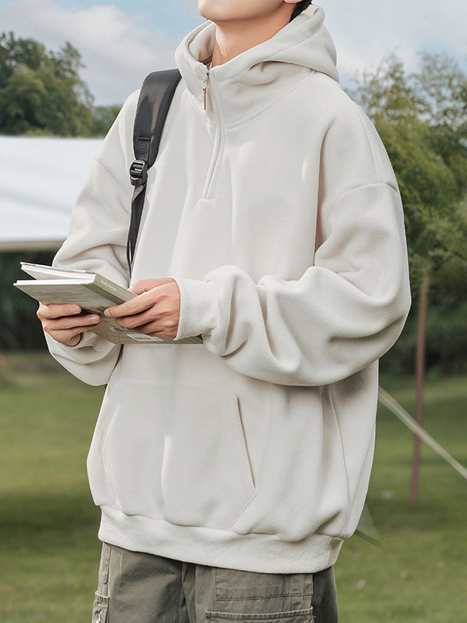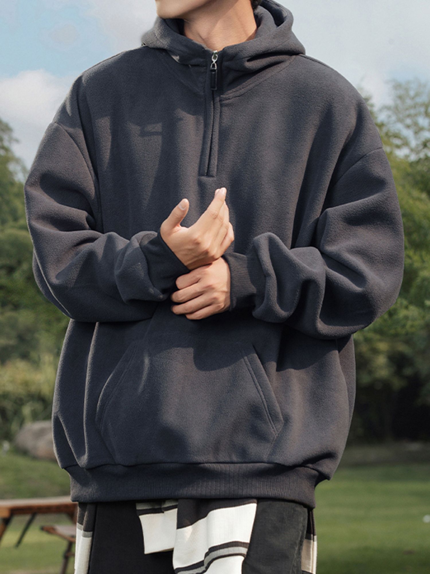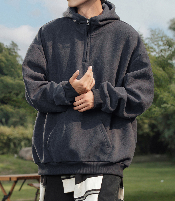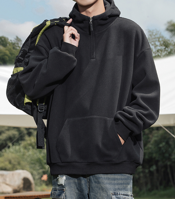 부드러운 430g 헤비 플리스 소재로 포근한 보온감을 전해주는 하프집업 후드티입니다.