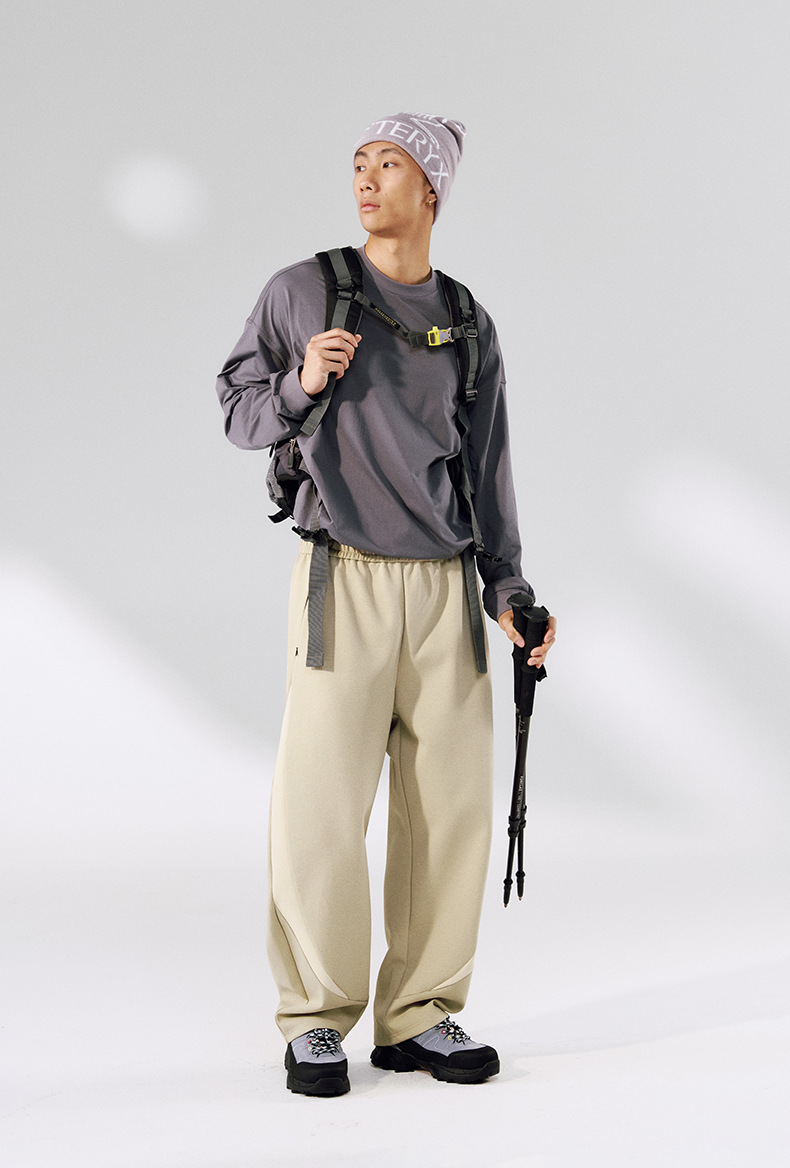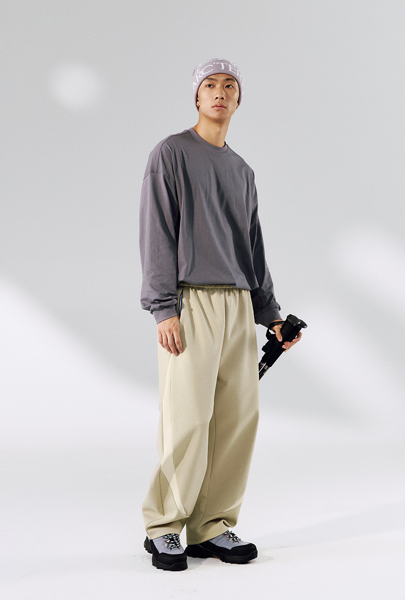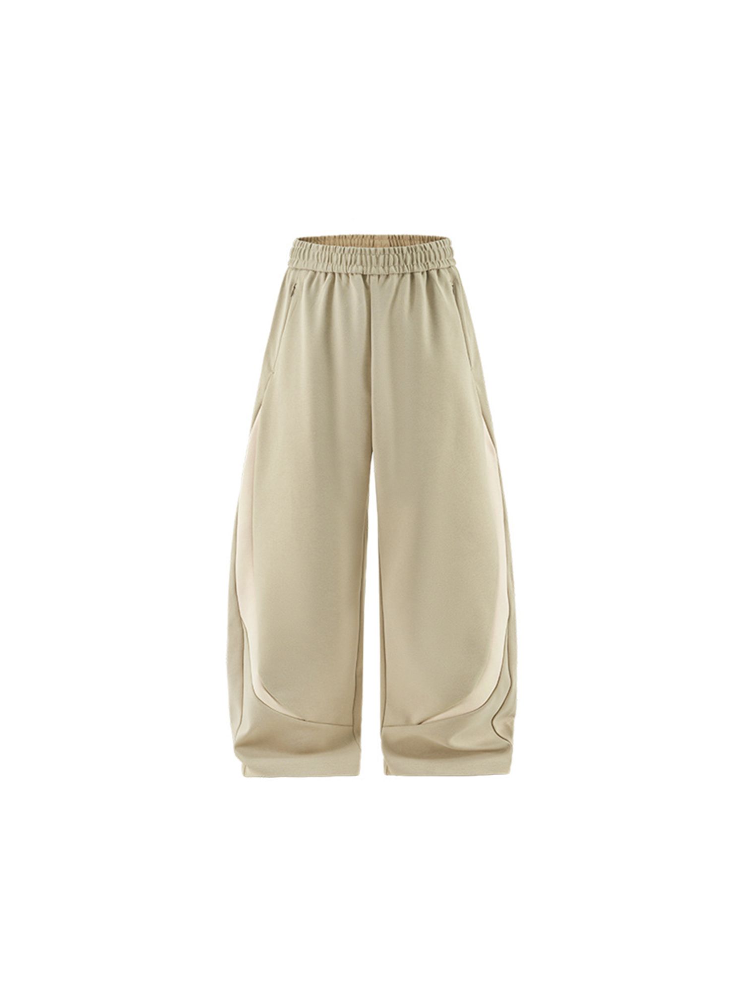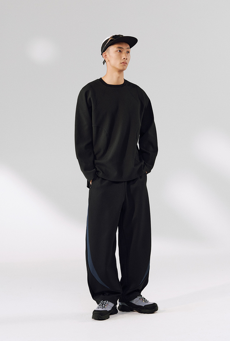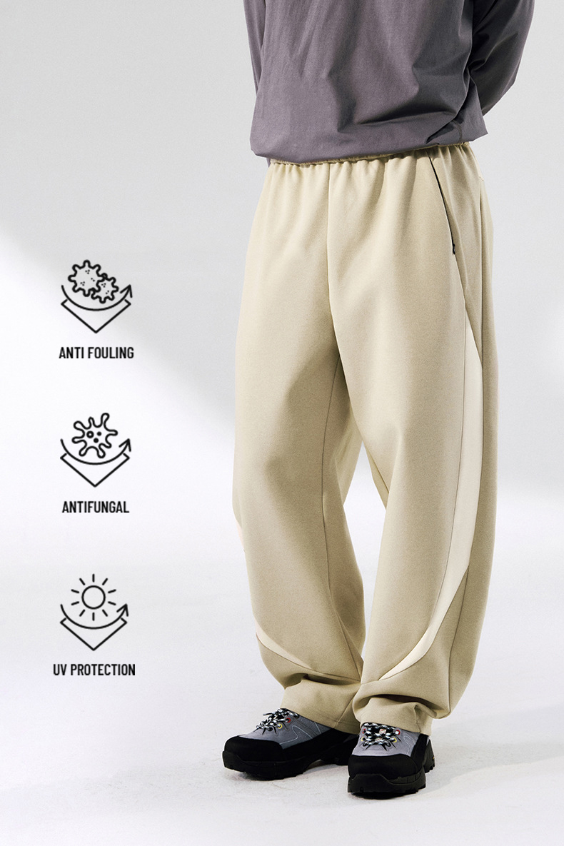 입체적인 곡선 절개와 배색 포인트로 스타일과 기능성을 모두 갖춘 편안한 와이드 트랙 팬츠입니다.