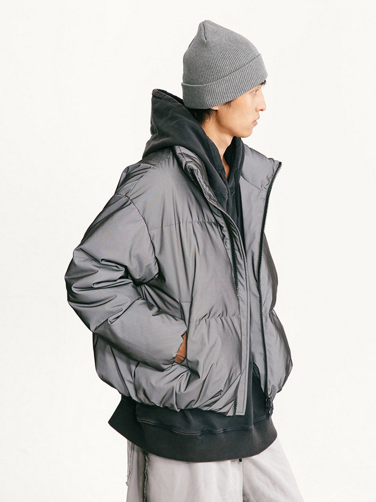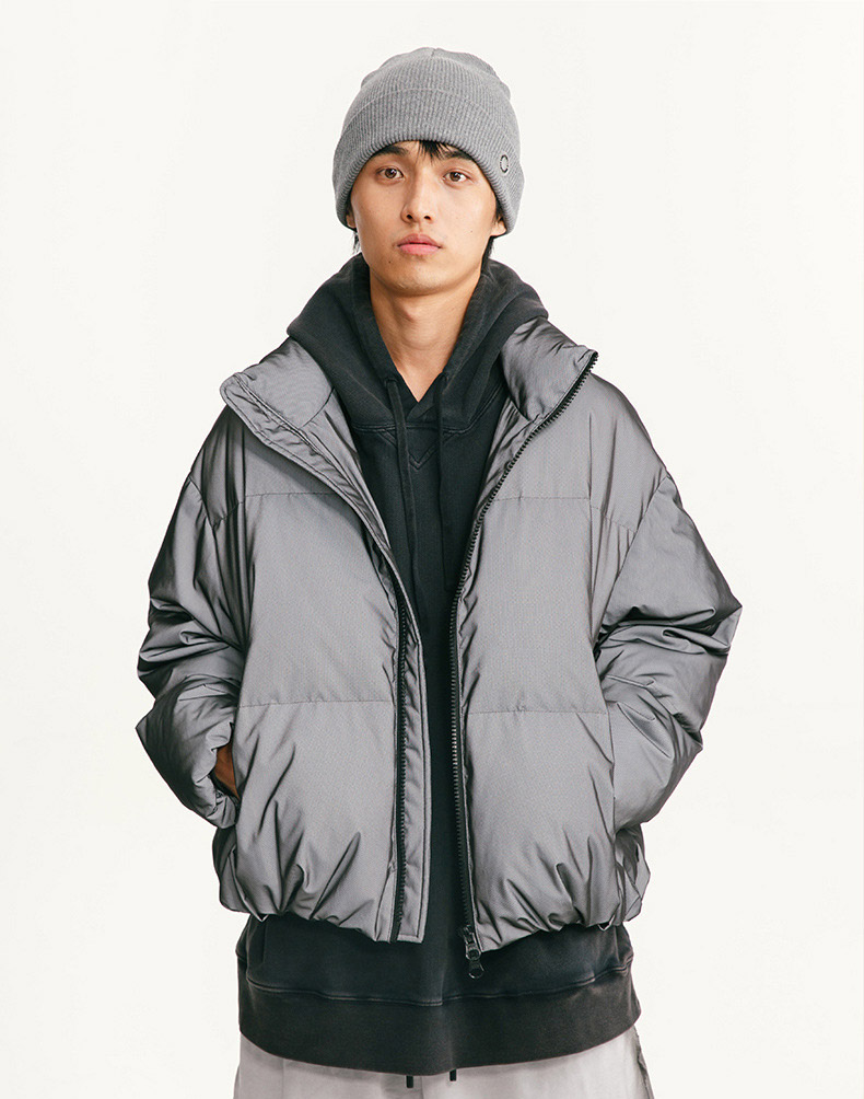 하이테크 반사 원단과 풍성한 볼륨감이 돋보이는 3D 리플렉티브 숏패딩입니다.