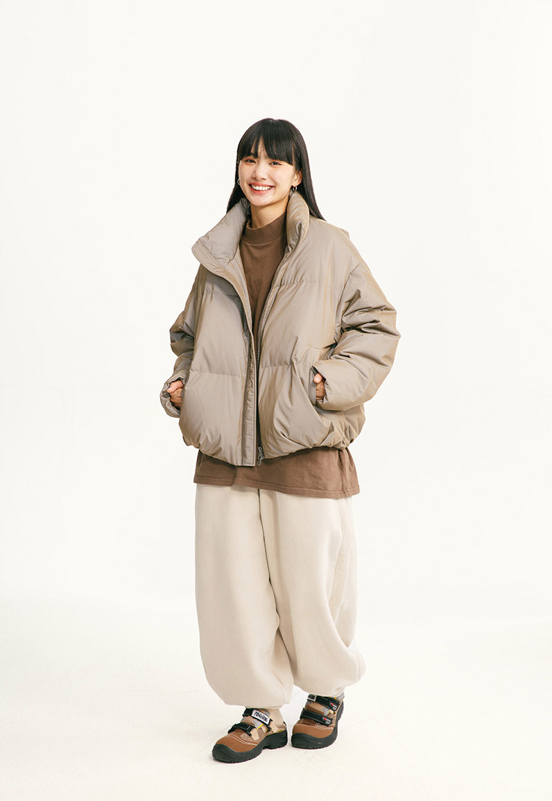 - 숏 패딩 특유의 볼륨 실루엣