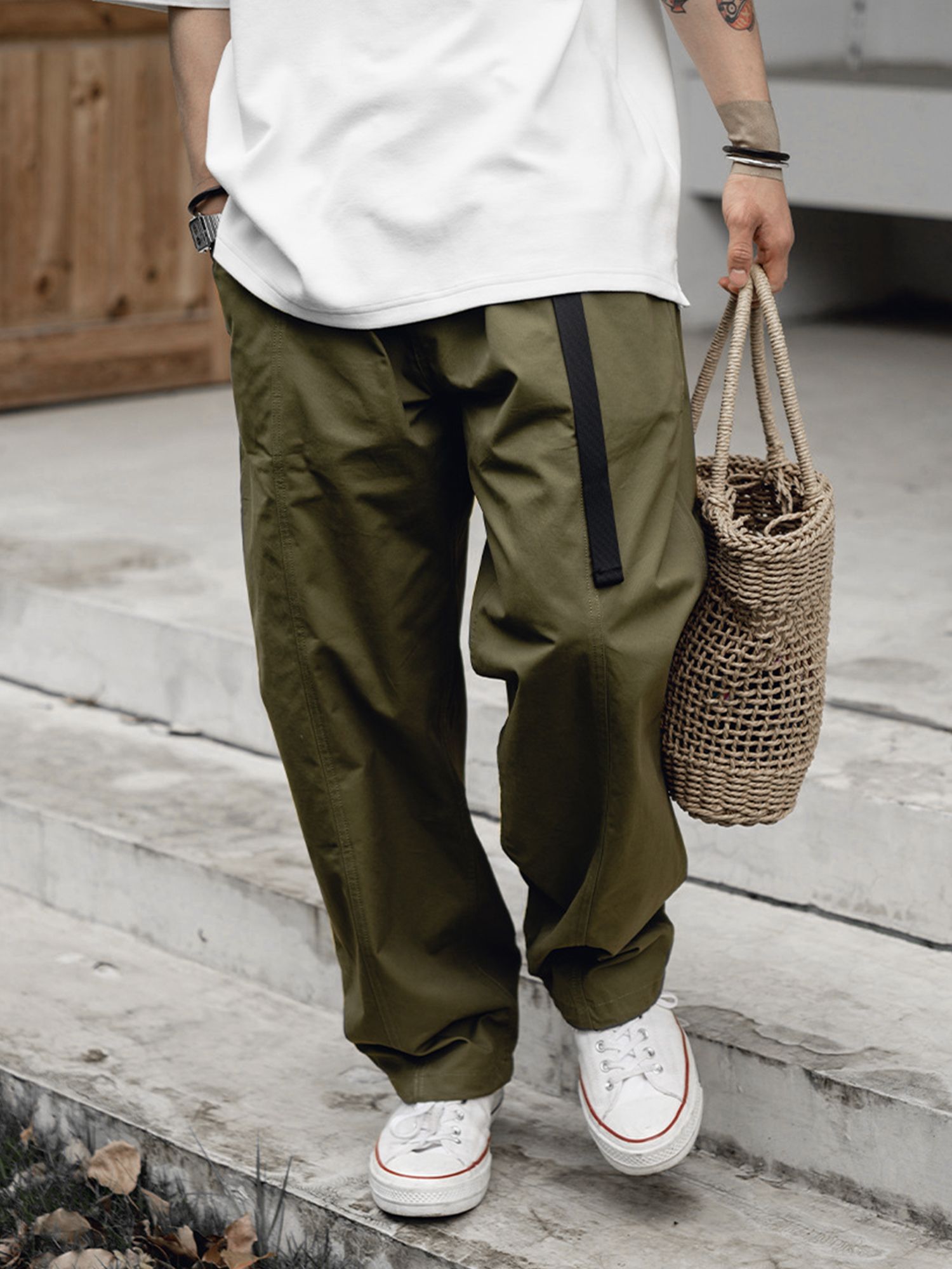 - 허리부터 밑단까지 루즈하게 떨어지는 핏으로 제작하여 여유있는 무드를 느낄 수 있음