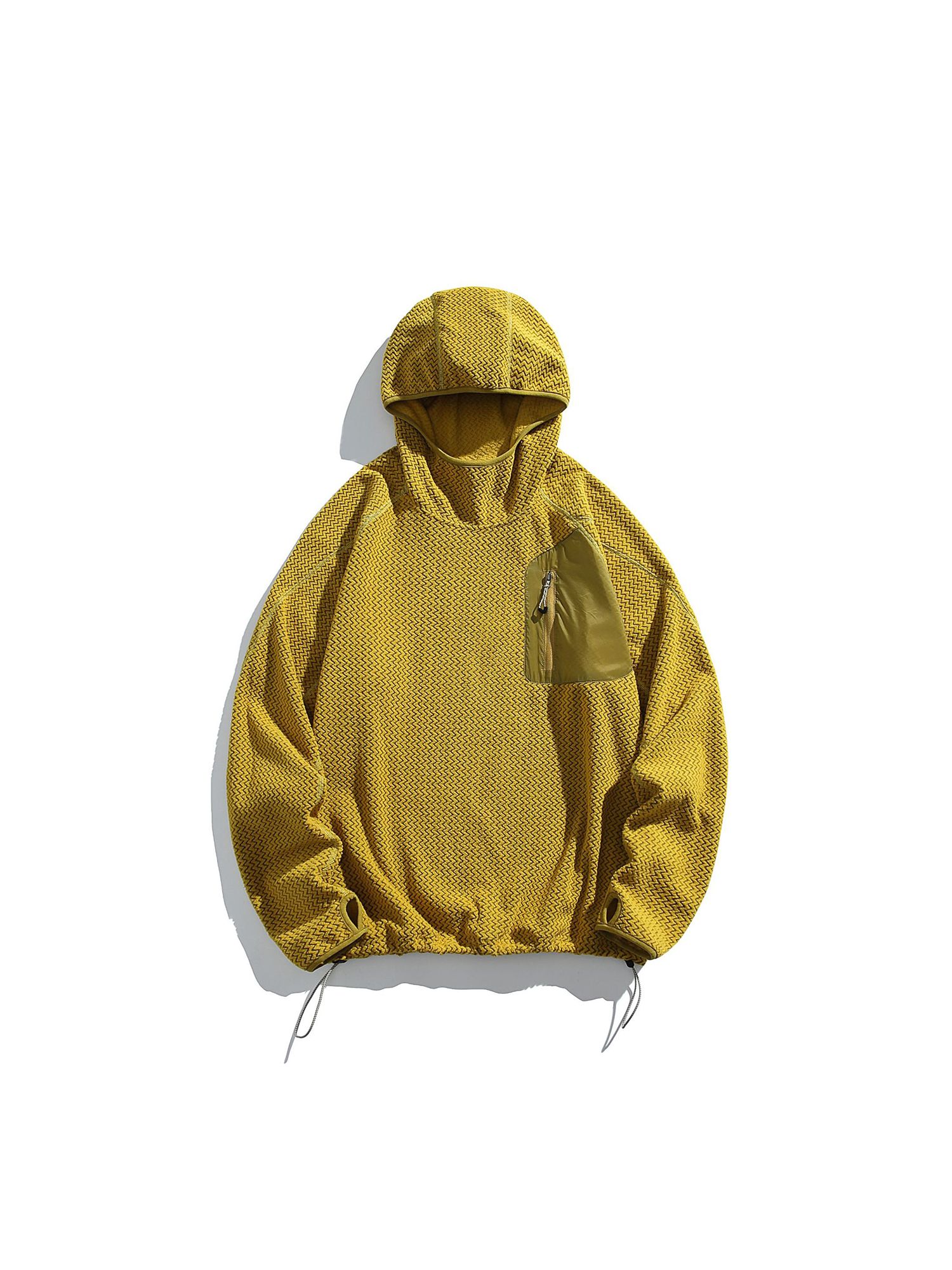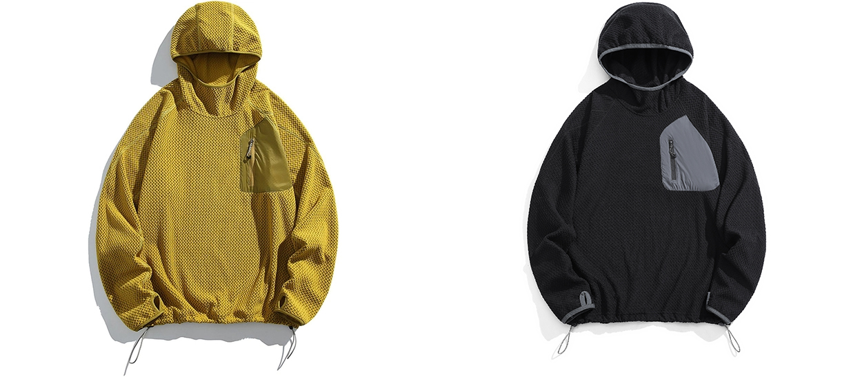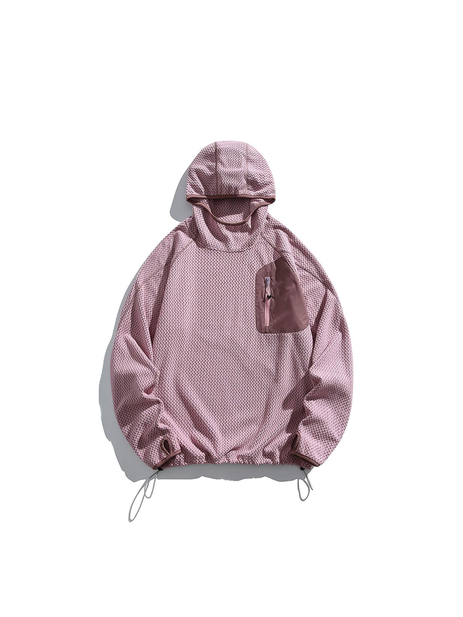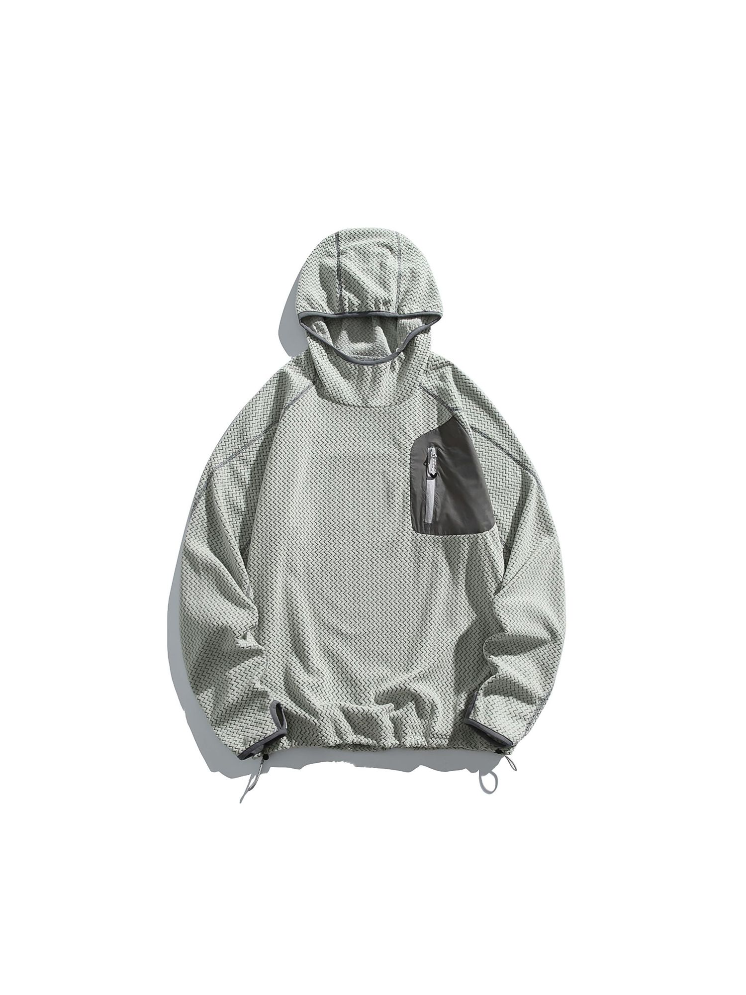 기능성 보온 원단으로 제작된 후드 하이넥 티셔츠로, 가볍지만 따뜻하게 체온을 유지해주는 아웃도어 웨어입니다.