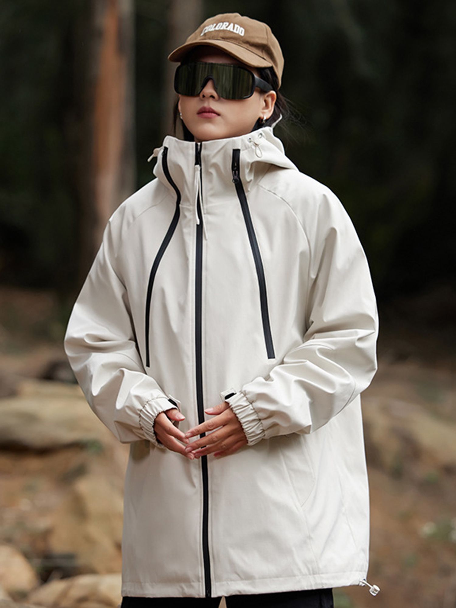 유니크한 배색 디자인이 트렌디한 워터프루프 포켓 자켓입니다.
