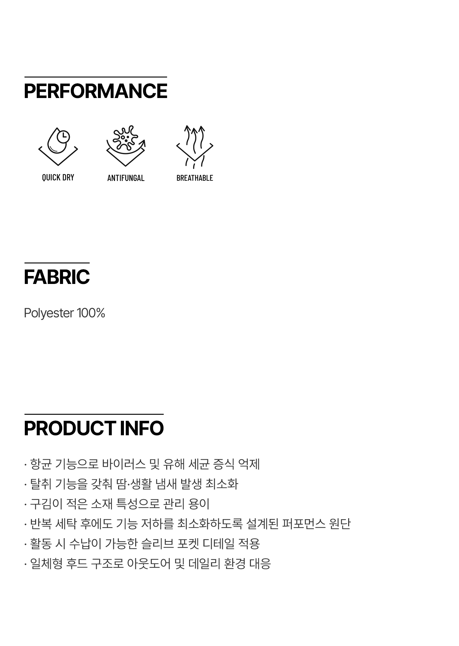 사이즈(cm) | 총장 | 가슴 | 밑단 | 소매 길이 | 소매단 | 모자 길이 |
