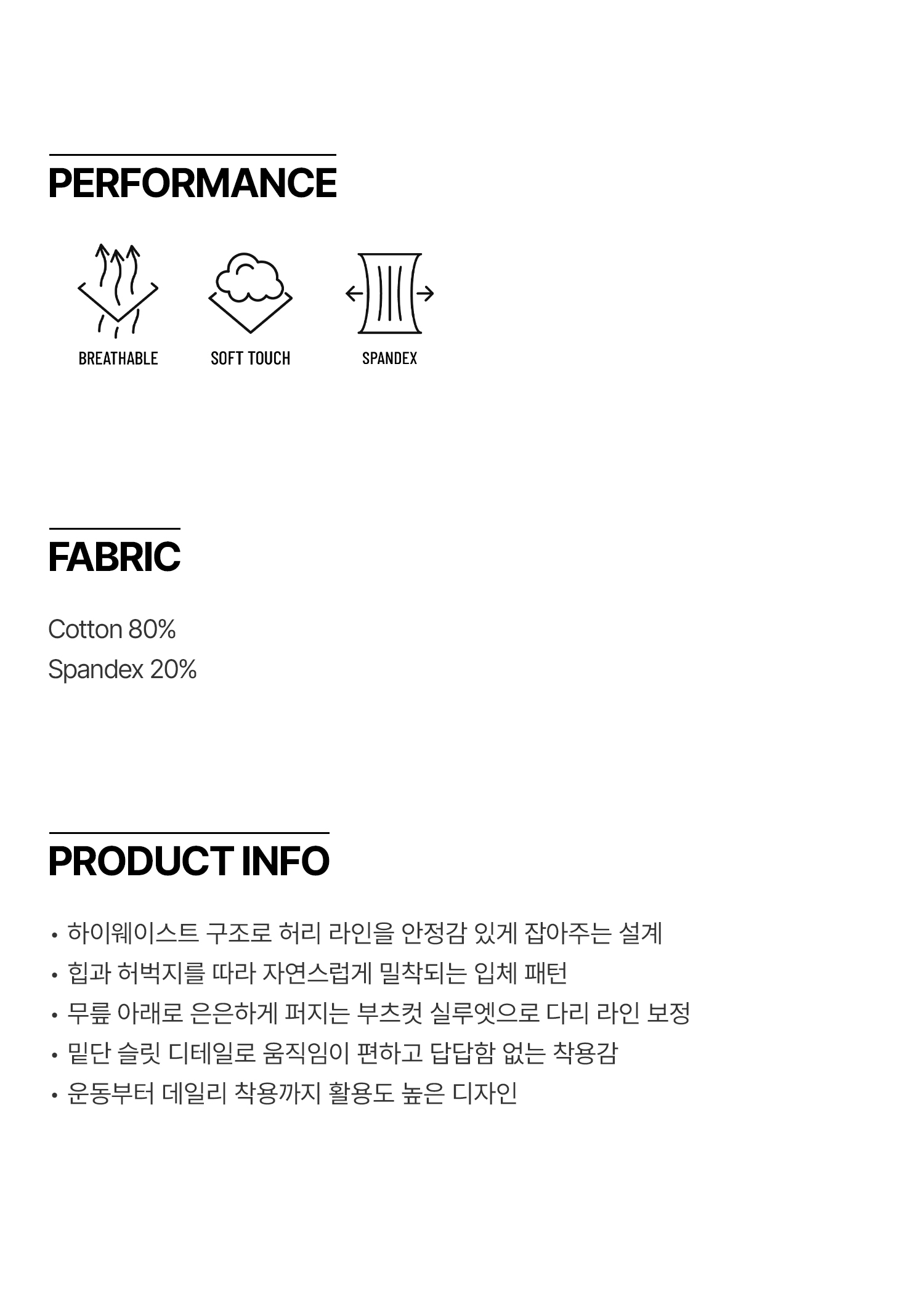 | 사이즈(cm) | 총장 | 허리 | 엉덩이 | 허벅지 |