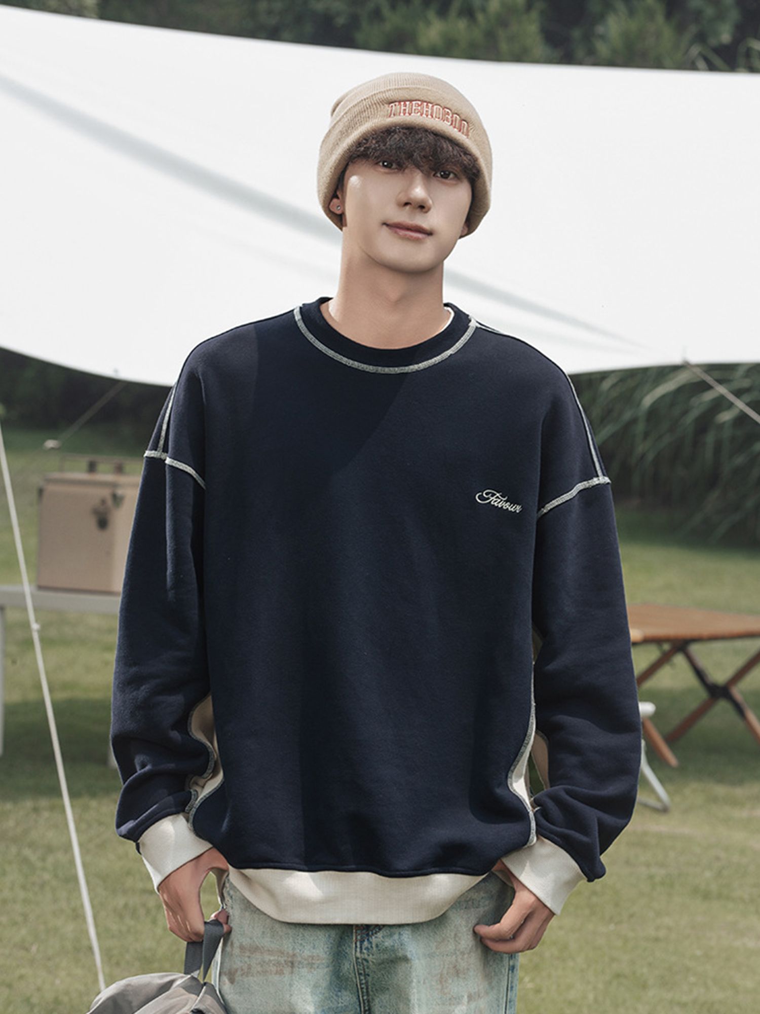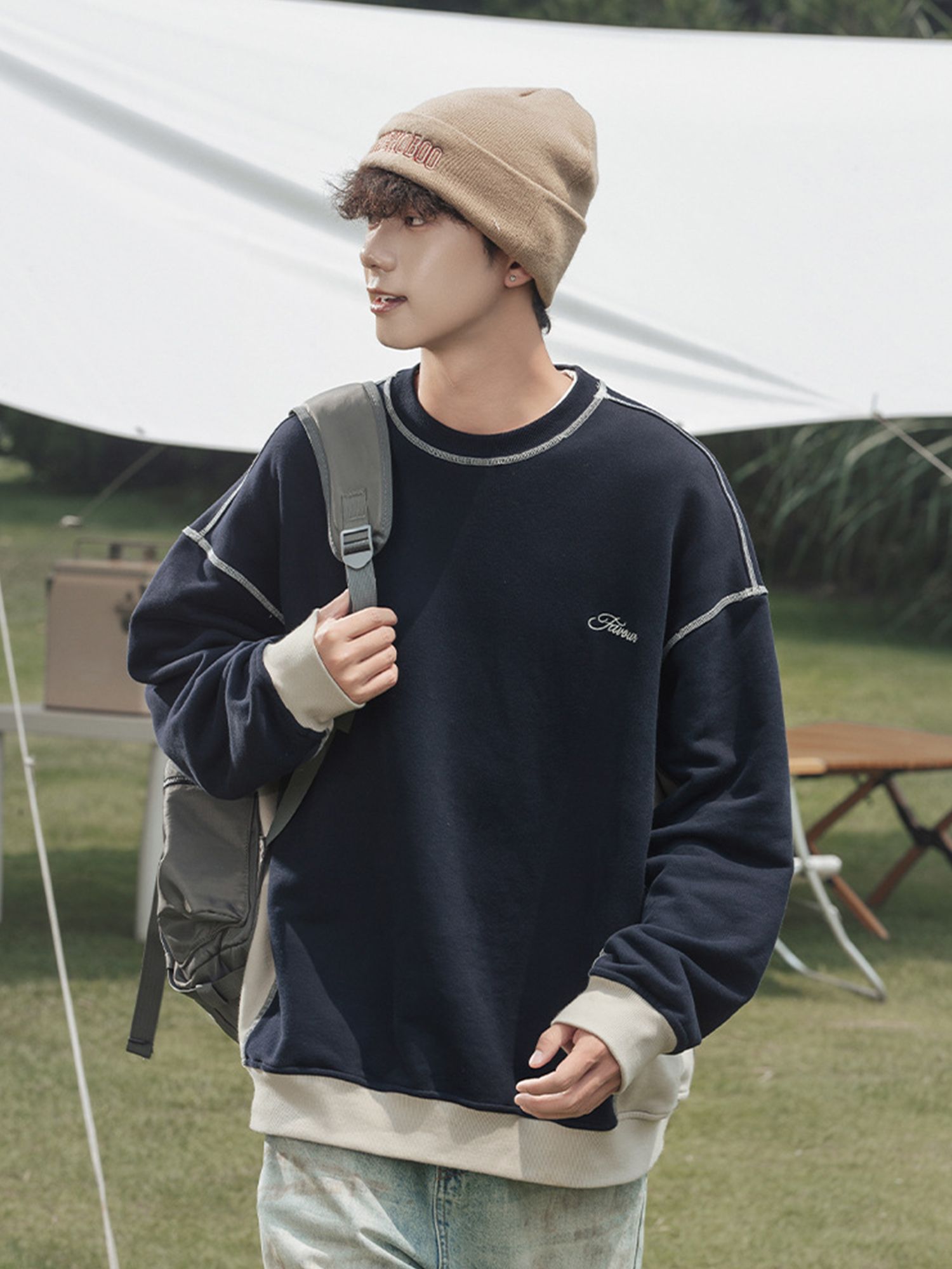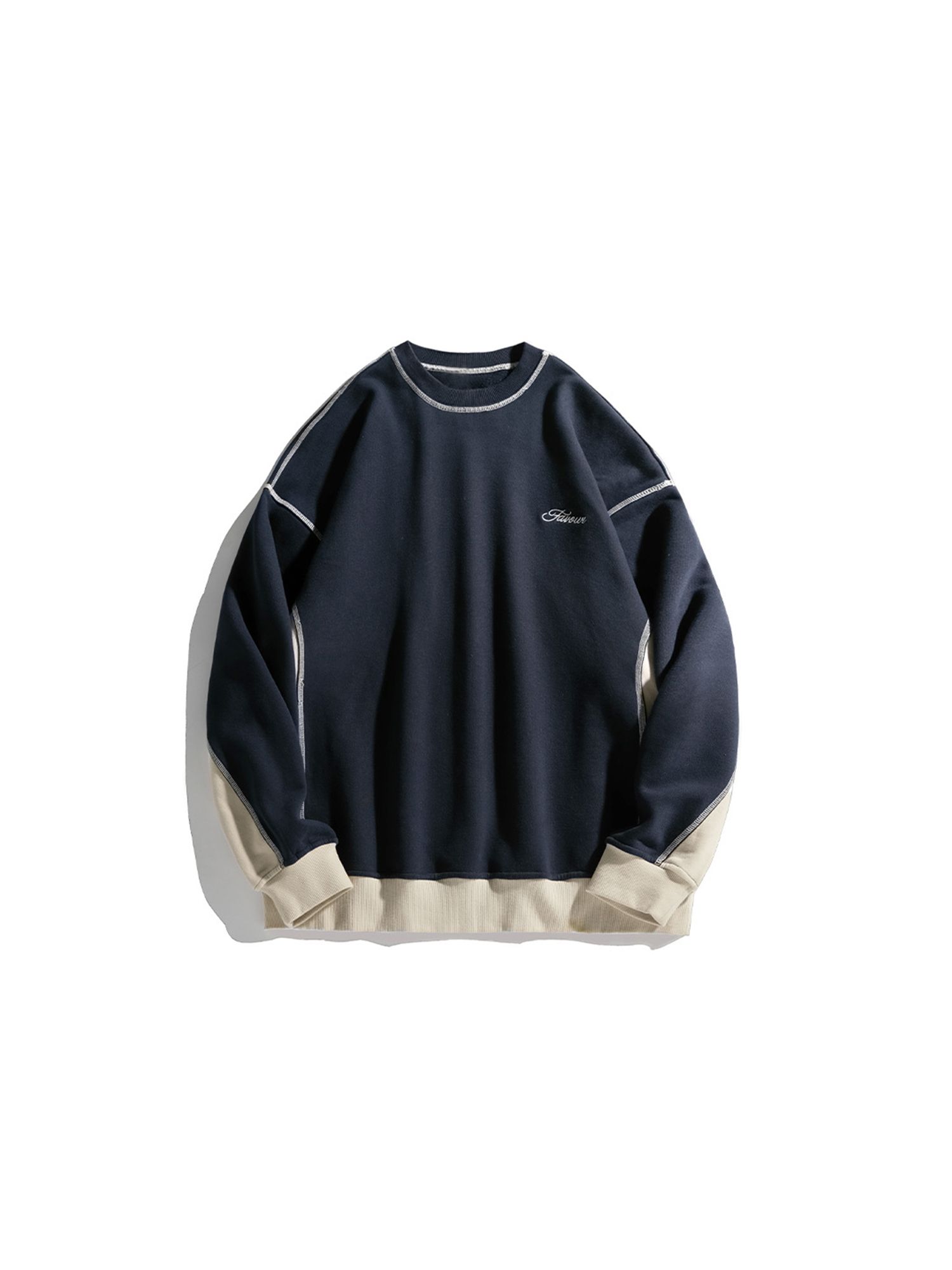 데일리로 활용하기 좋은 배색 포인트 투 컬러 라운드 넥 롱 슬리브 티셔츠입니다.