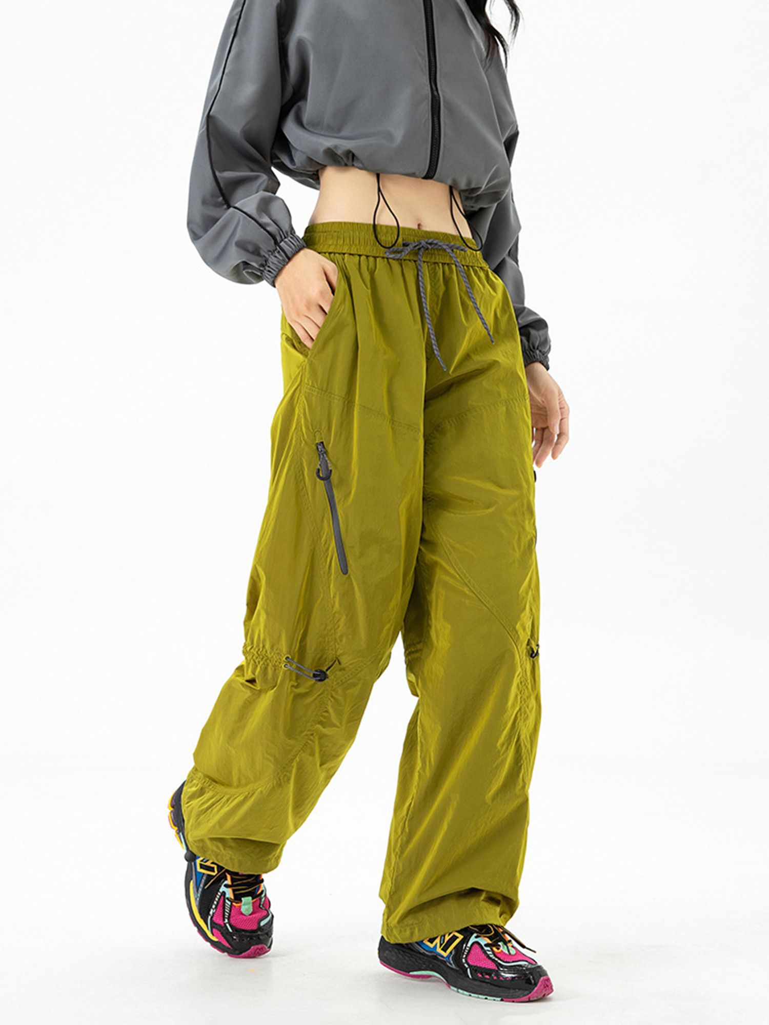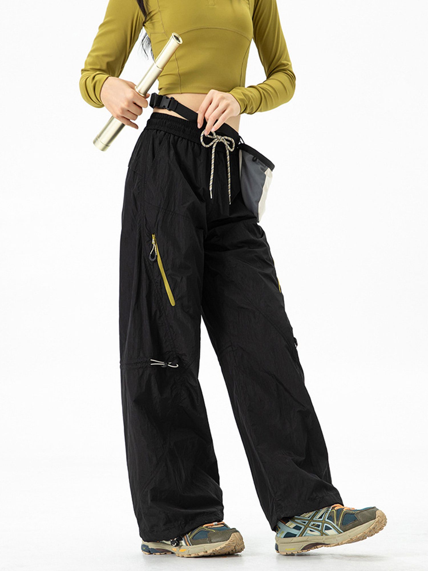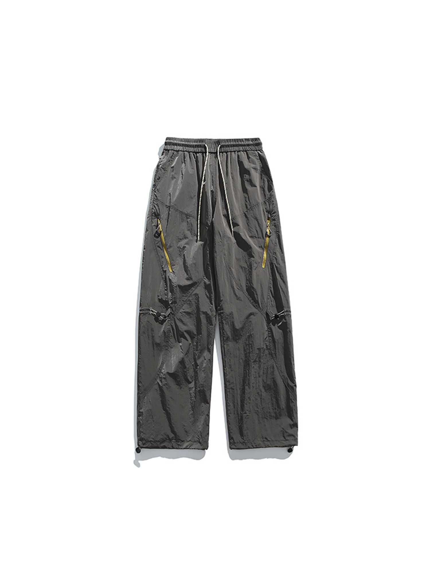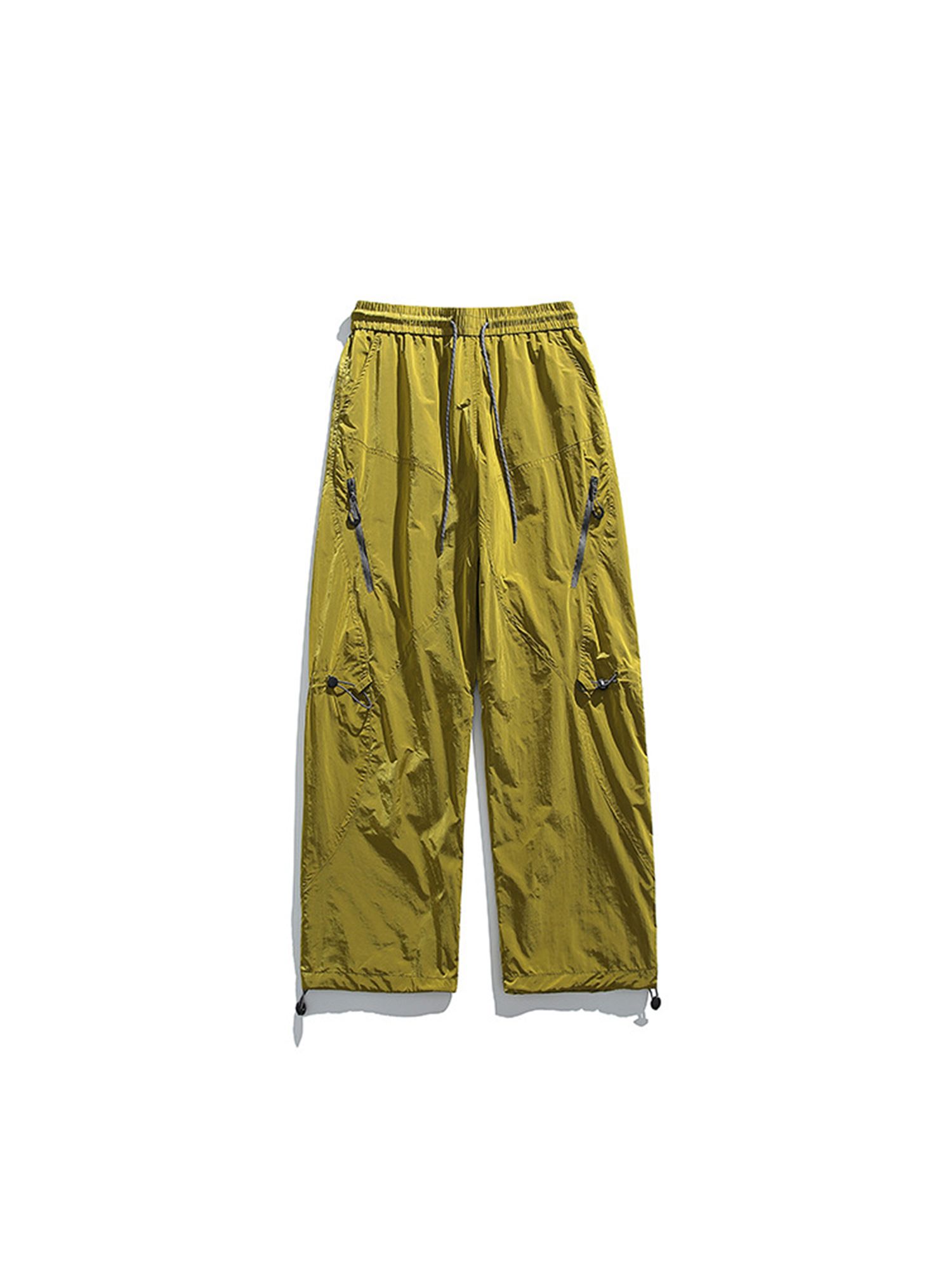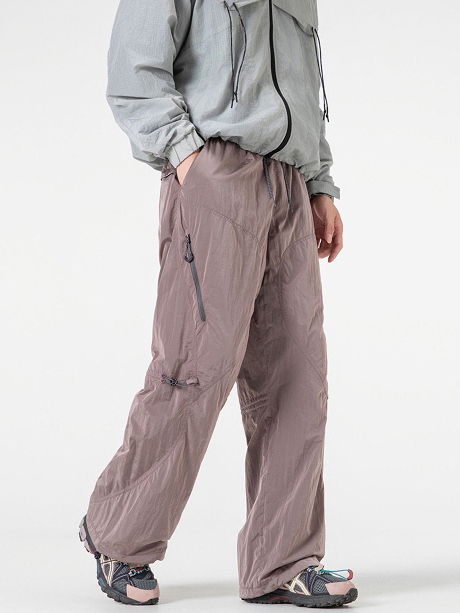 가볍고 내구성 있는 방수 나일론 원단으로 제작된 드로스트링 밴딩 아웃도어 팬츠입니다.