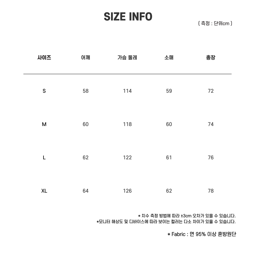- 오버한 핏으로 디자인하여 편안한 착용감과 여유있는 무드를 보여줌