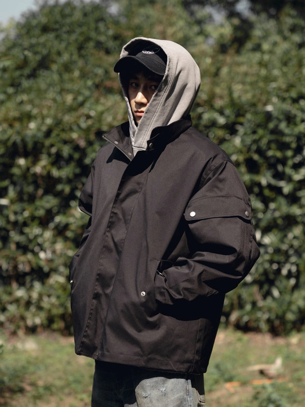 오버핏 디자인으로 여유있는 실루엣을 보여주고 가슴에 포켓을 달아