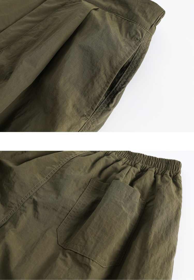 - 밑단 부분에 스트링을 넣어 원하는 모습으로 연출 가능합니다.