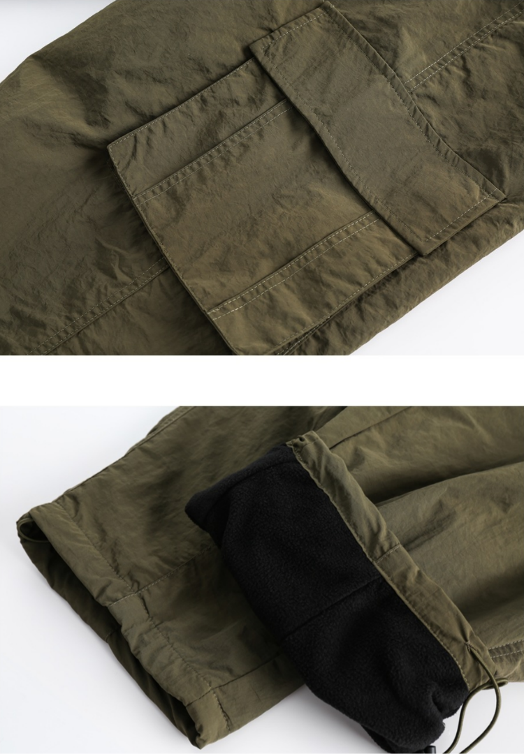 플리스 안감을 사용하여 가을 /겨울철에도 착용 가능한 와이드 카고 팬츠입니다.