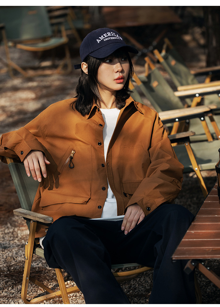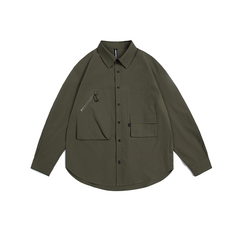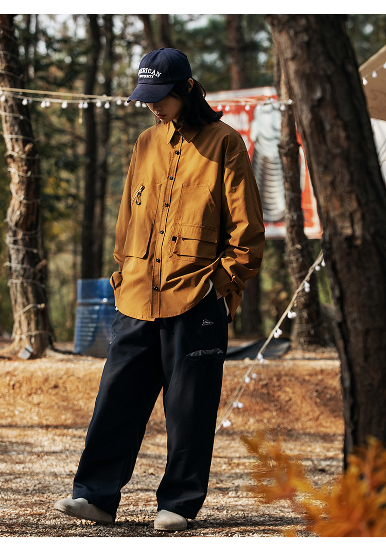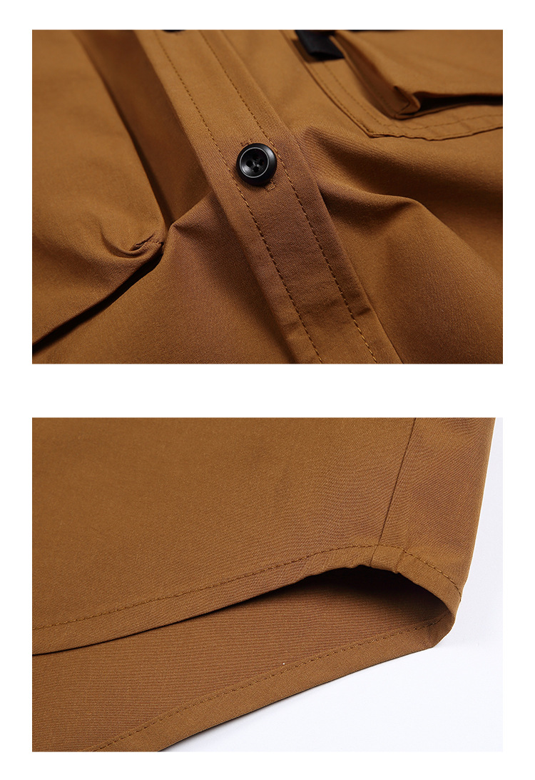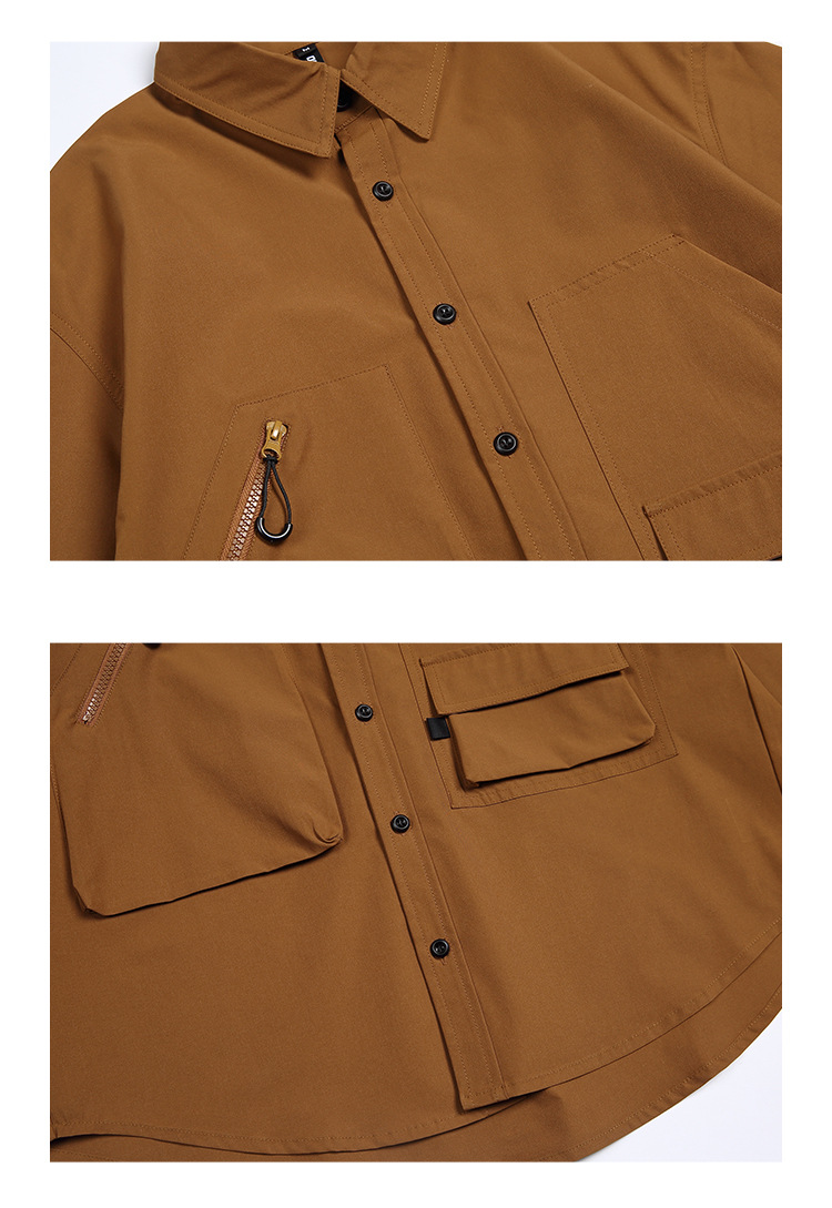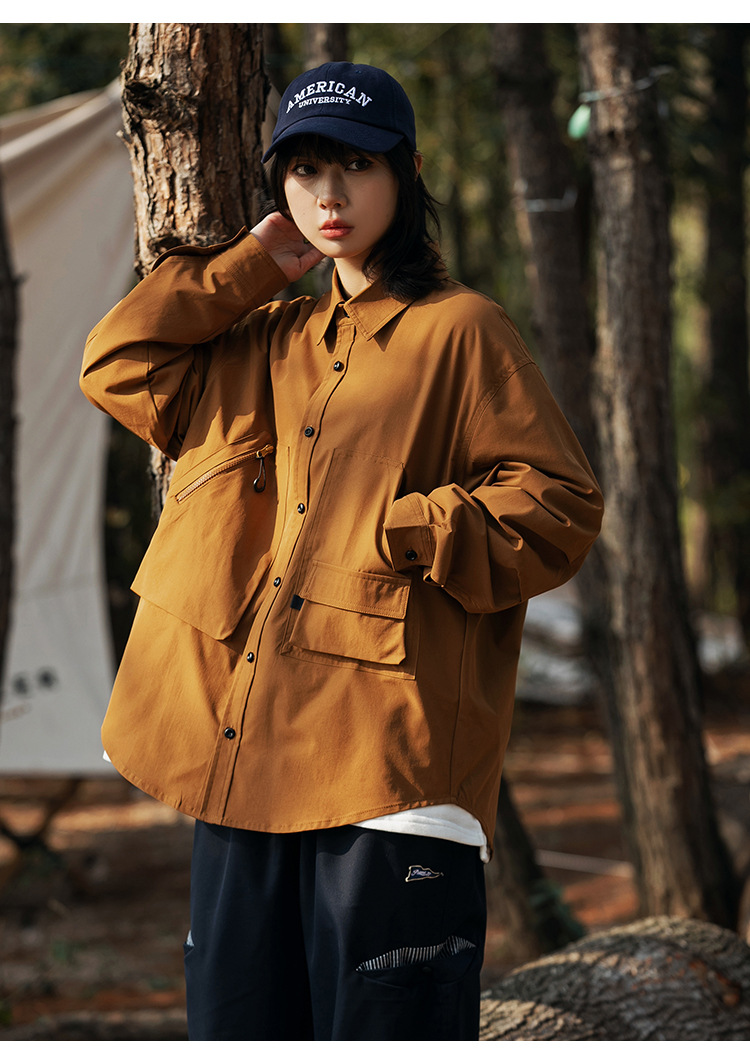 여러 모양의 포켓 디자인으로 포인트를 준 남녀 공용 멀티 포켓 아웃도어 셔츠입니다.