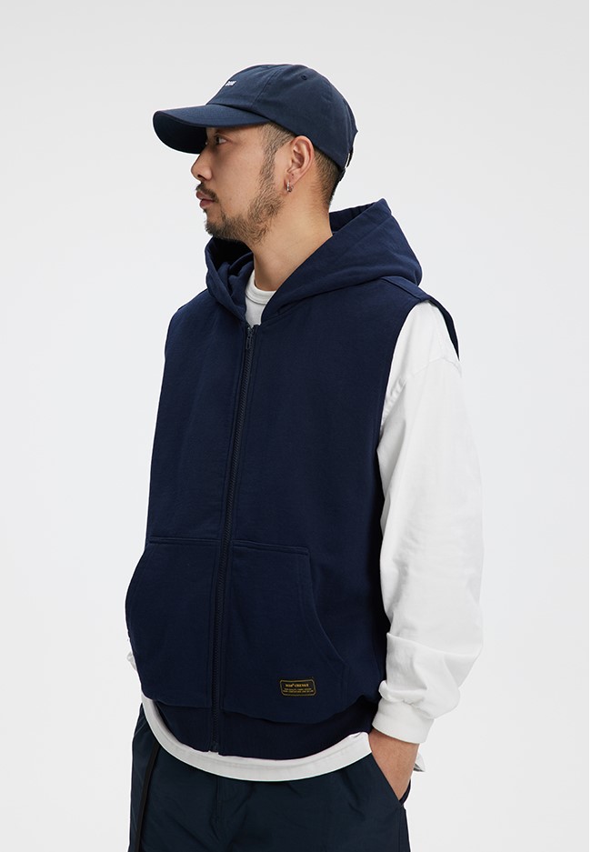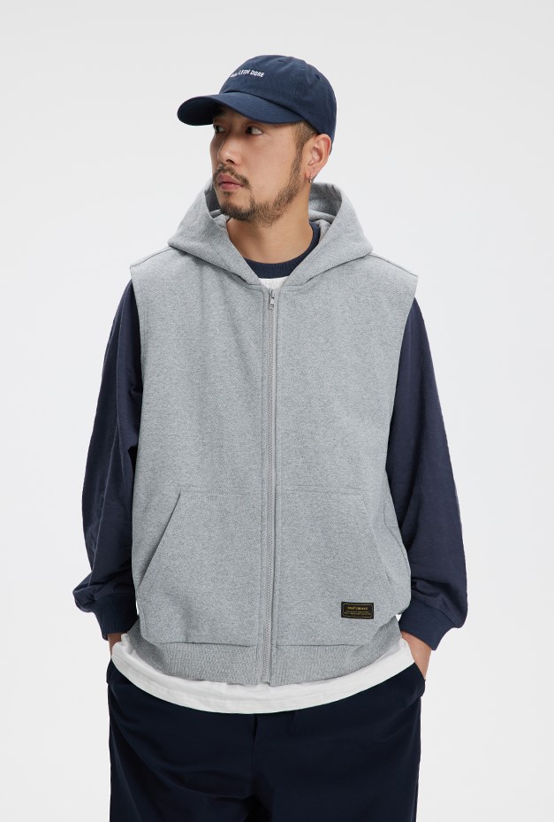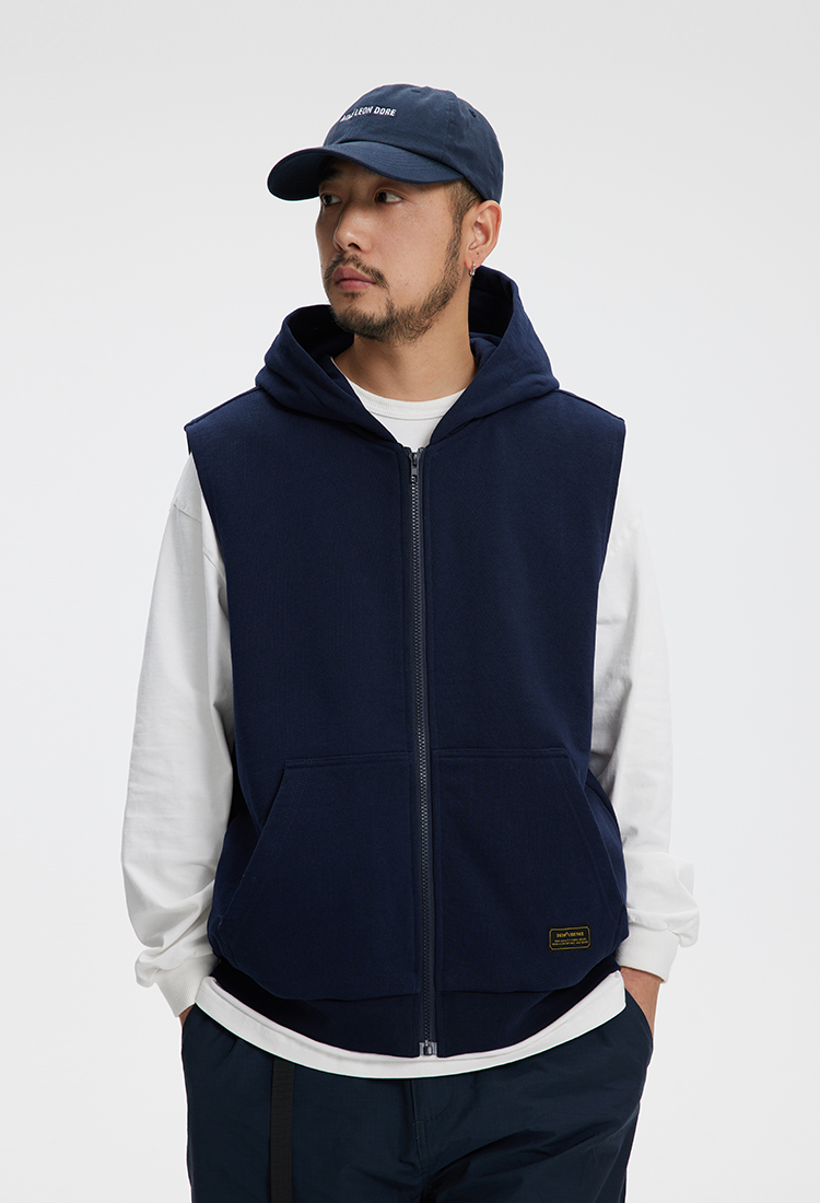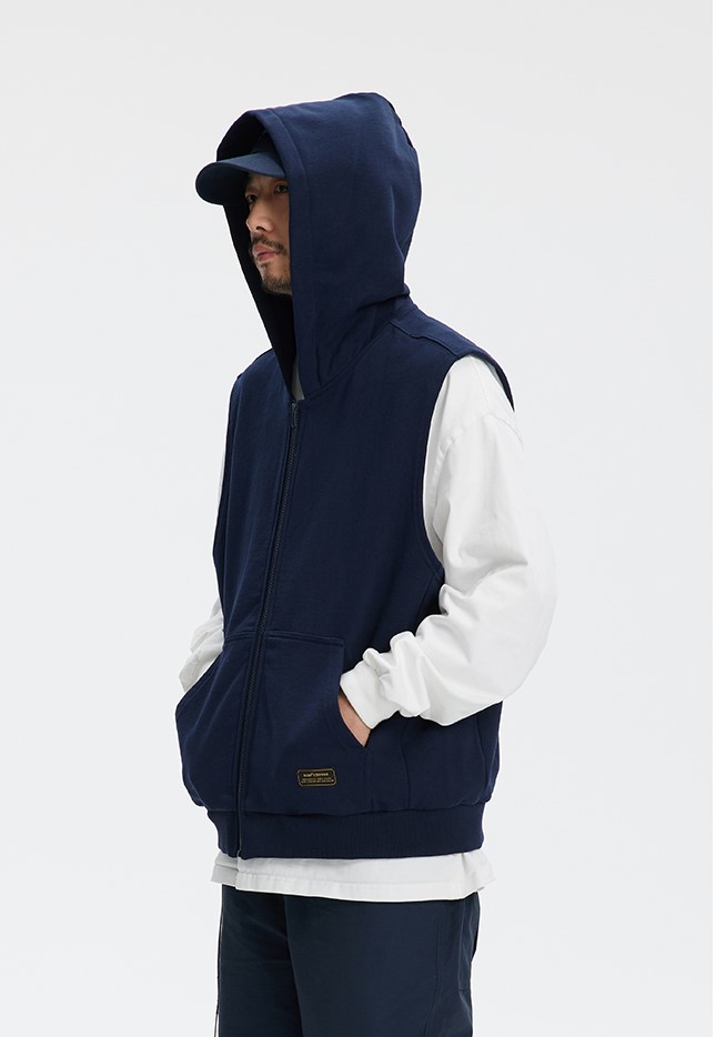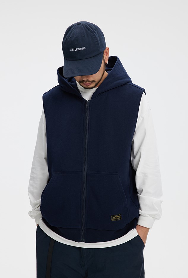 클래식한 디자인의 후드 조끼 제품입니다.