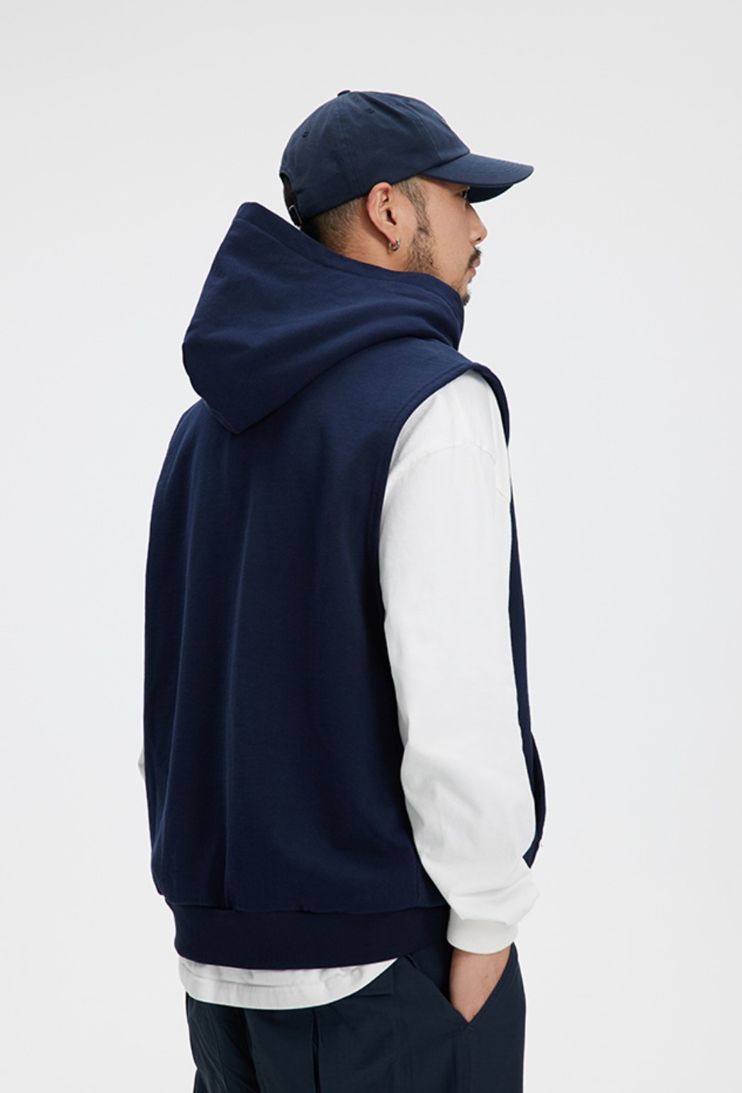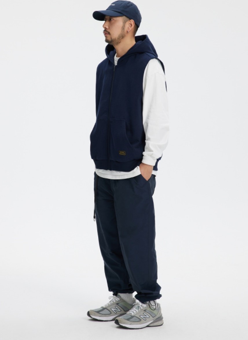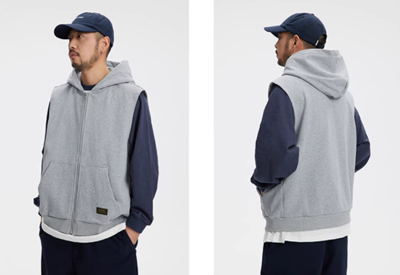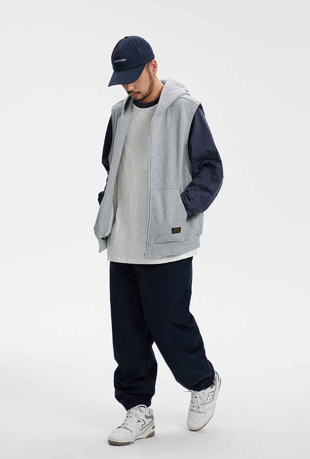 클래식한 디자인의 후드 조끼 제품입니다.