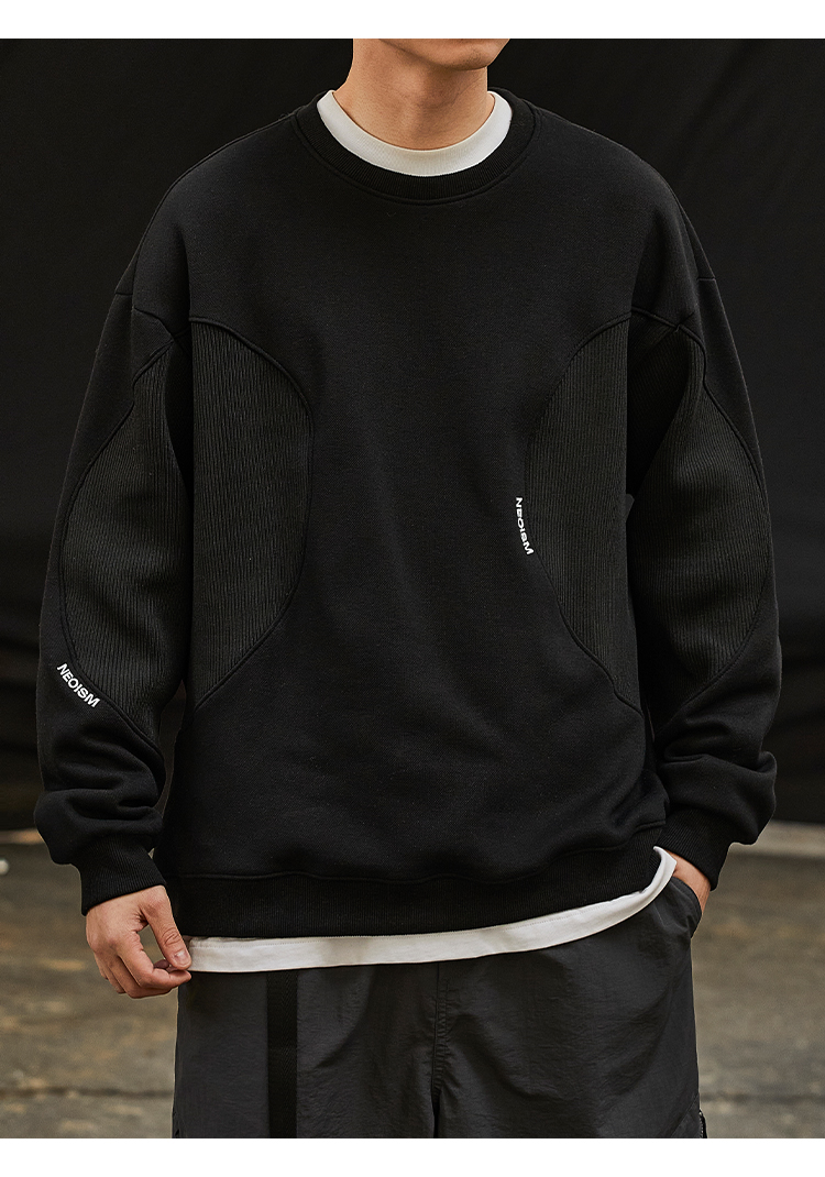 텍스쳐가 다른 원단으로 사용하여 제작한 스웻셔츠입니다.