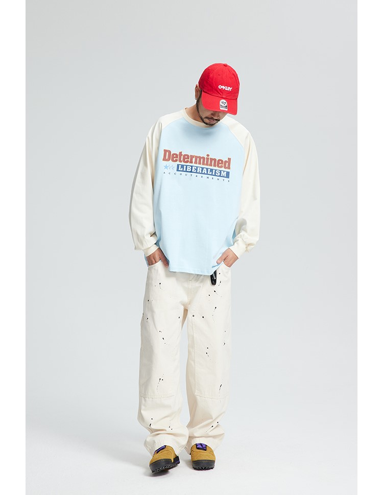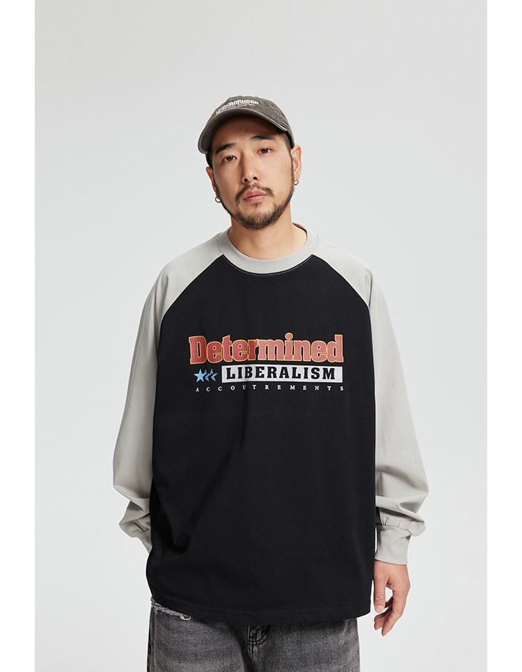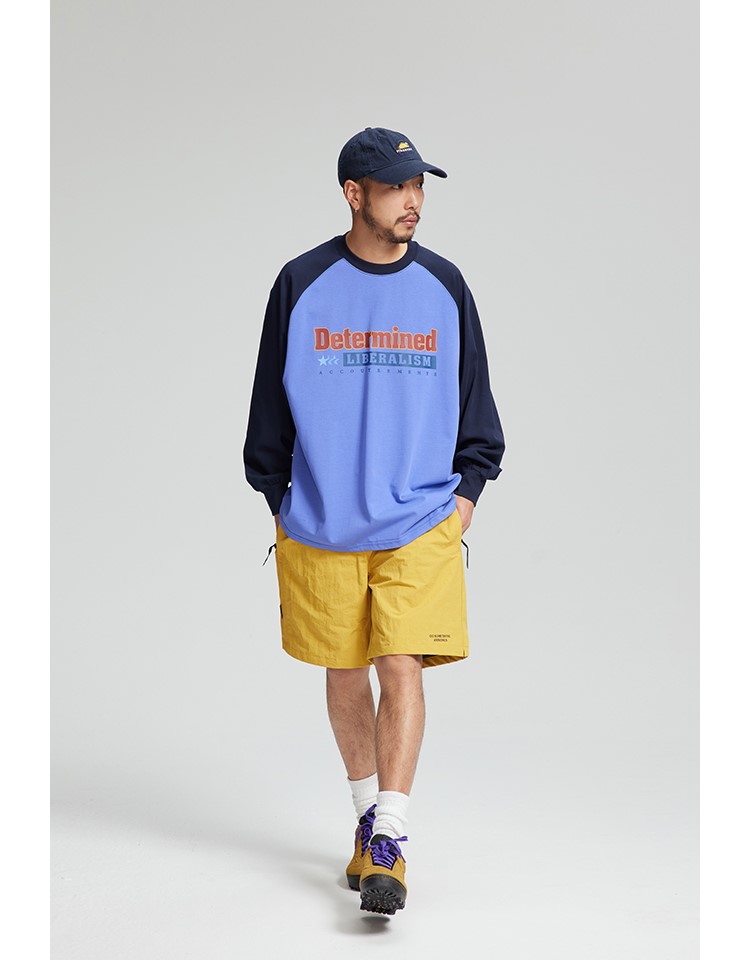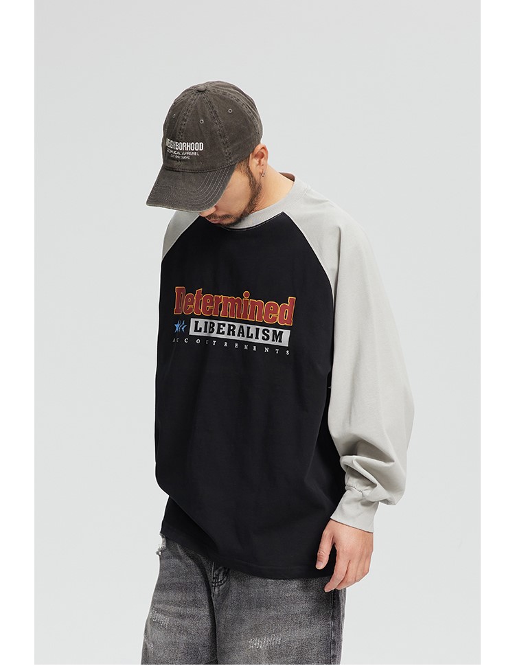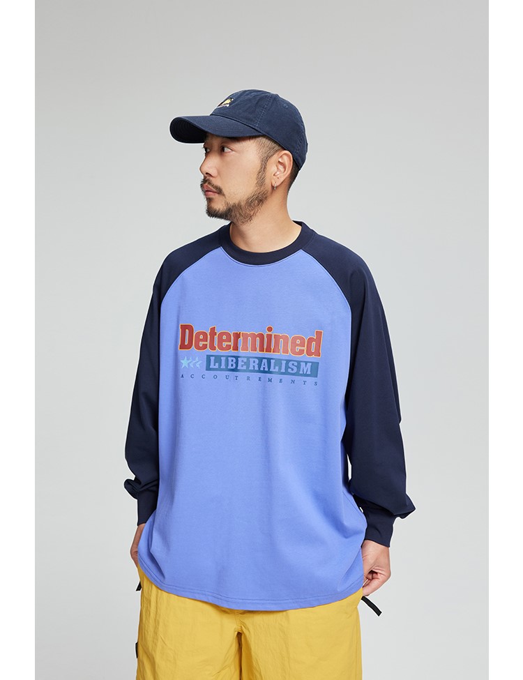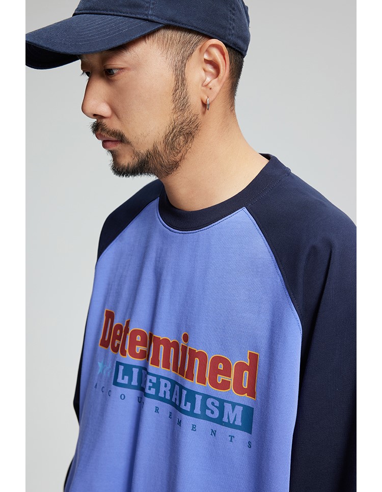 느낄 수 있는 레글런 디자인의 티셔츠입니다.