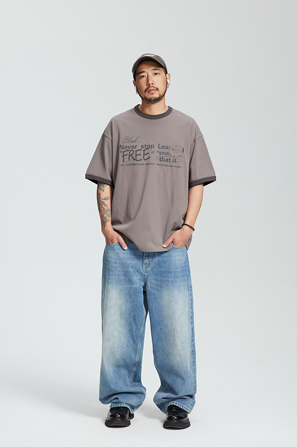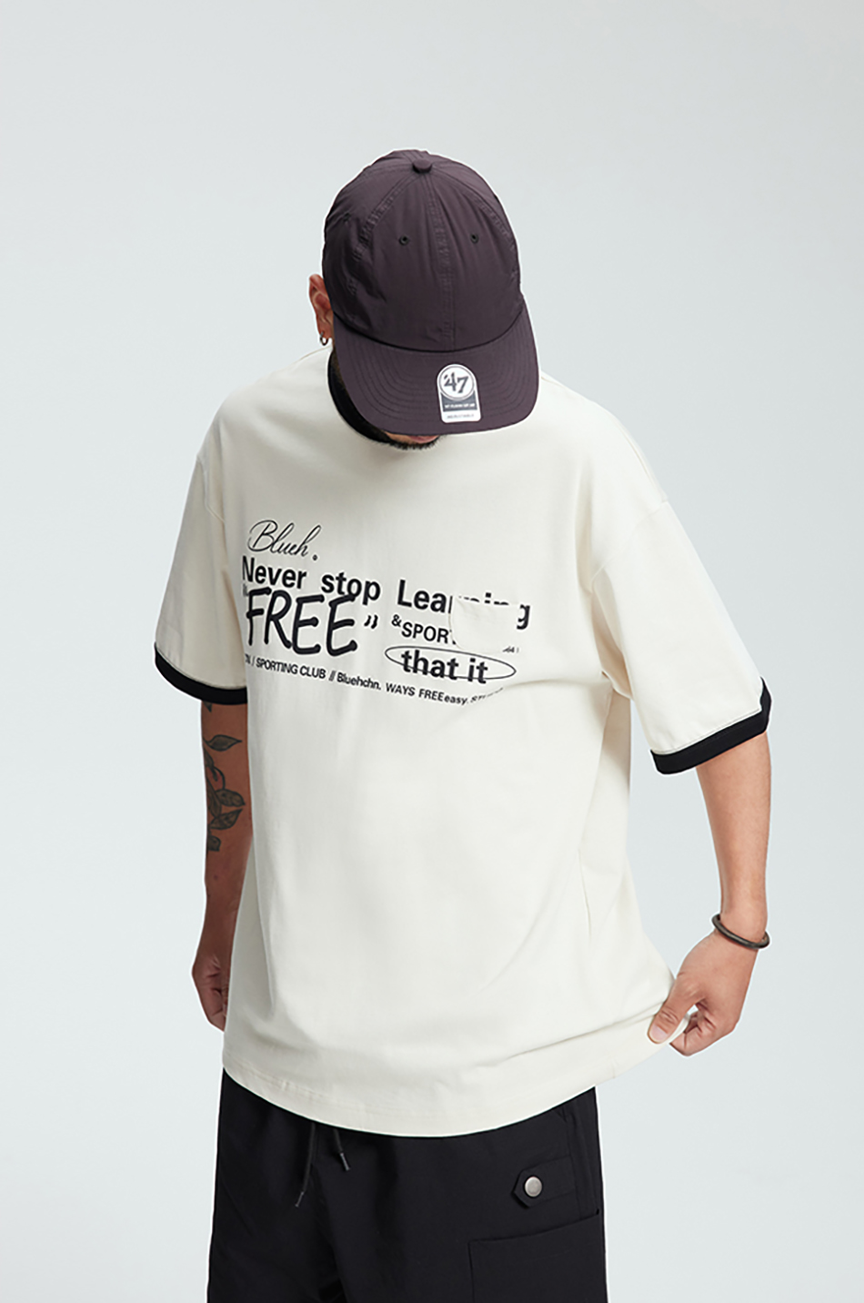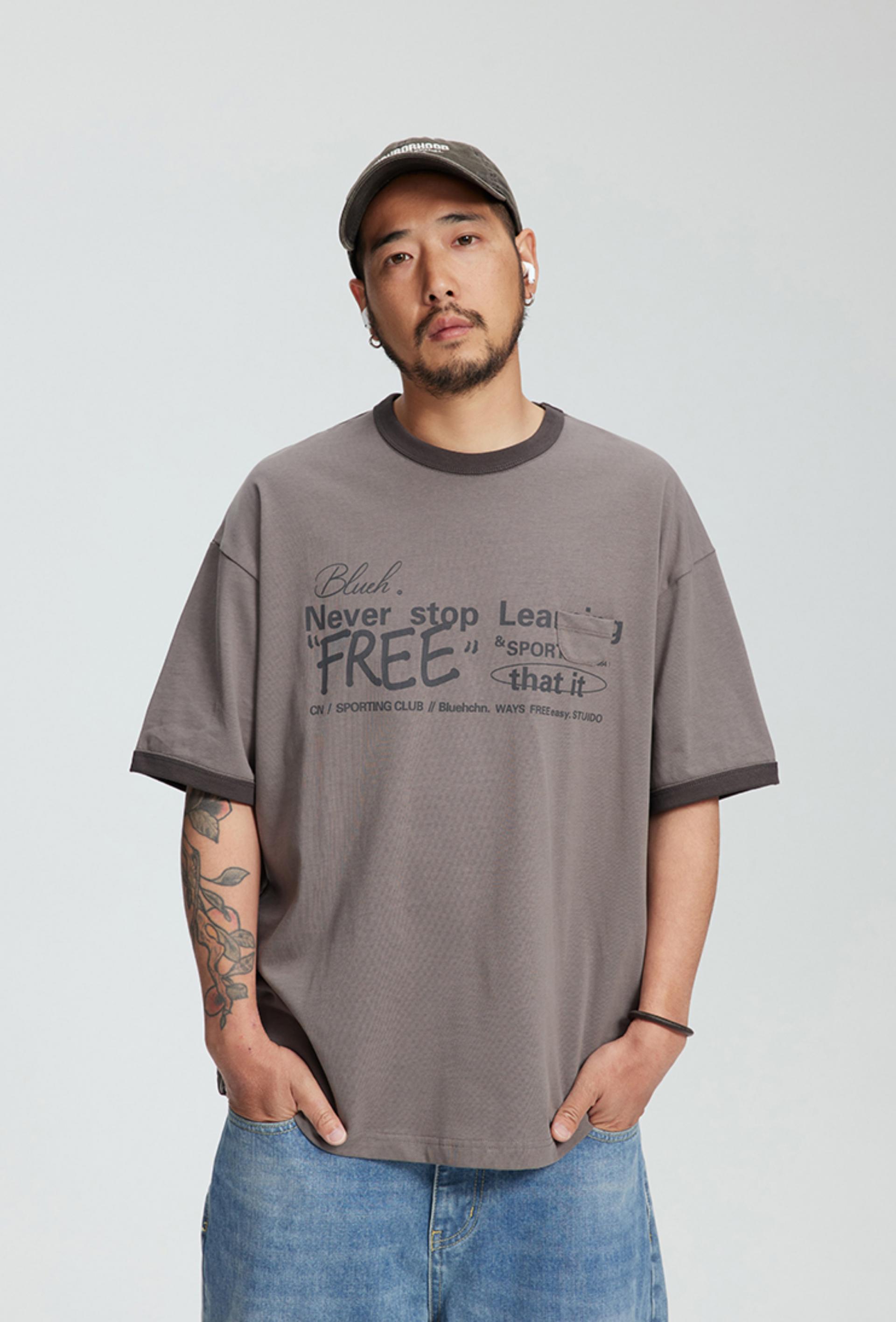다양한 폰트와 레이아웃이 특색있는 핏감이 살아있는 루즈핏의 티셔츠입니다.