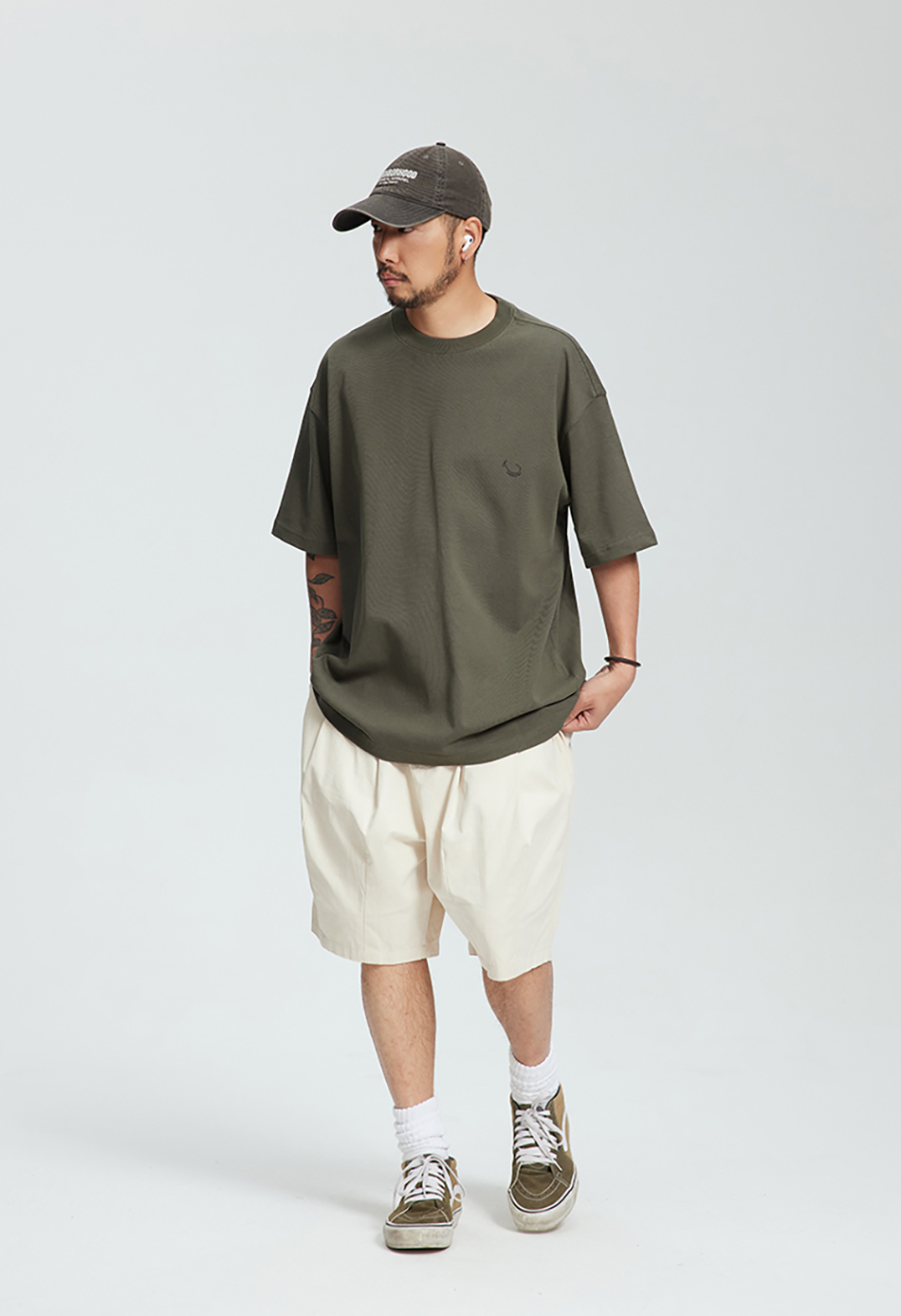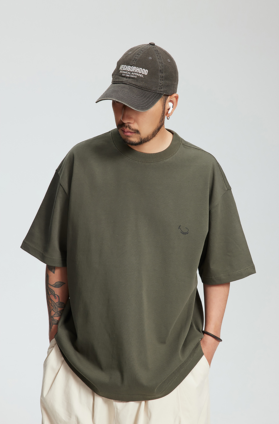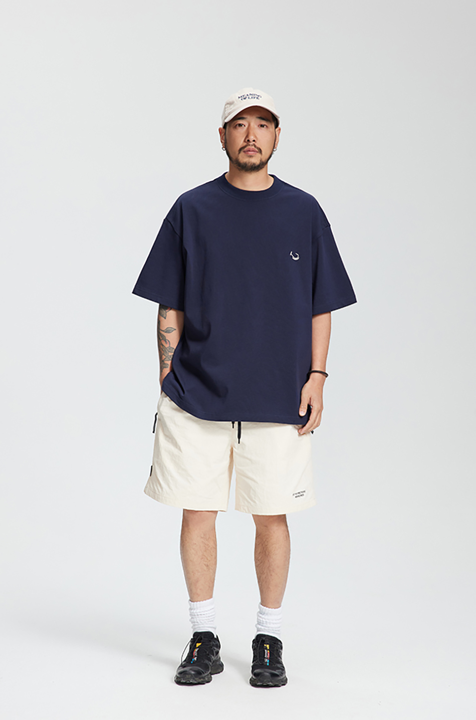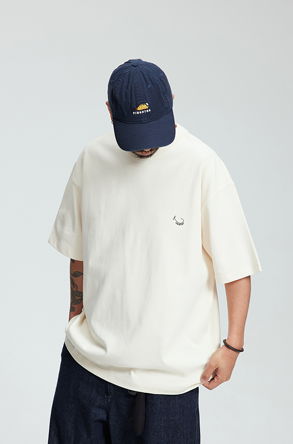 등판에 낚싯바늘과 낚싯줄의 다양한 모양으로 프린트가 포인트인 루즈핏의 티셔츠입니다.