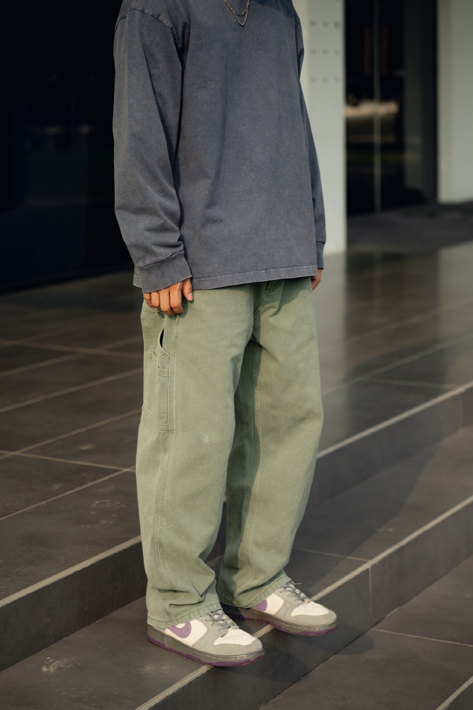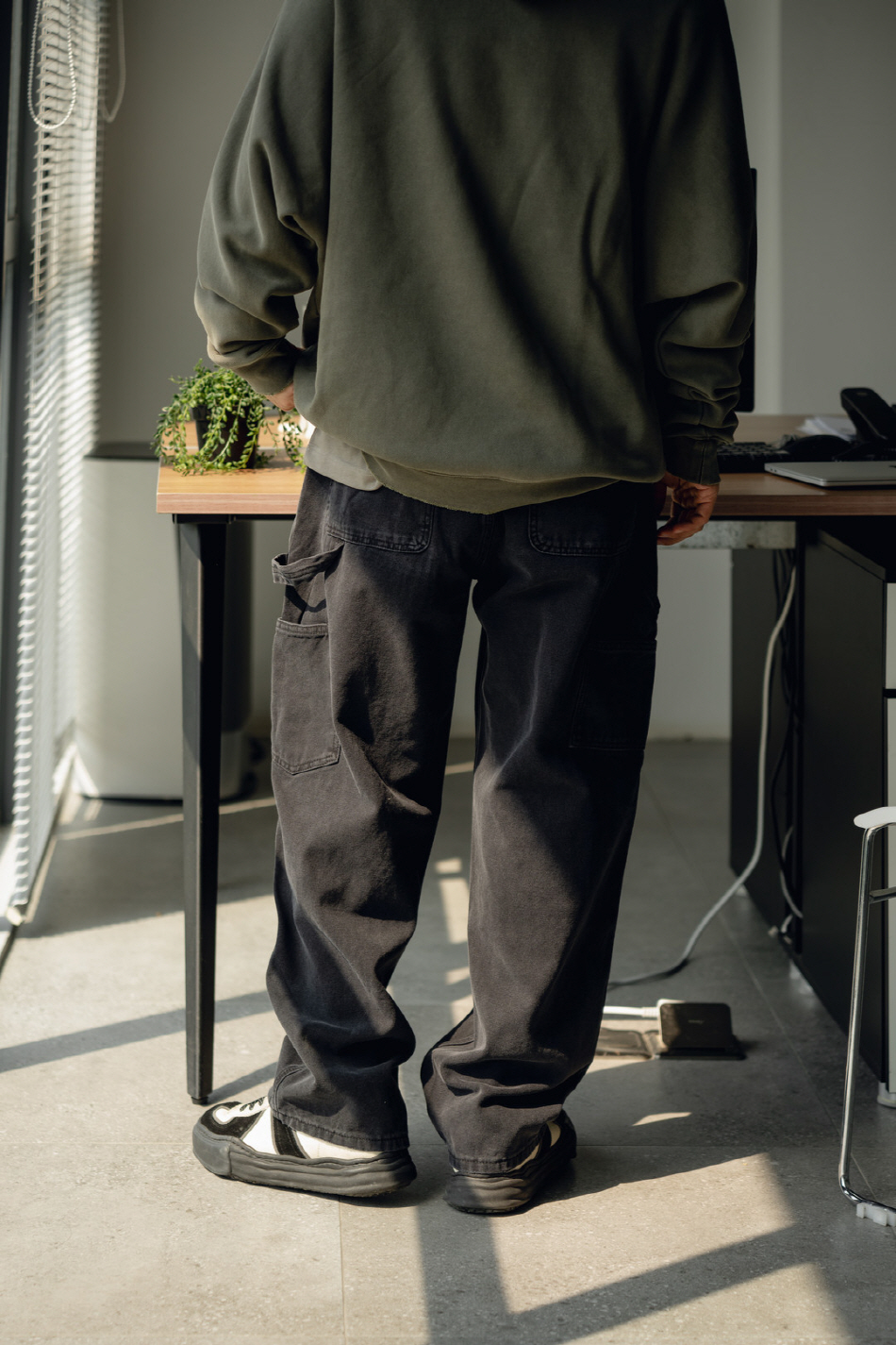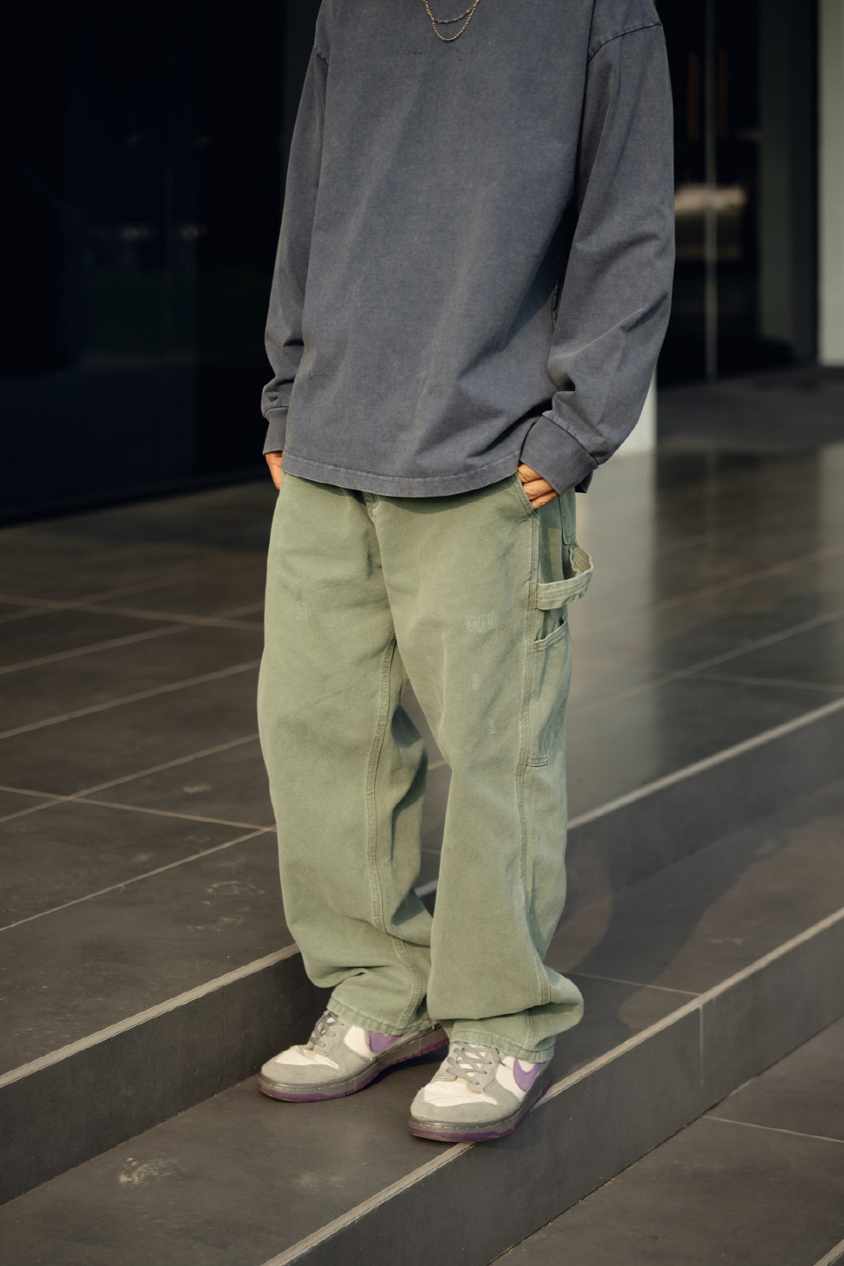 특유의 거친 느낌을 보여주는 빈티지한 워싱 팬츠입니다.