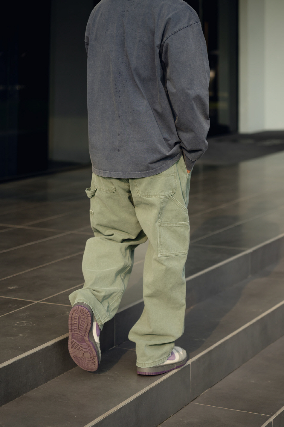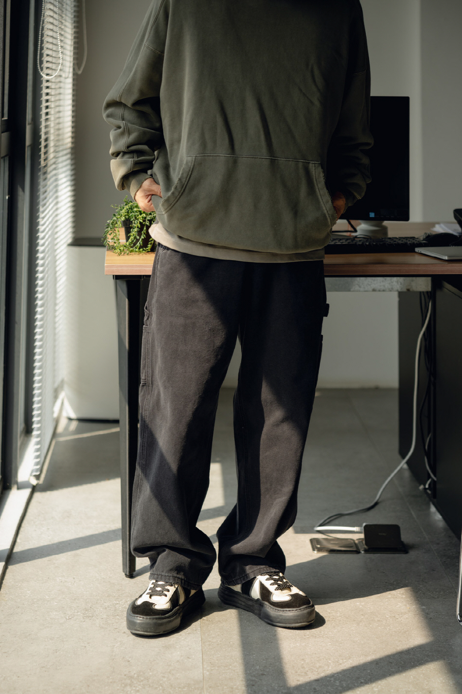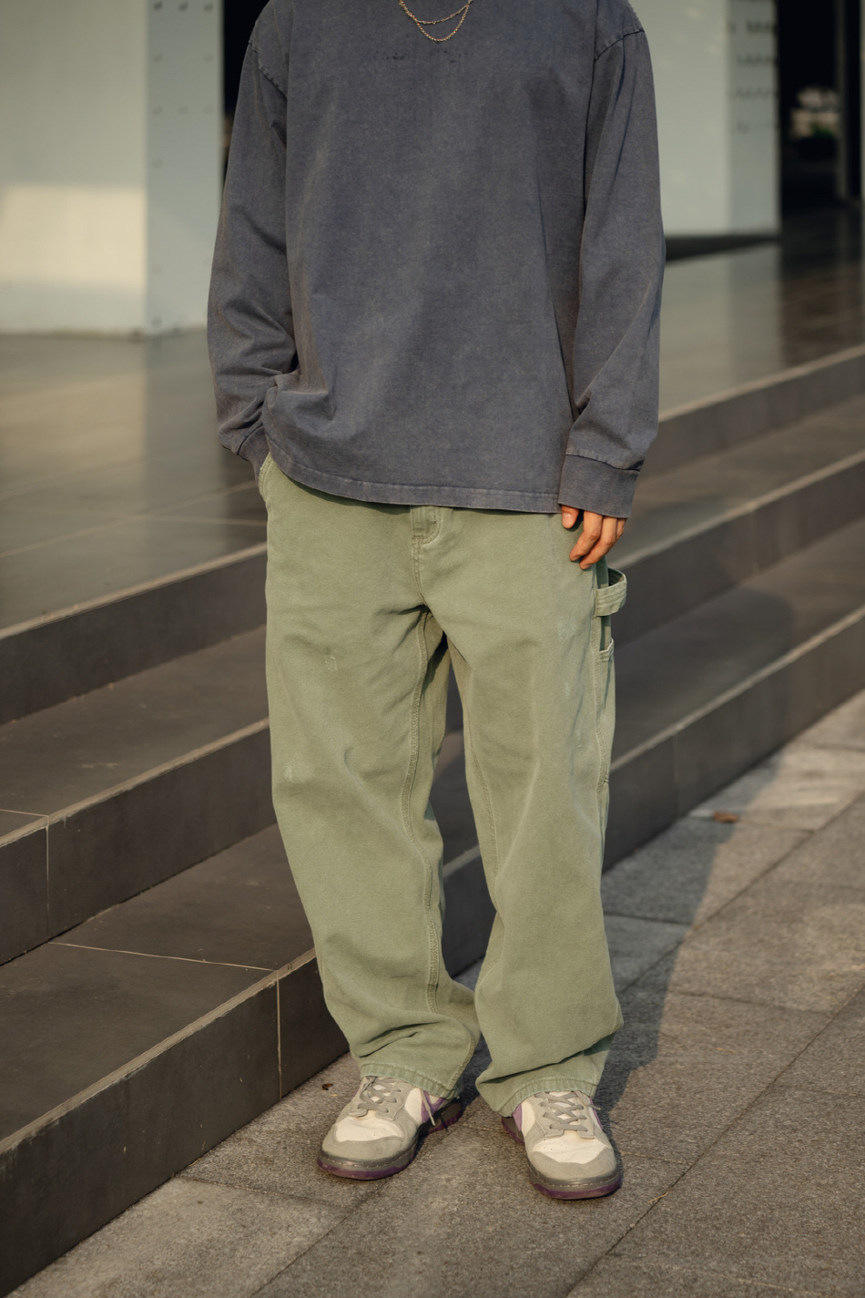 특유의 거친 느낌을 보여주는 빈티지한 워싱 팬츠입니다.