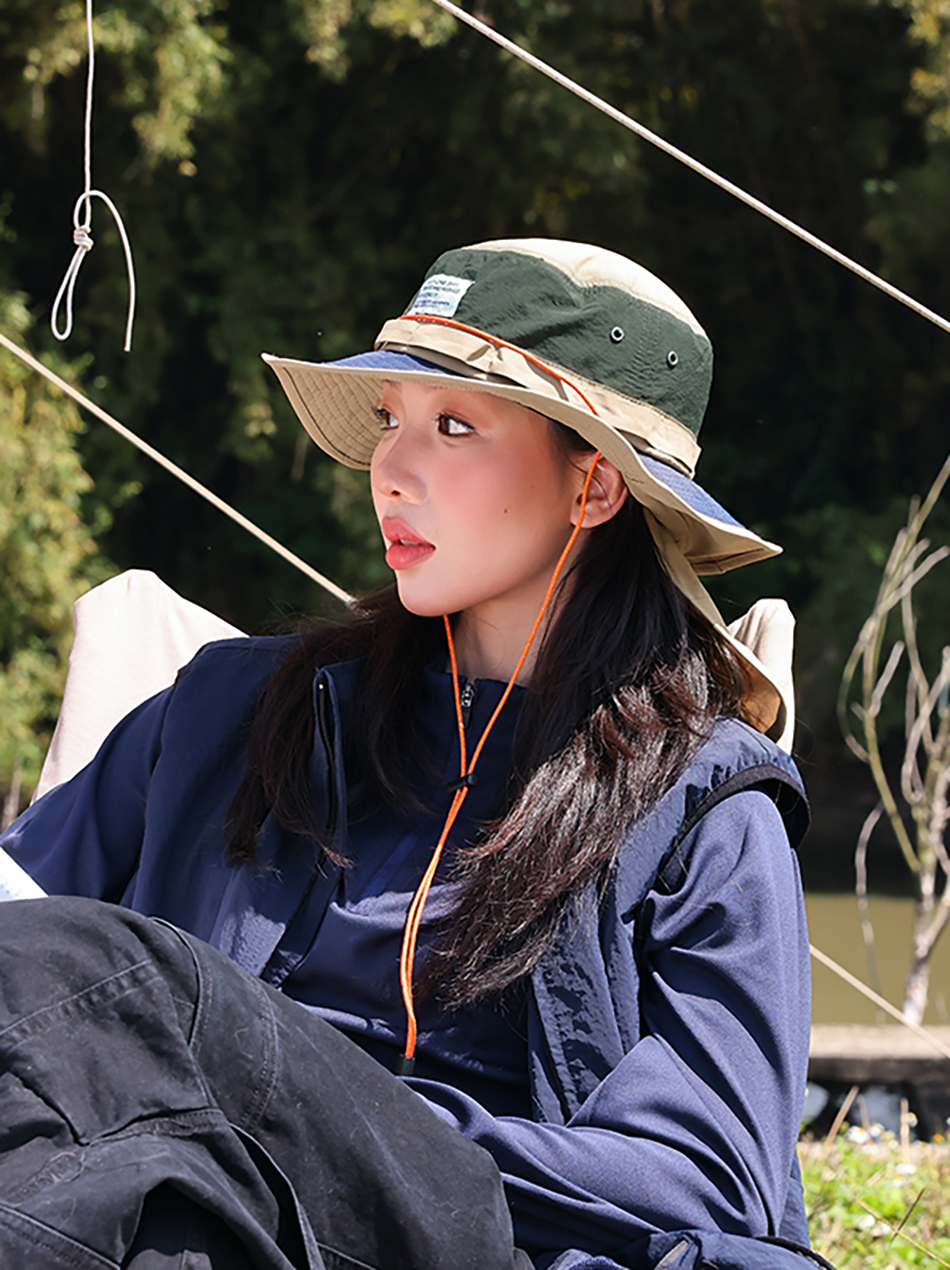 야외 활동에서 착용하기 좋은 피셔맨 버킷햇입니다!