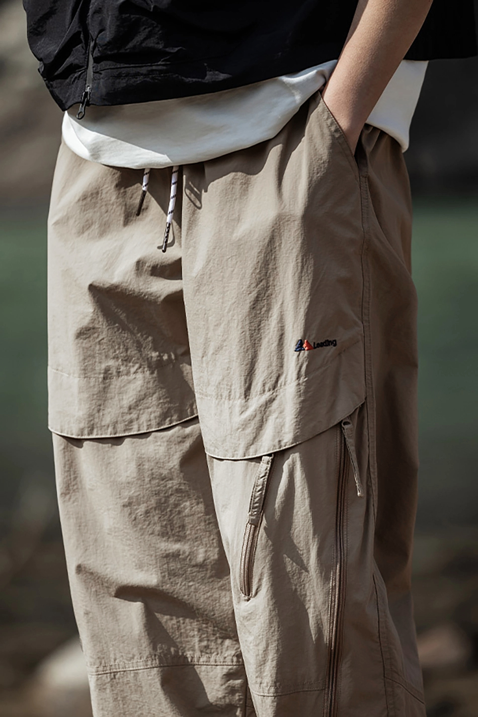 허벅지와 무릎 부분에 지퍼(장식)디테일을 넣어 제작한 아웃도어 팬츠입니다.