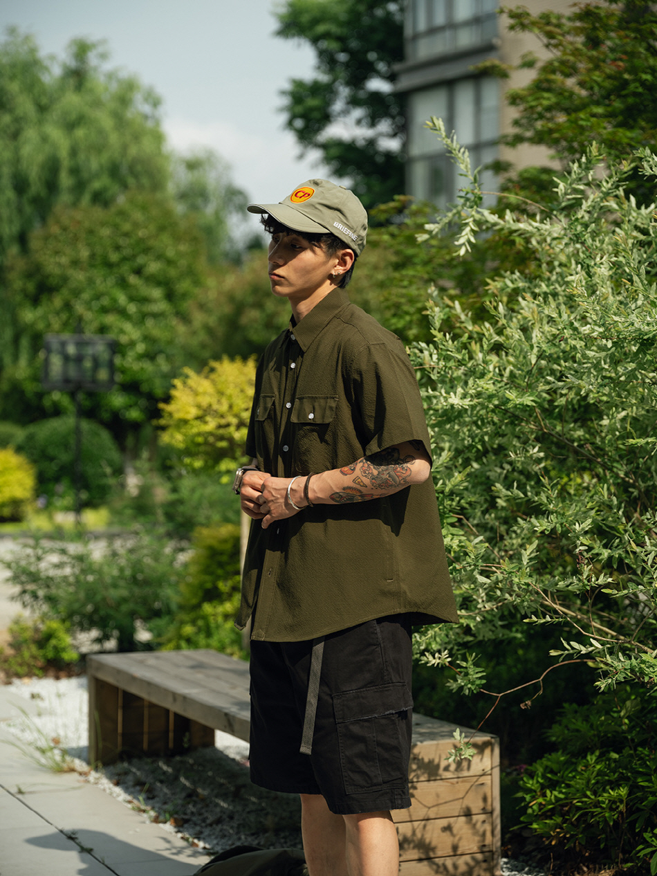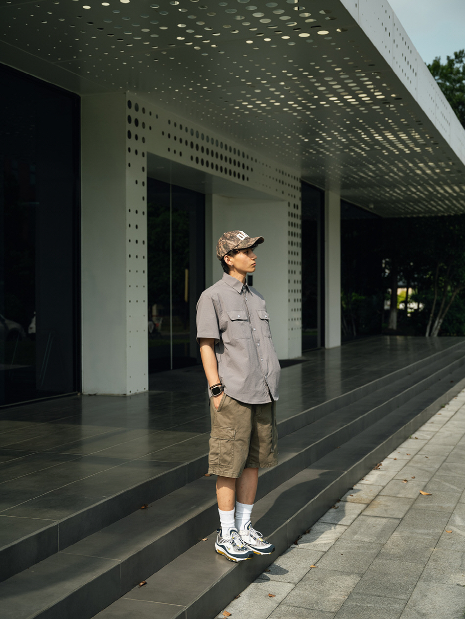 Stone Washing Loose Fit Cargo Shorts와 함께 착용하였습니다!