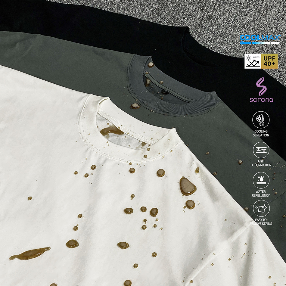 부드럽고 시원하며 통기성이 좋으며, 쉽게 변형되지 않는 기능성 섬유로 제작된 티셔츠입니다.