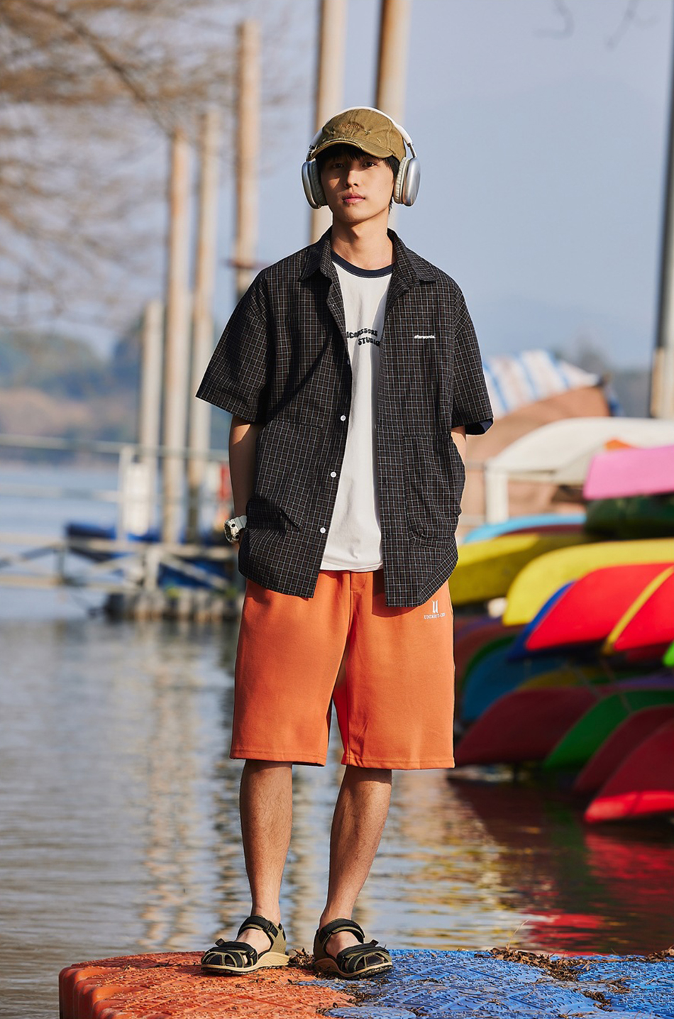 레트로한 컬러와 체크 패턴으로 포인트를 준