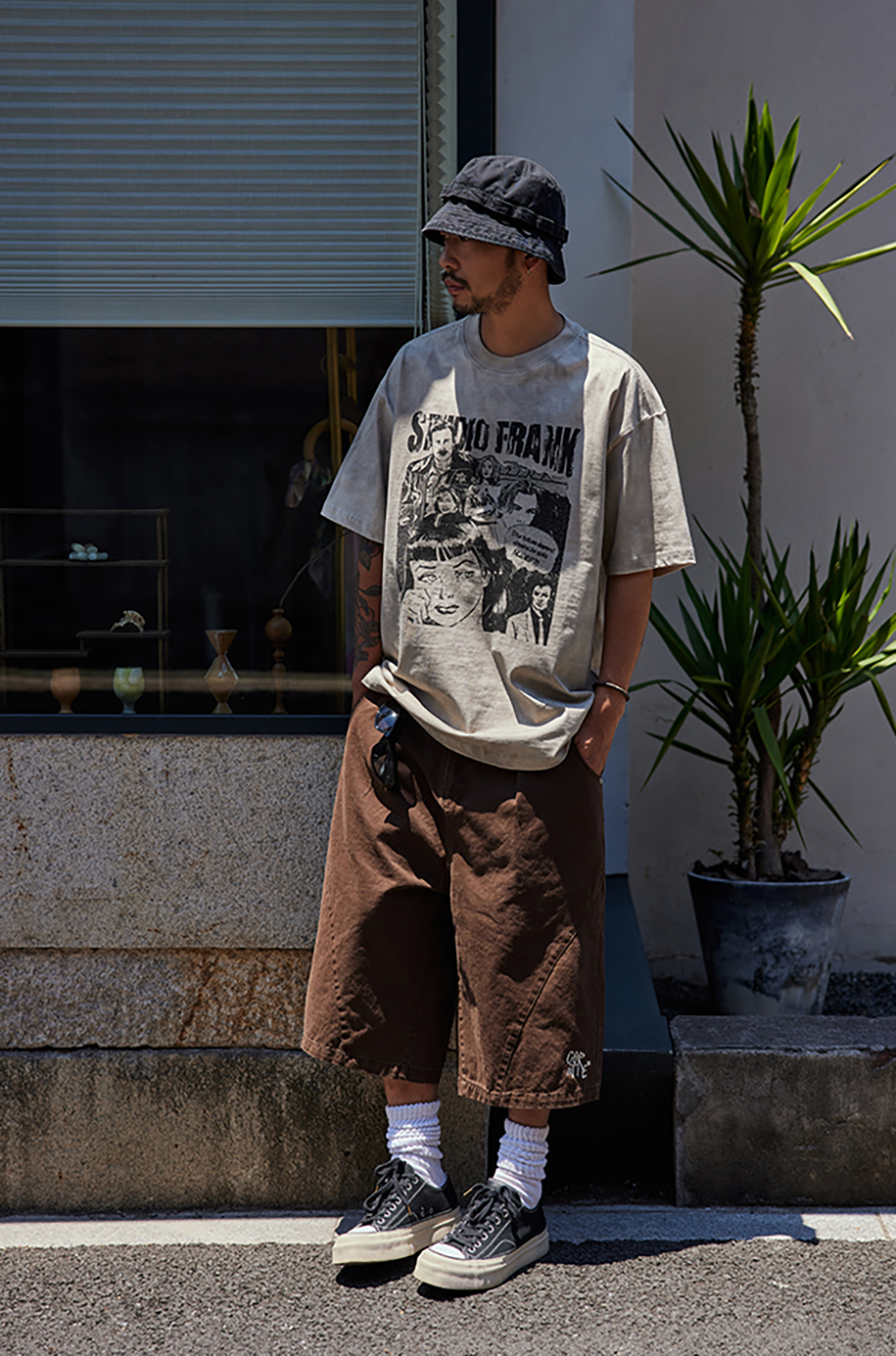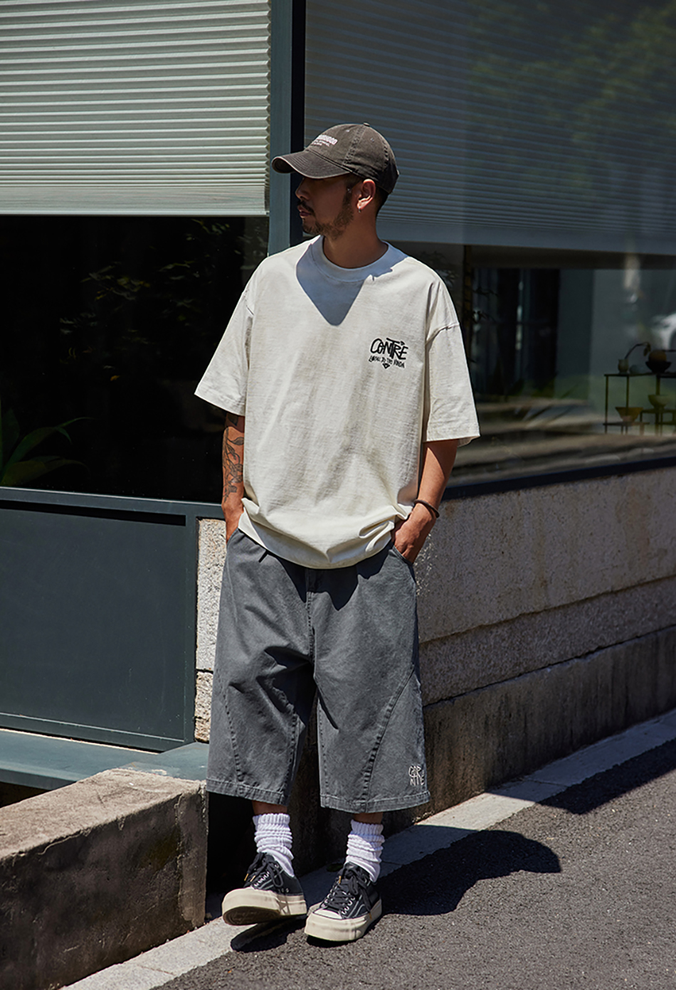 워싱 된 원단을 사용하여 빈티지한 무드를 느낄 수 있습니다.