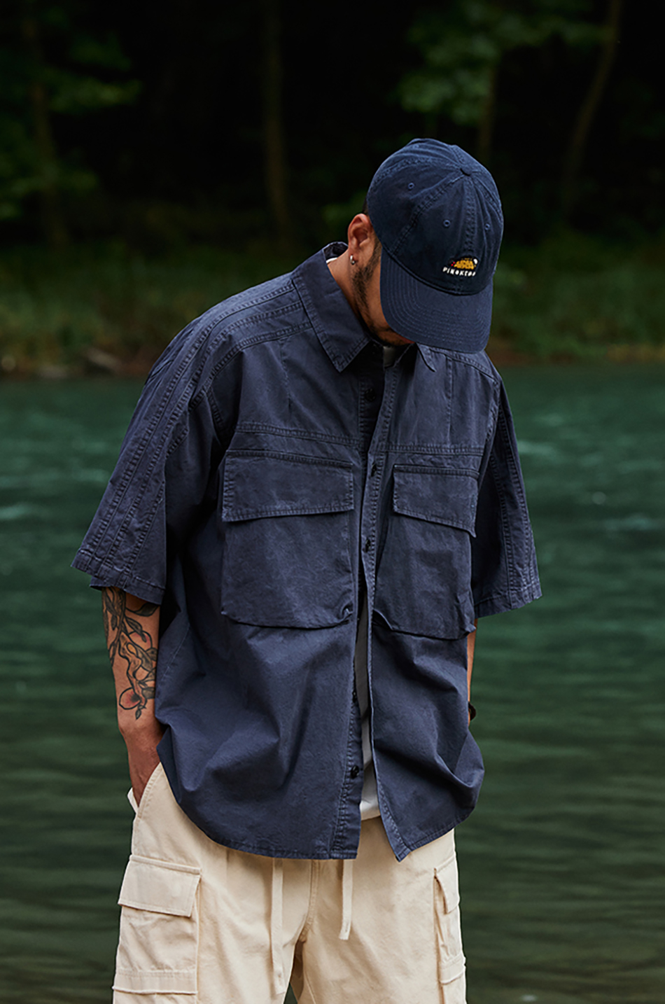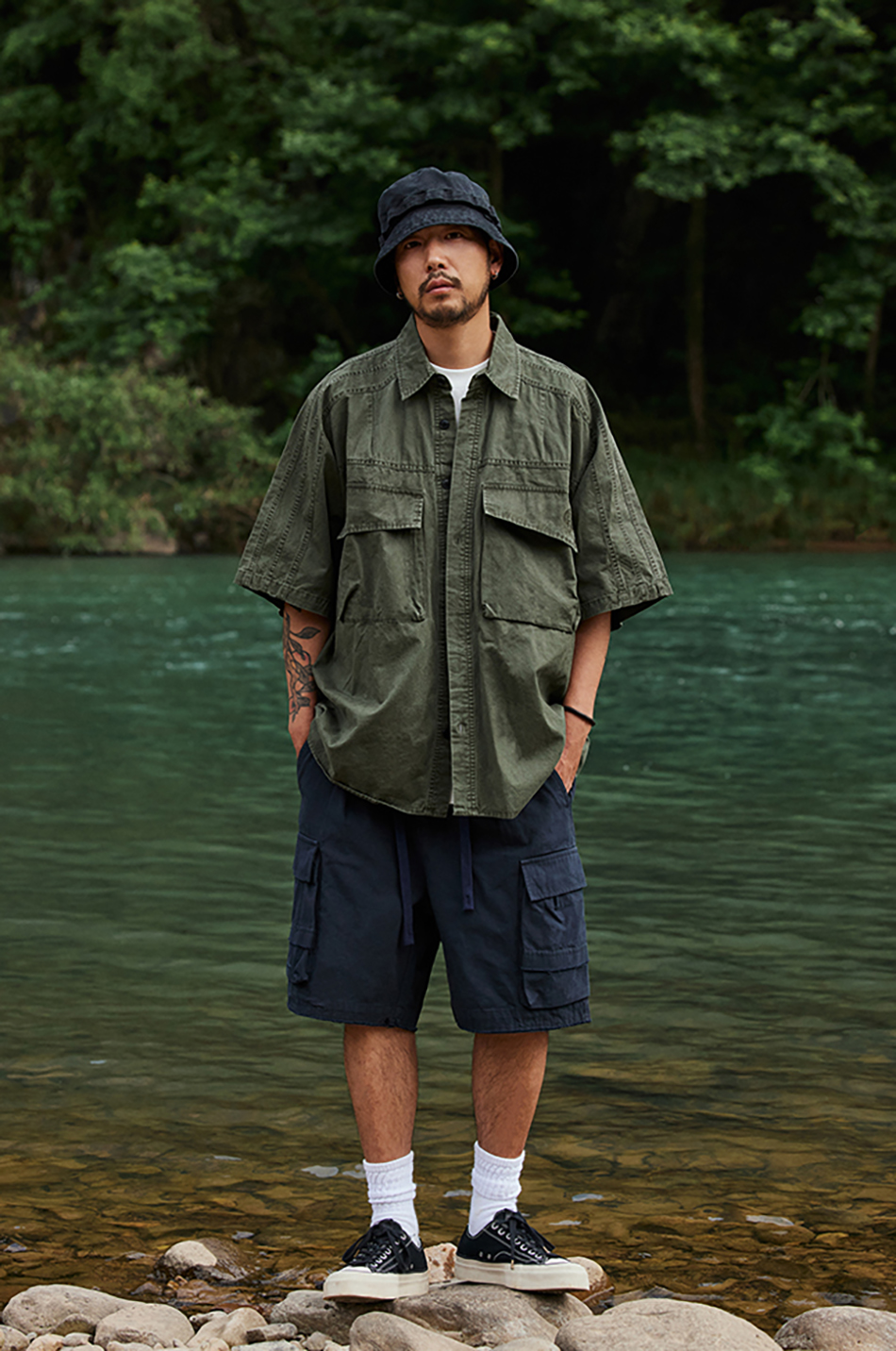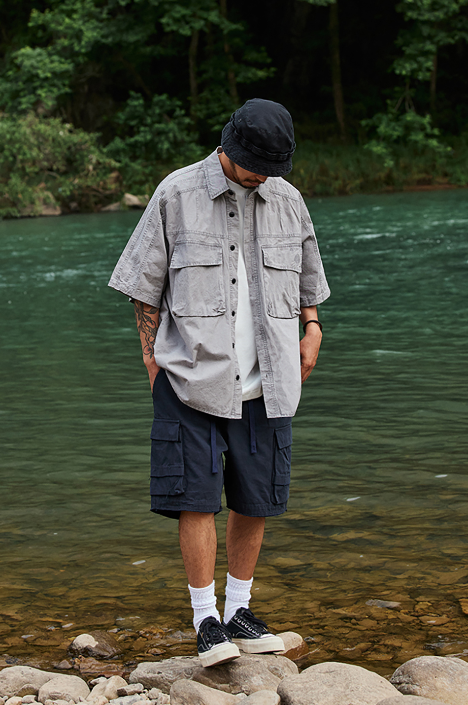 워싱과 디스트레스트 디테일을 넣어 빈티지한 무드를 보여주는 워크 셔츠입니다.