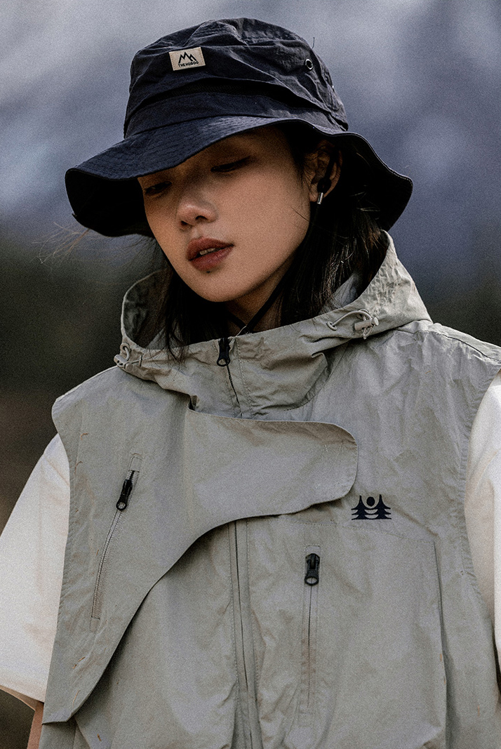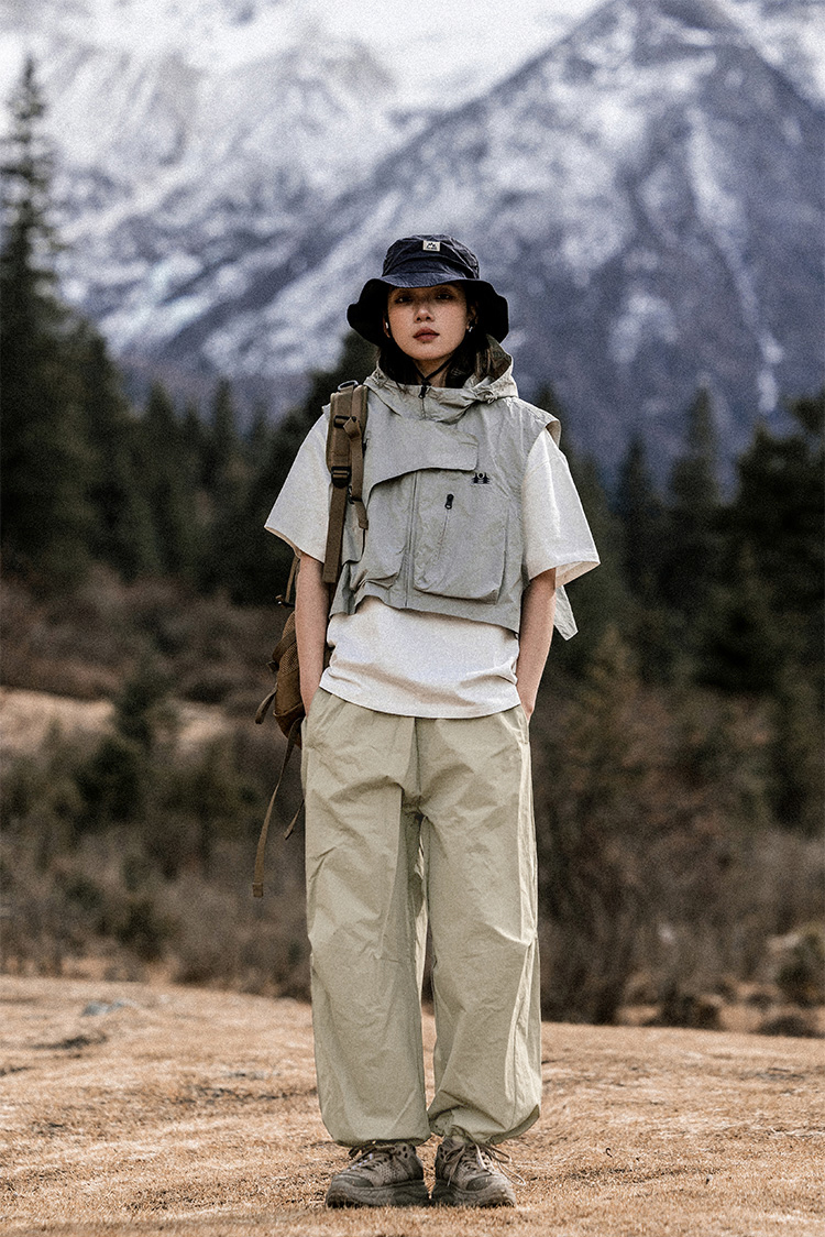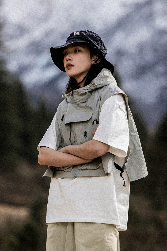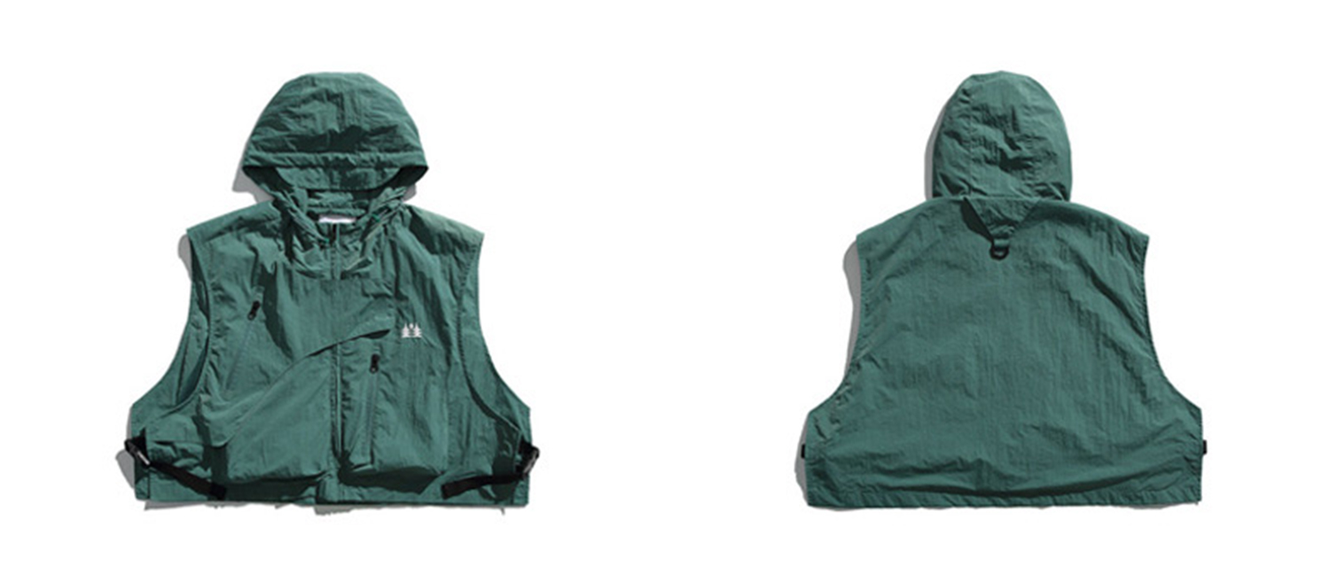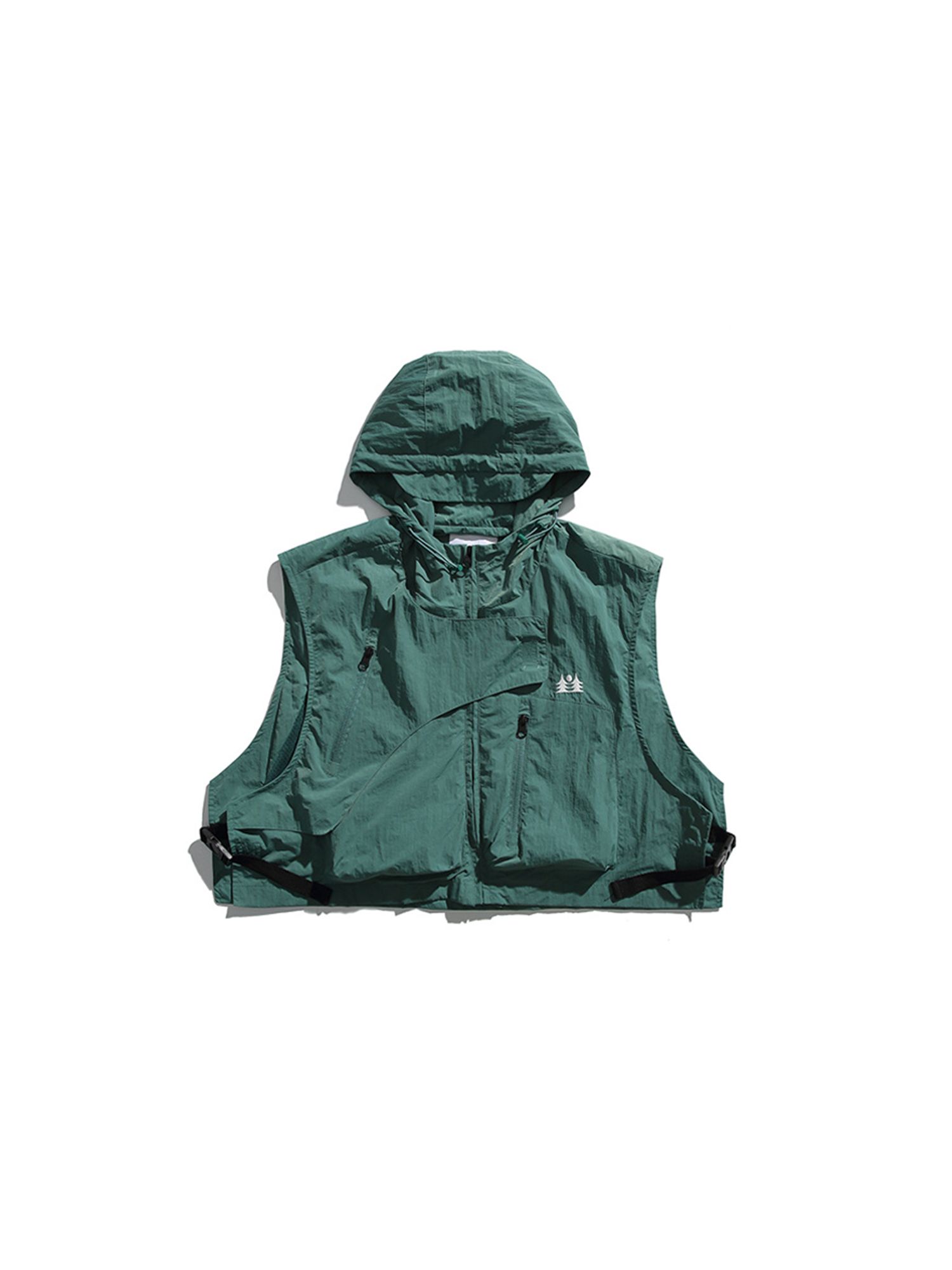크롭한 기장과 & 후드 디자인으로 포인트를 준 아웃도어 베스트입니다.