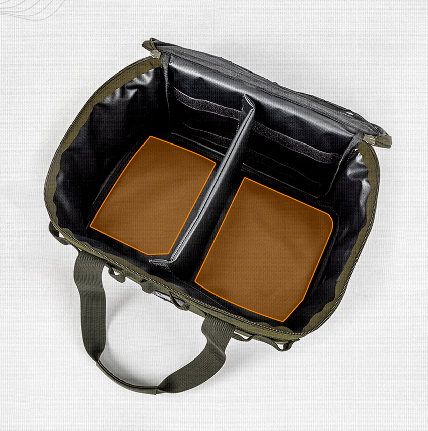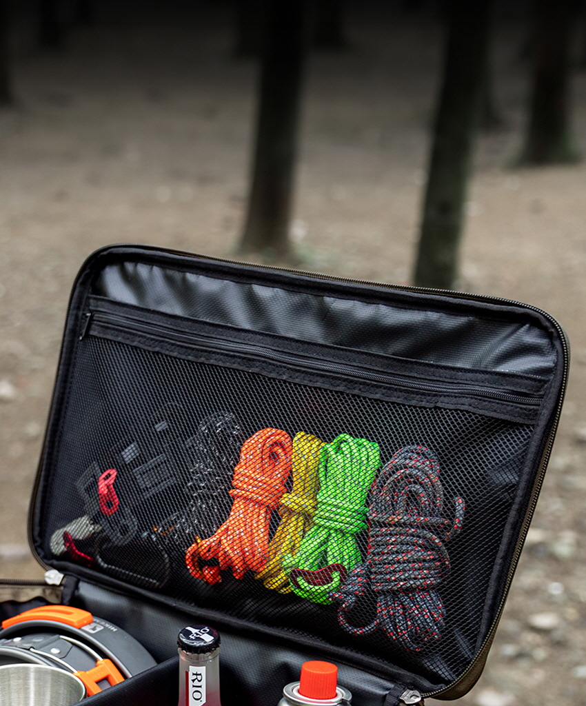 내부 뿐만이 아니라 앞과 옆면에도 장비를 보관 할 수 있는