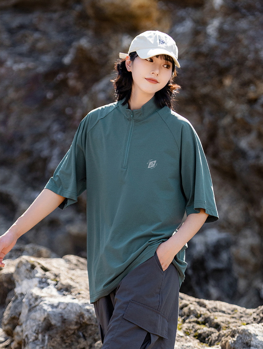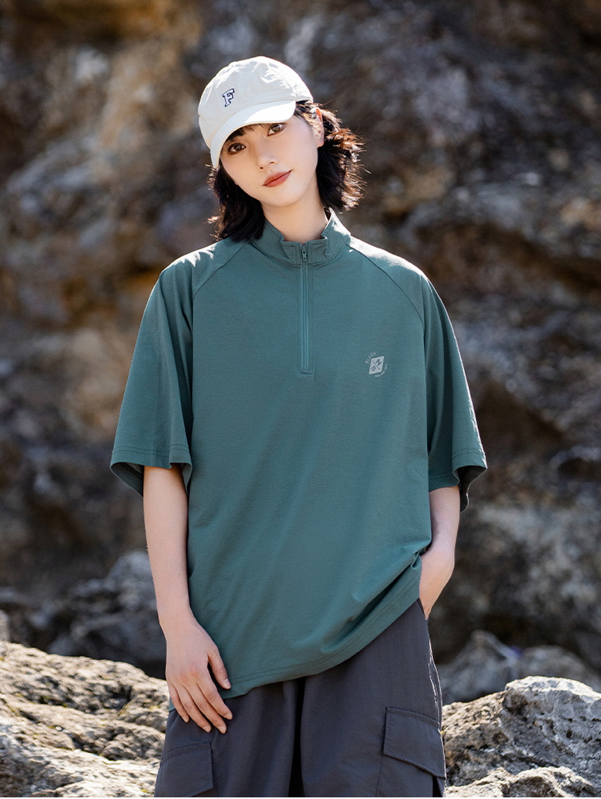 Loose Short-Sleeved Stand-Up Collar T-Shirt